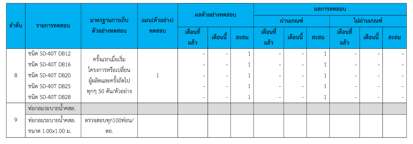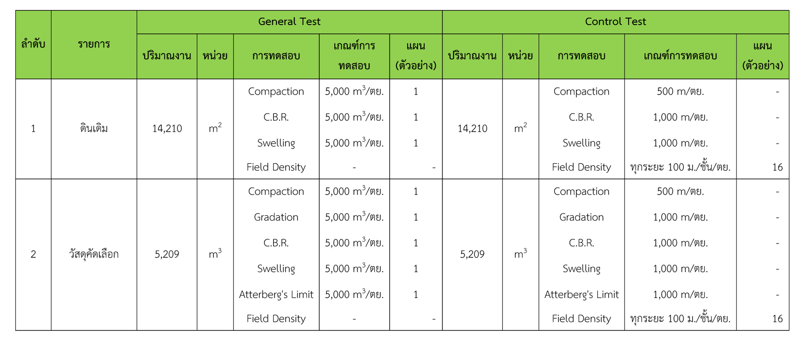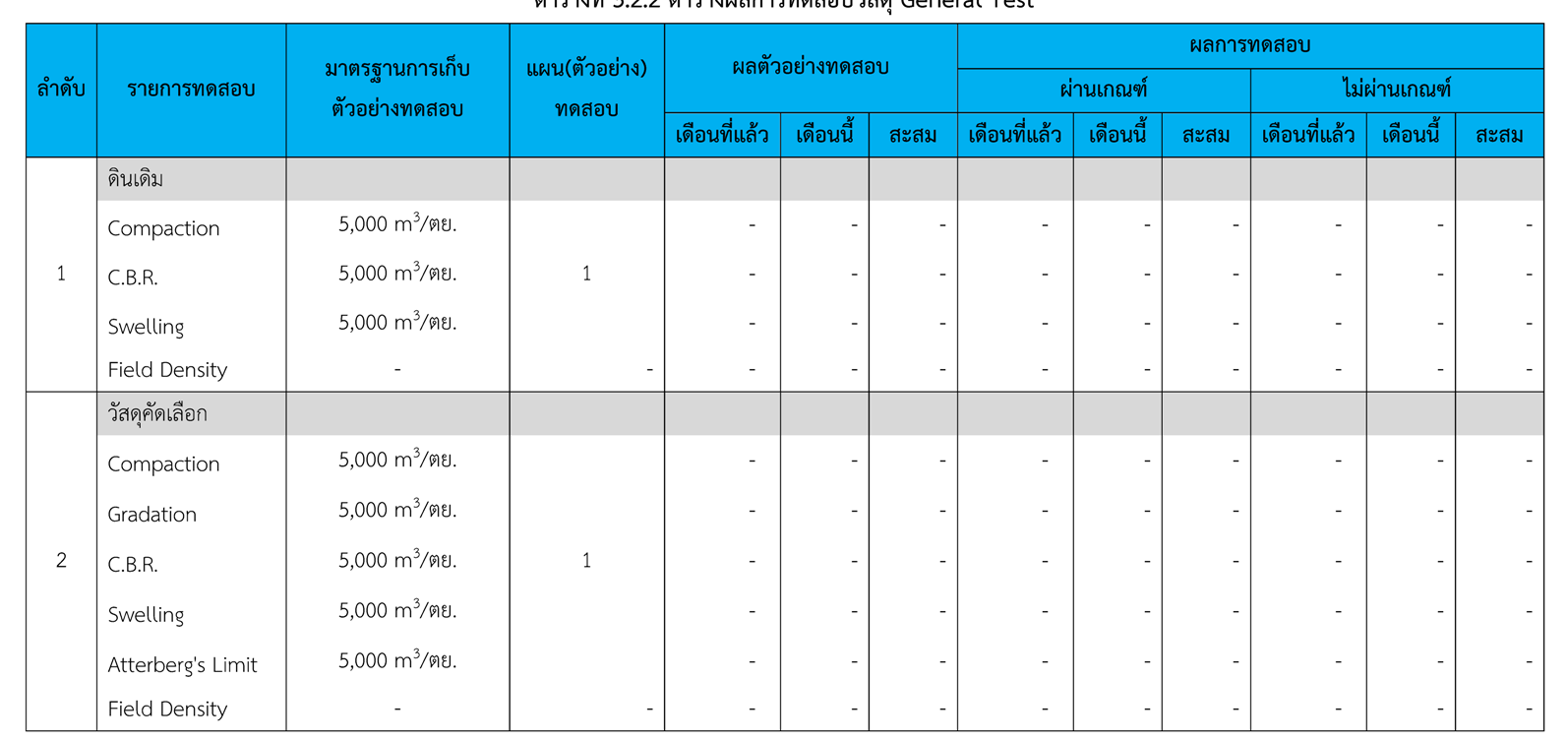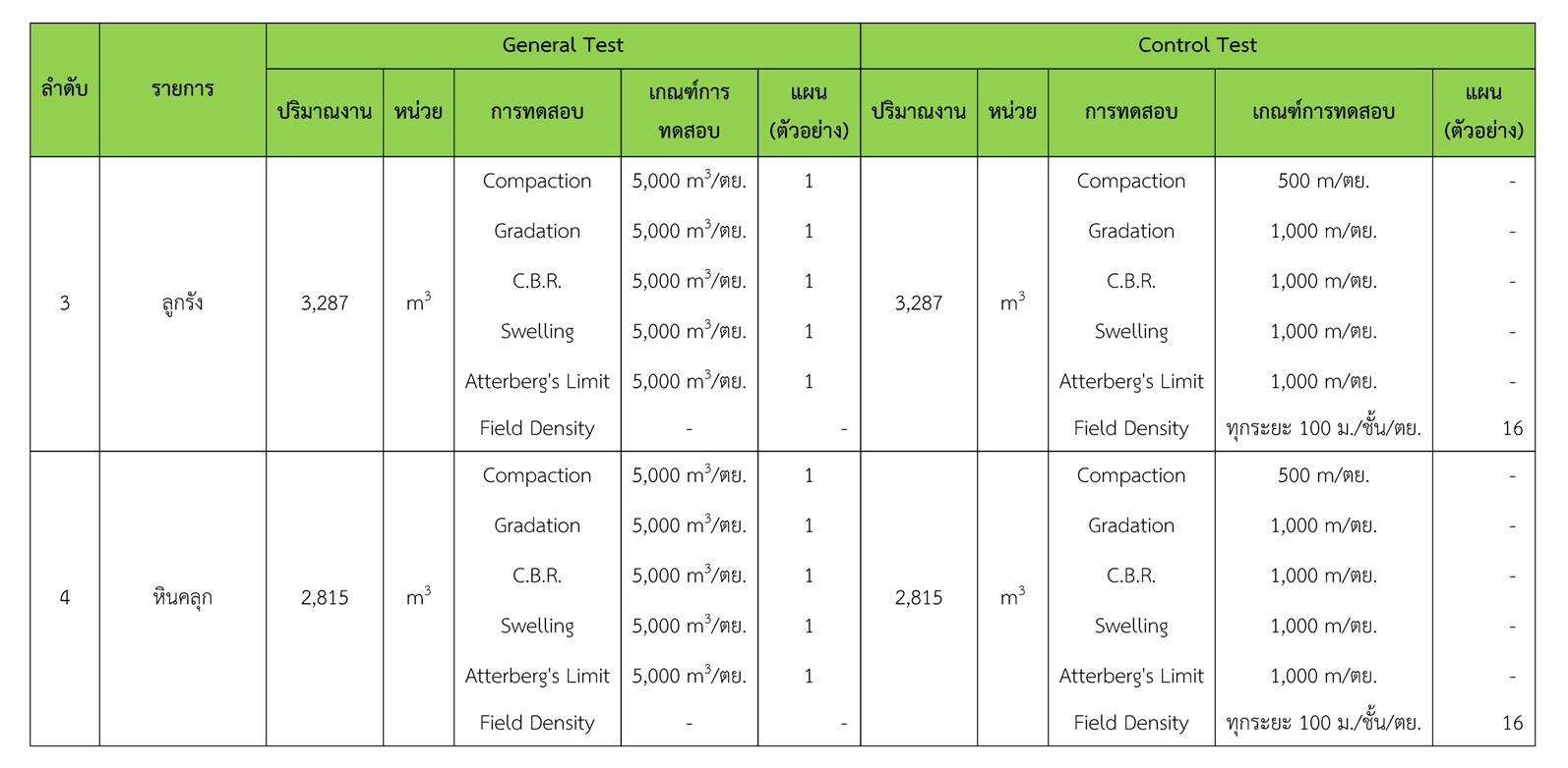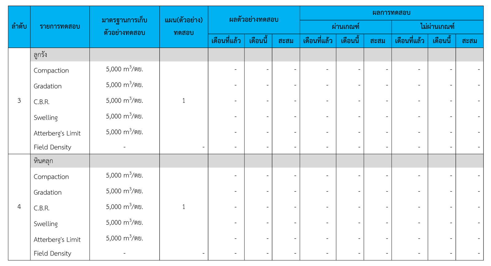 ในระหว่างวันที่ 1-31มีนาคม 2563 ผู้ว่าจ้างได้เสนอหนังสือขออนุมัติใช้วัสดุถึงที่ปรึกษา โดยที่ปรึกษาได้ตรวจสอบวัสดุดังกล่าวมีผลทดสอบดังตาราง
