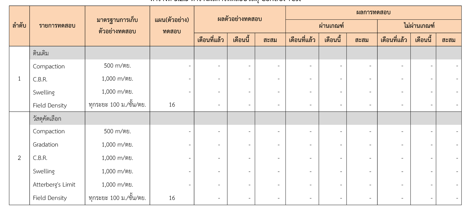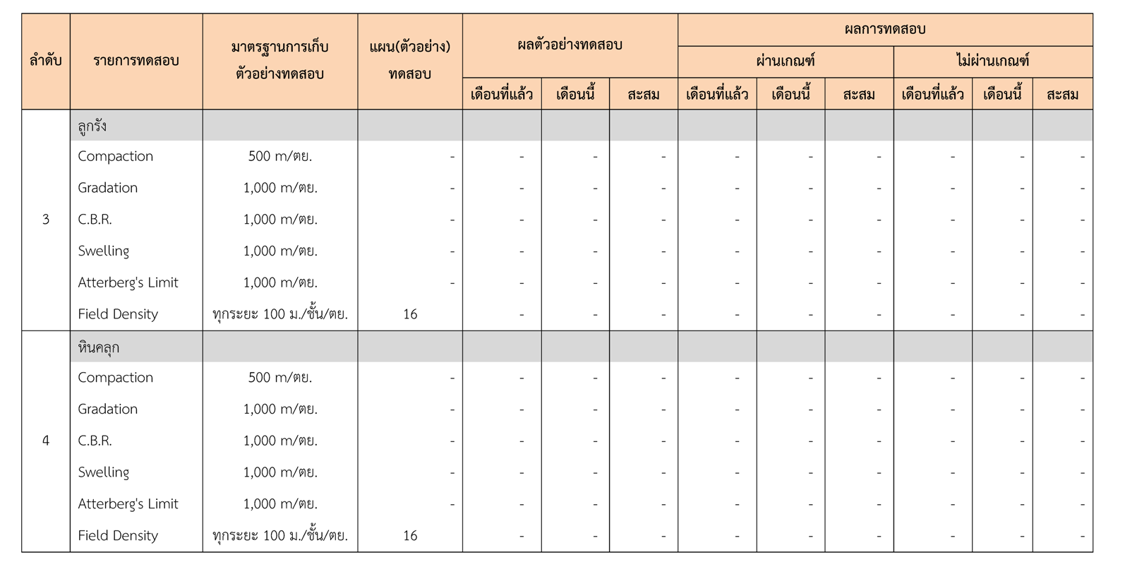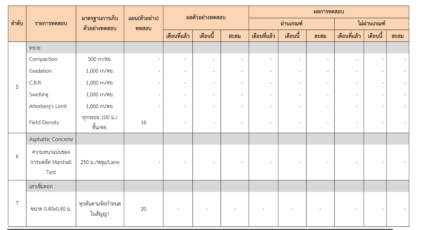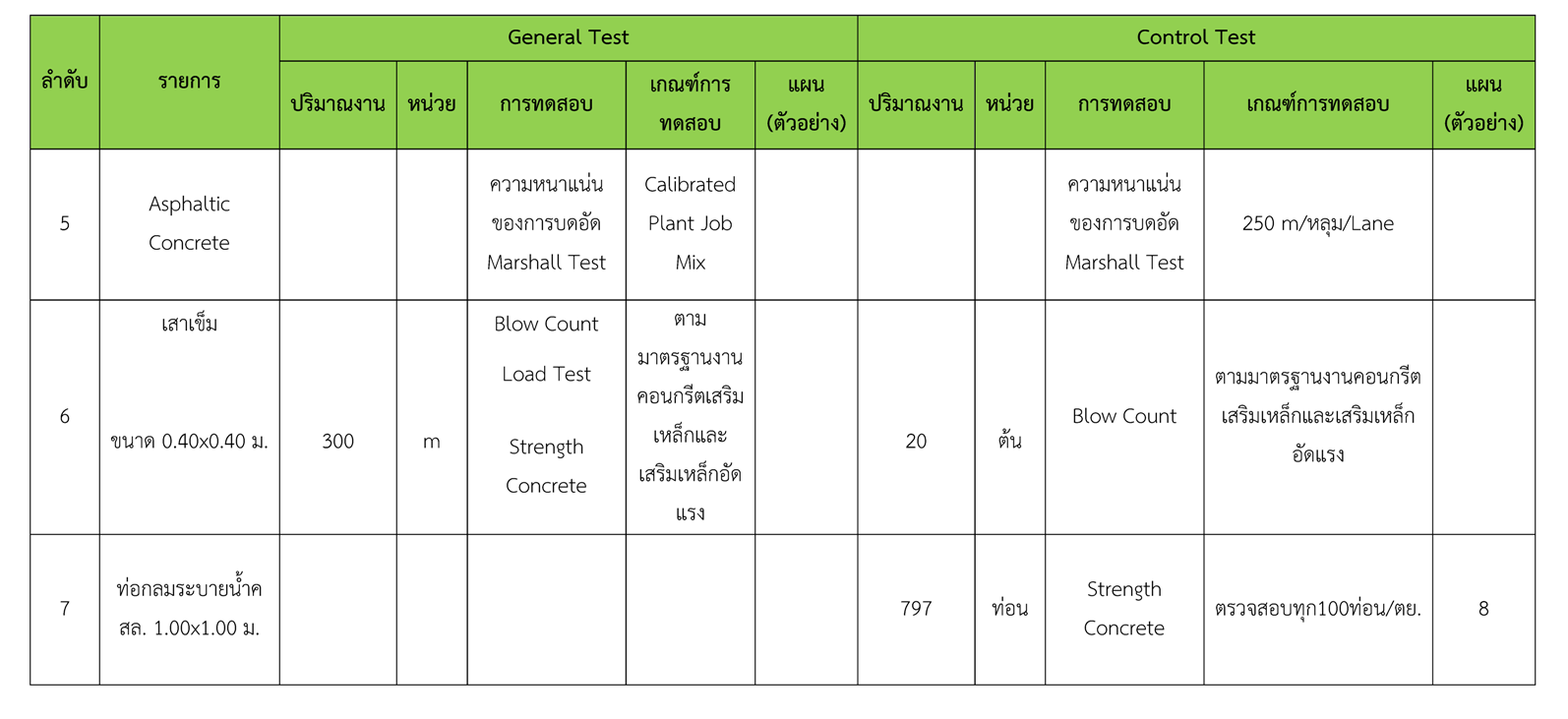 ในระหว่างวันที่ 1-31มีนาคม 2563 ผู้ว่าจ้างได้เสนอหนังสือขออนุมัติใช้วัสดุถึงที่ปรึกษา โดยที่ปรึกษาได้ตรวจสอบวัสดุดังกล่าวมีผลทดสอบดังตาราง