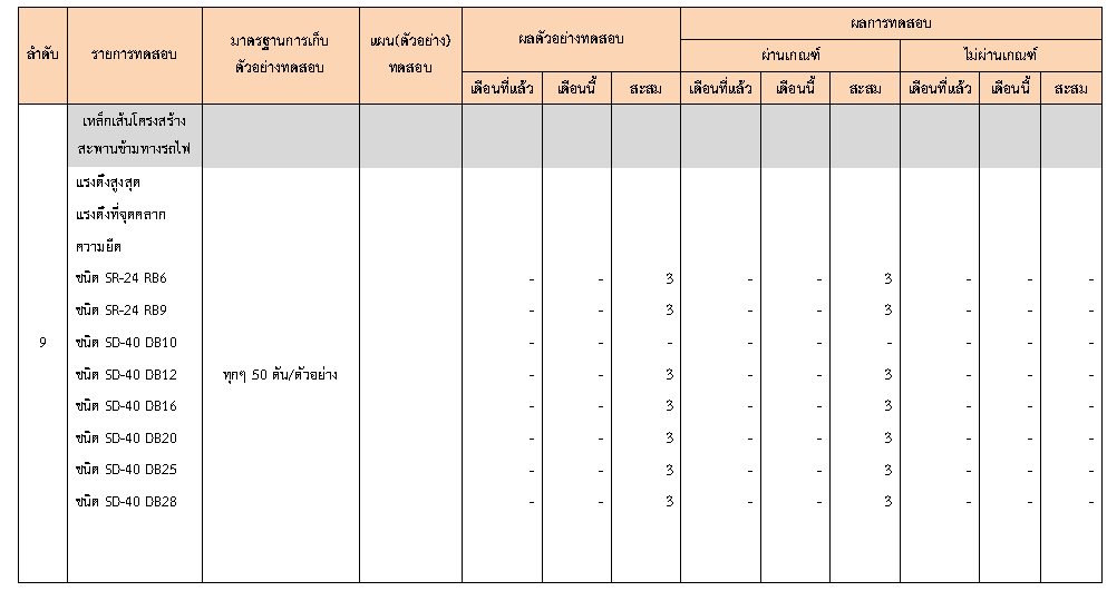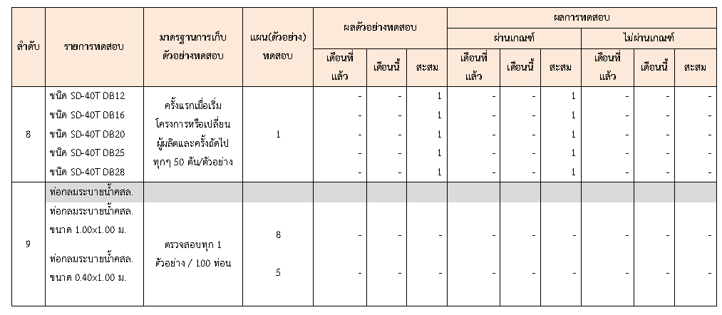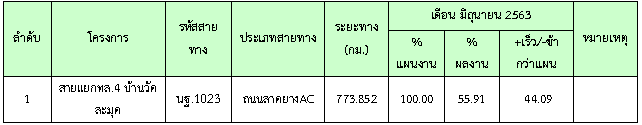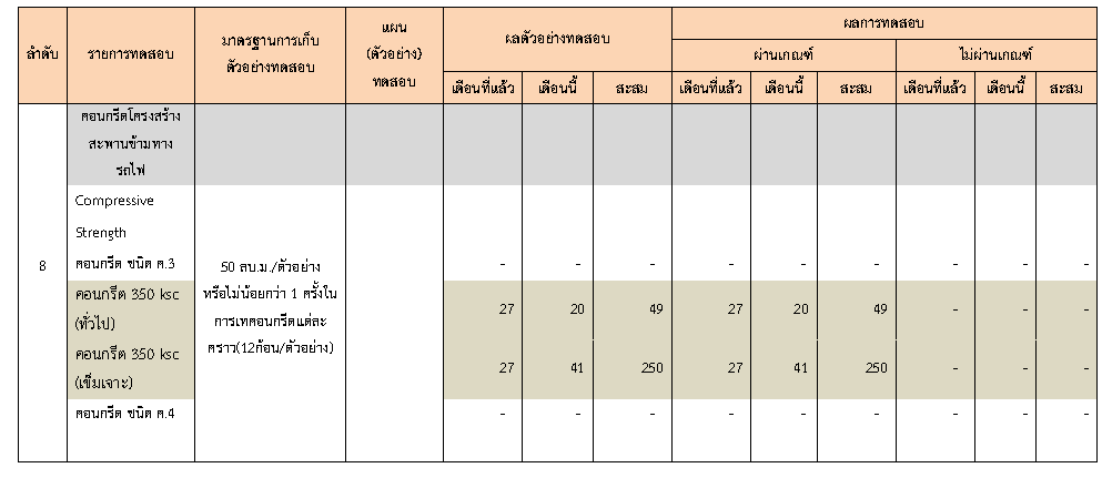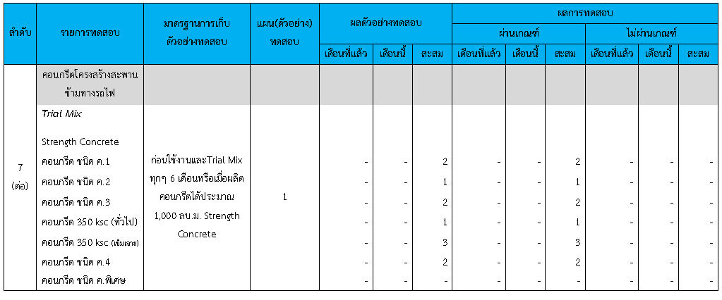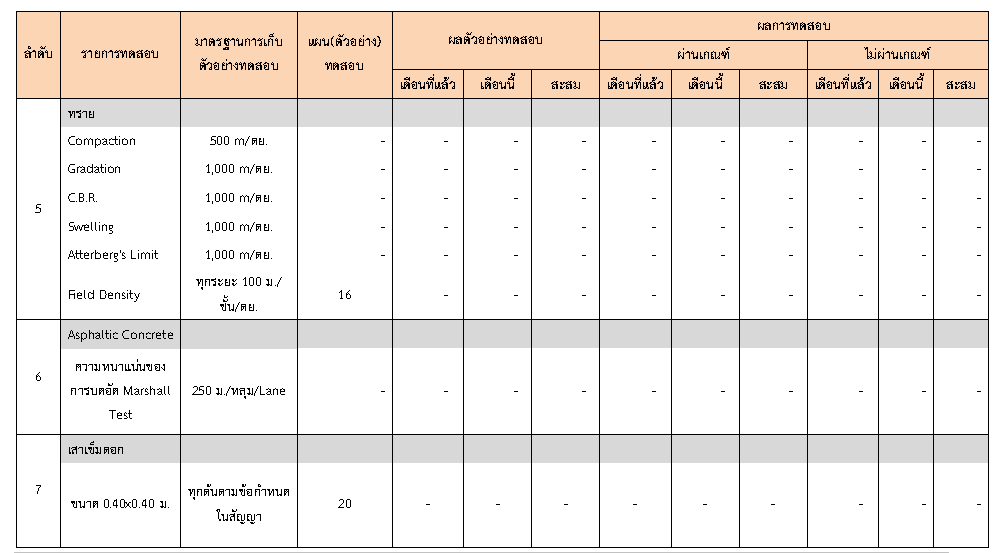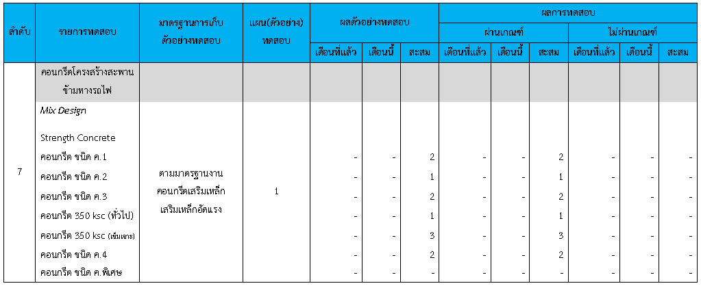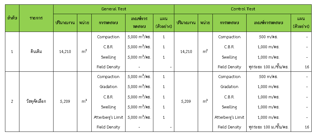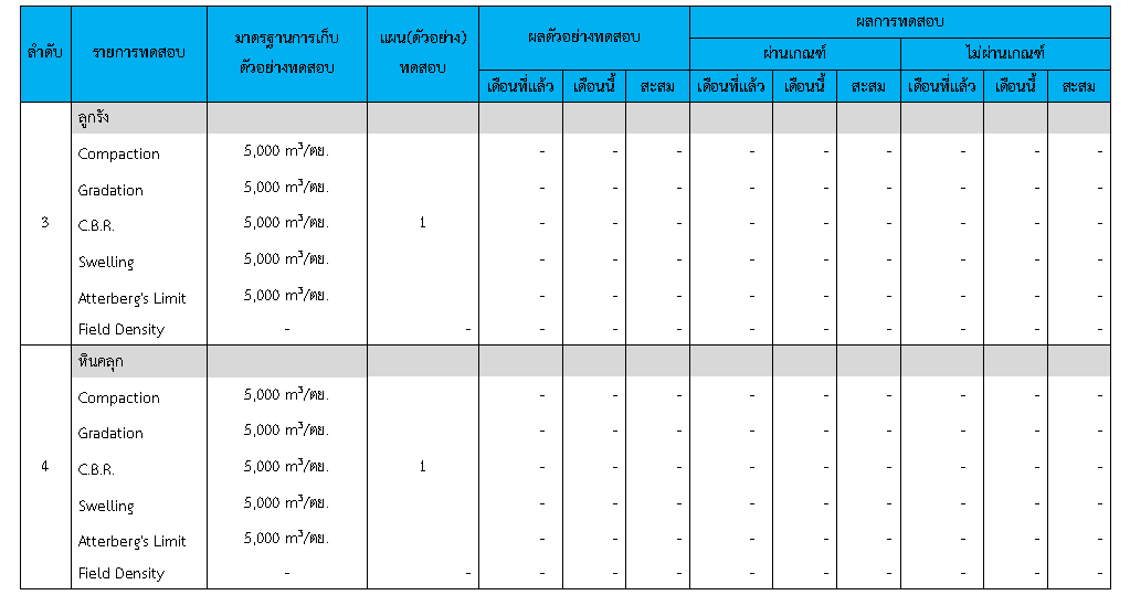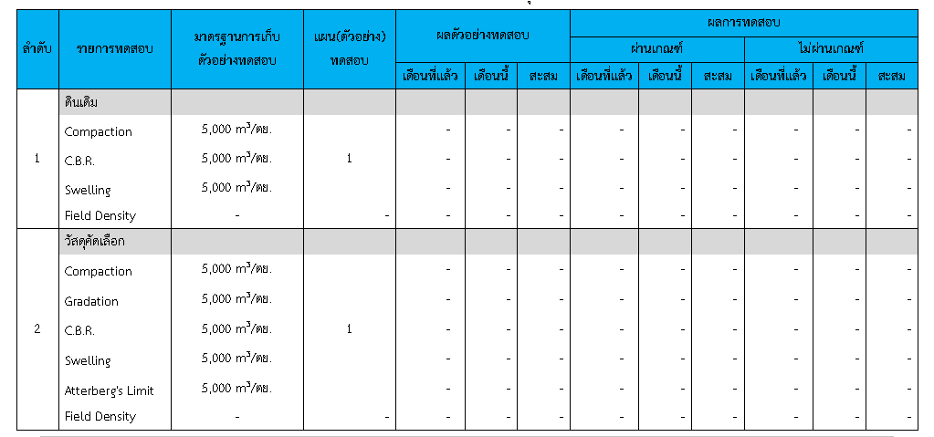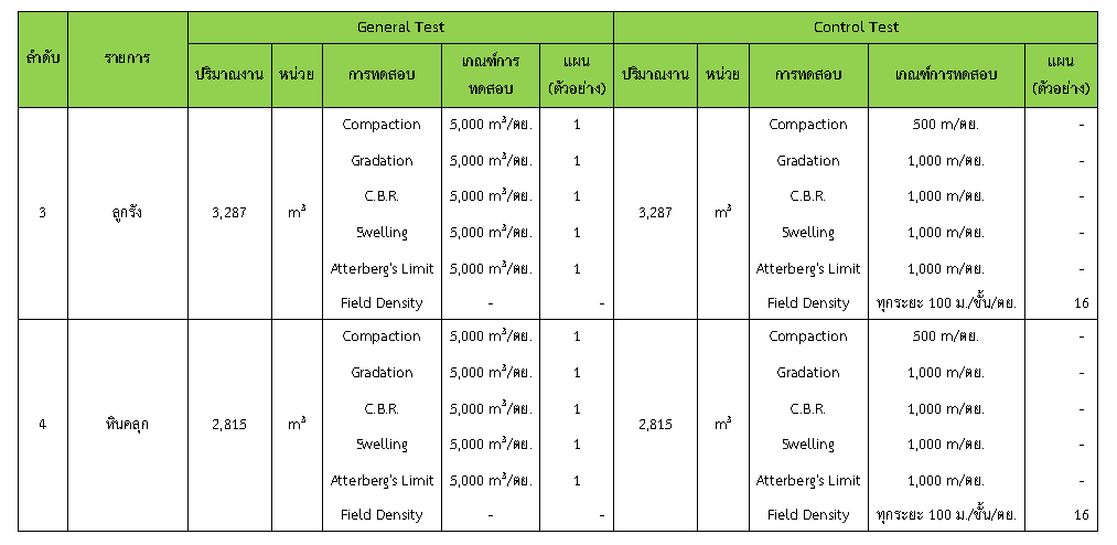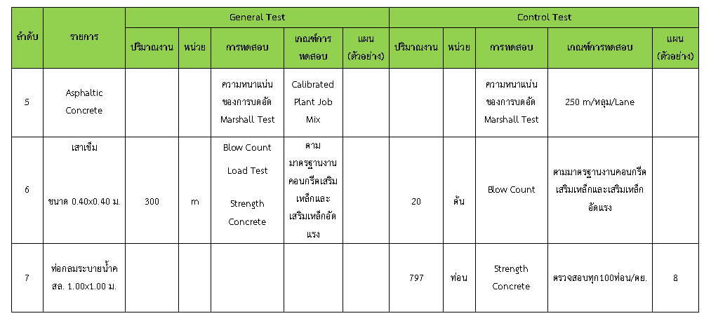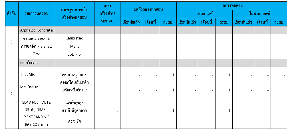 ในระหว่างวันที่ 1-30 มิถุนายน 2563ผู้ว่าจ้างได้เสนอหนังสือขออนุมัติใช้วัสดุถึงที่ปรึกษา โดยที่ปรึกษาได้ตรวจสอบวัสดุดังกล่าวมีผลทดสอบดังตาราง