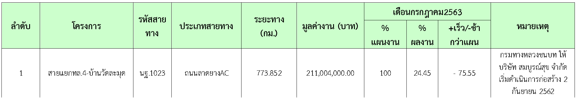 ความก้าวหน้าประจำเดือน กรกฎาคม 2563เท่ากับ 7.65%ผลงานสะสม เท่ากับ