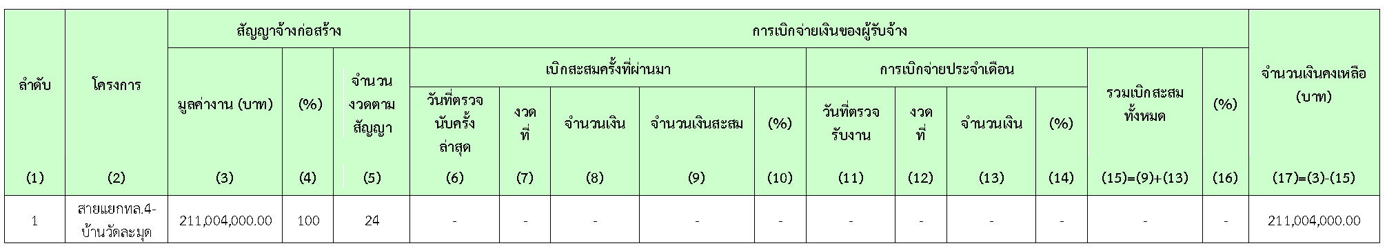 ตารางที่ 2.3-1 สรุปการเบิกจ่ายเงินของผู้รับจ้าง