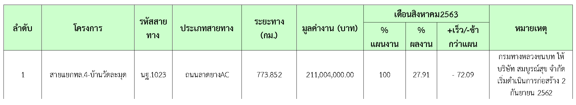 ความก้าวหน้าประจำเดือน สิงหาคม 2563เท่ากับ 3.46%ผลงานสะสม เท่ากับ