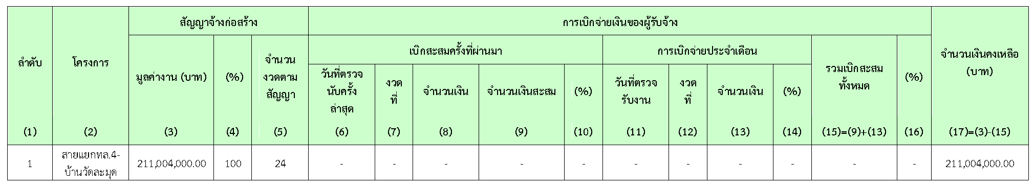 ตารางที่ 2.3-1 สรุปการเบิกจ่ายเงินของผู้รับจ้าง