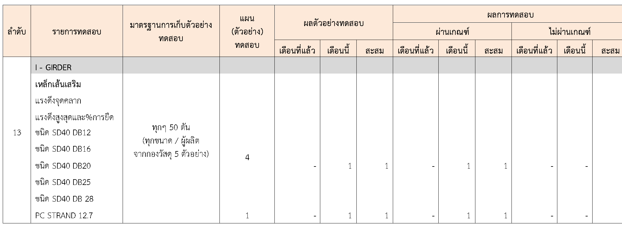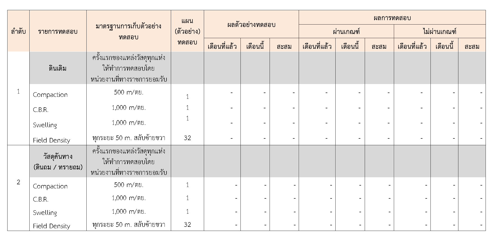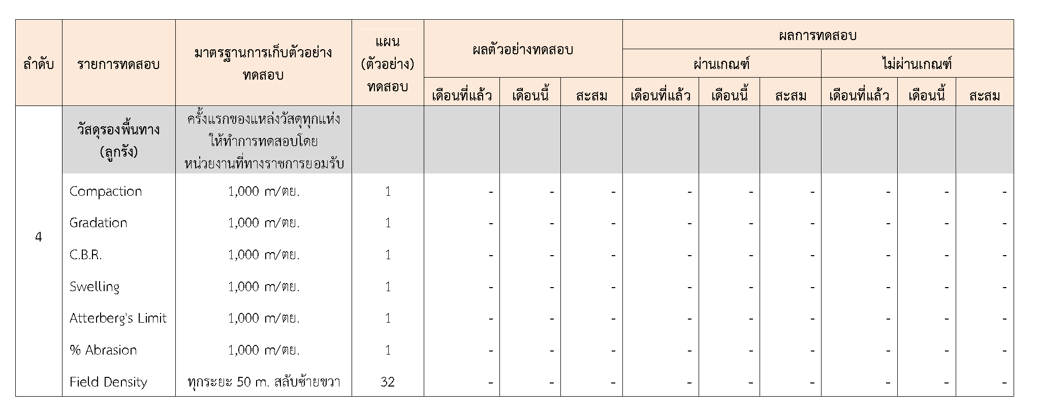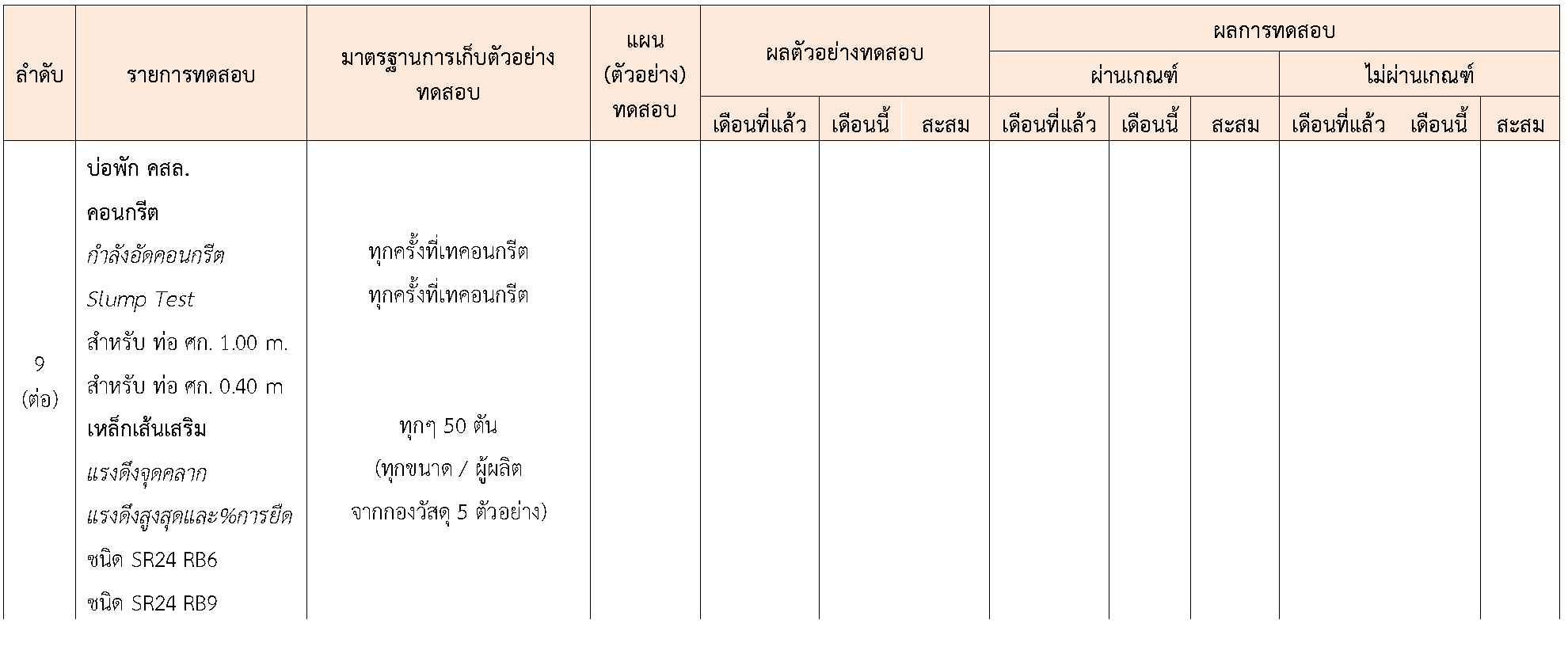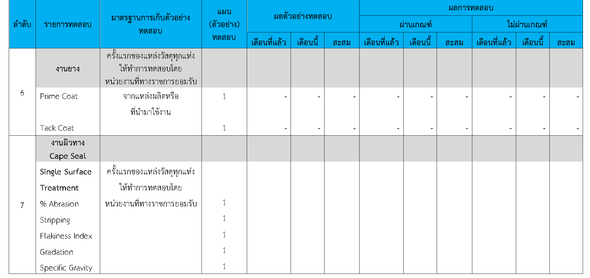 ในระหว่างวันที่ 1-30 กันยายน 2563ผู้ว่าจ้างได้เสนอหนังสือขออนุมัติใช้วัสดุถึงที่ปรึกษา โดยที่ปรึกษาได้ตรวจสอบวัสดุดังกล่าวมีผลทดสอบดังตาราง