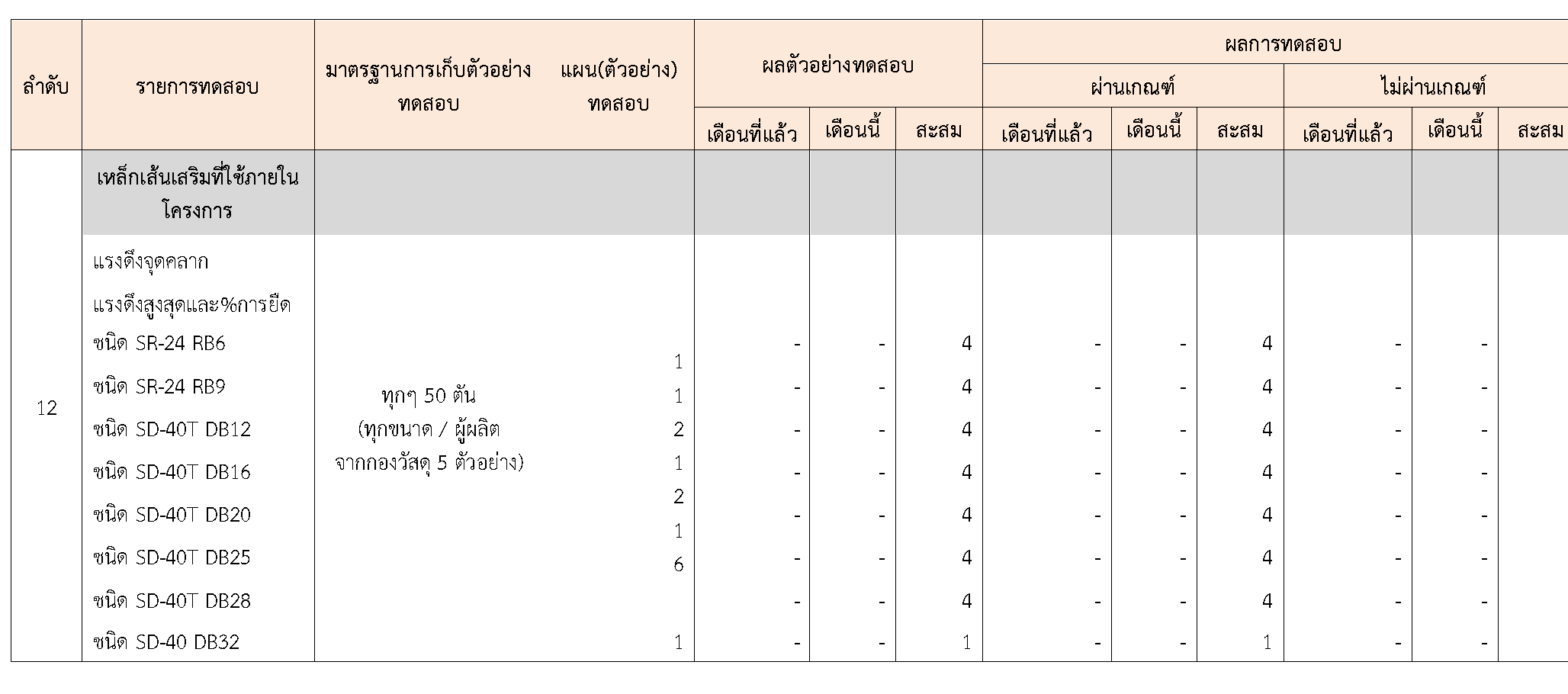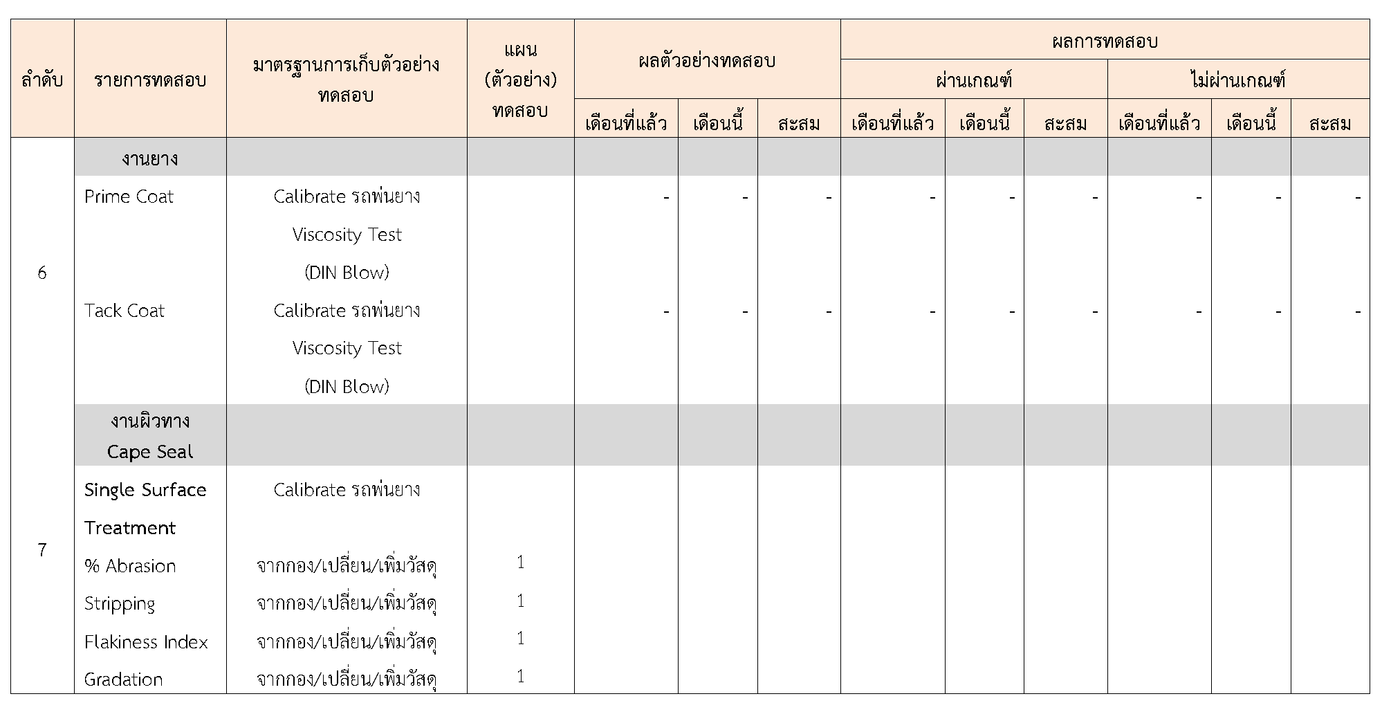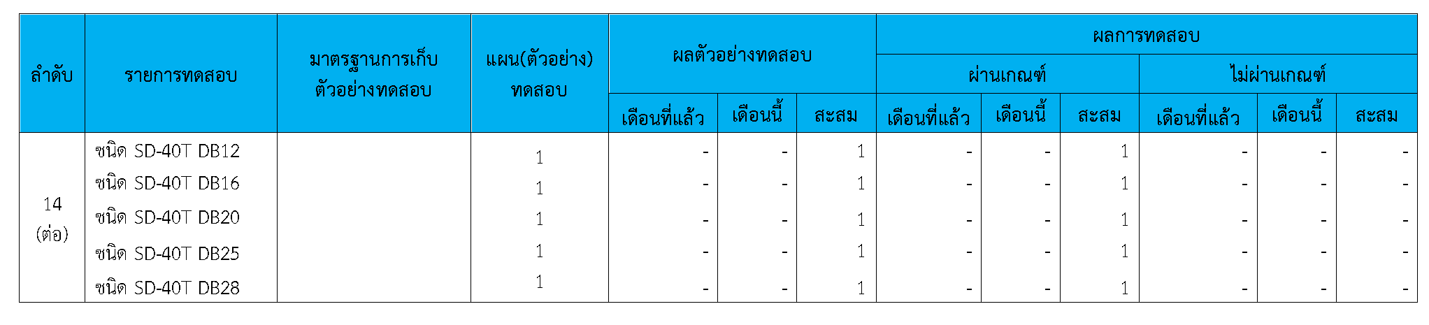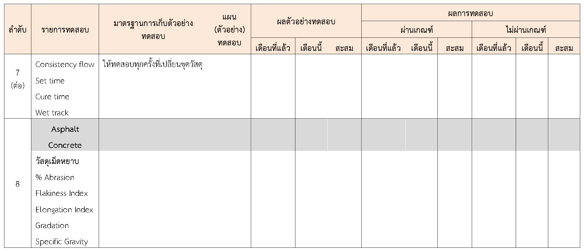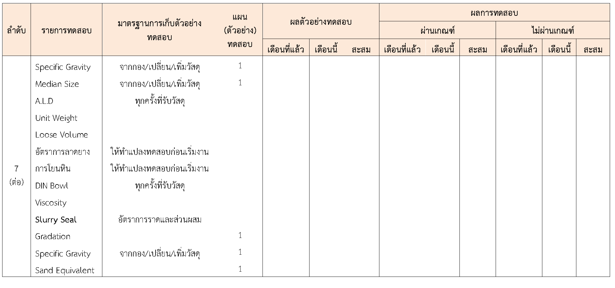 ในระหว่างวันที่ 1-30 กันยายน 2563ผู้ว่าจ้างได้เสนอหนังสือขออนุมัติใช้วัสดุถึงที่ปรึกษา โดยที่ปรึกษาได้ตรวจสอบวัสดุดังกล่าวมีผลทดสอบดังตาราง