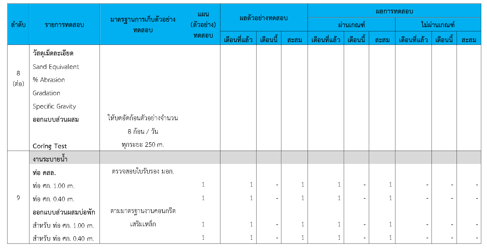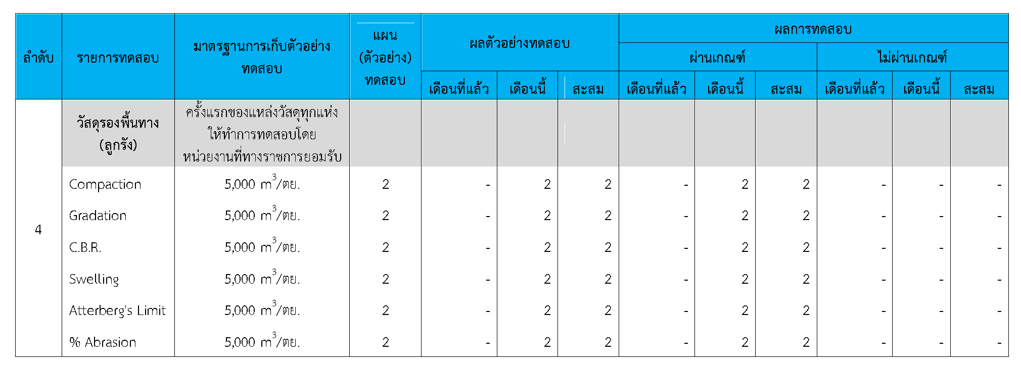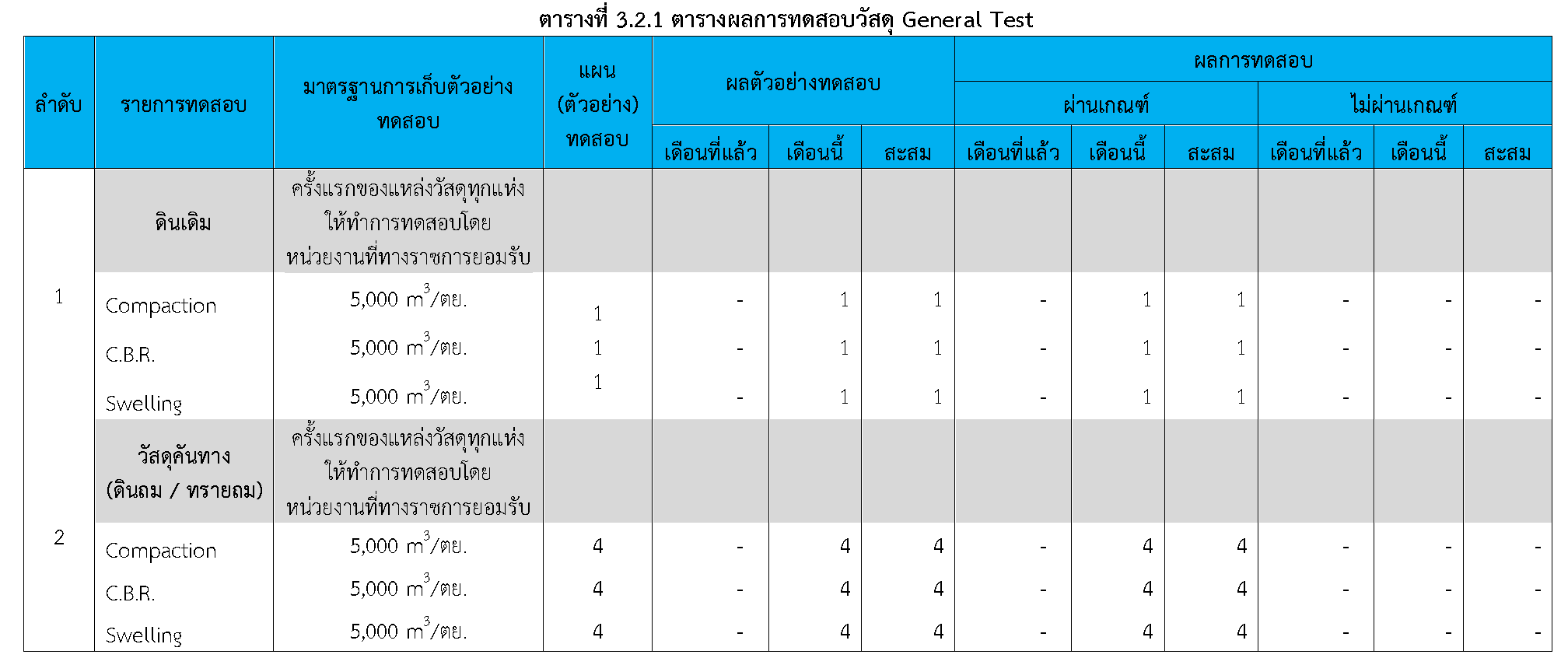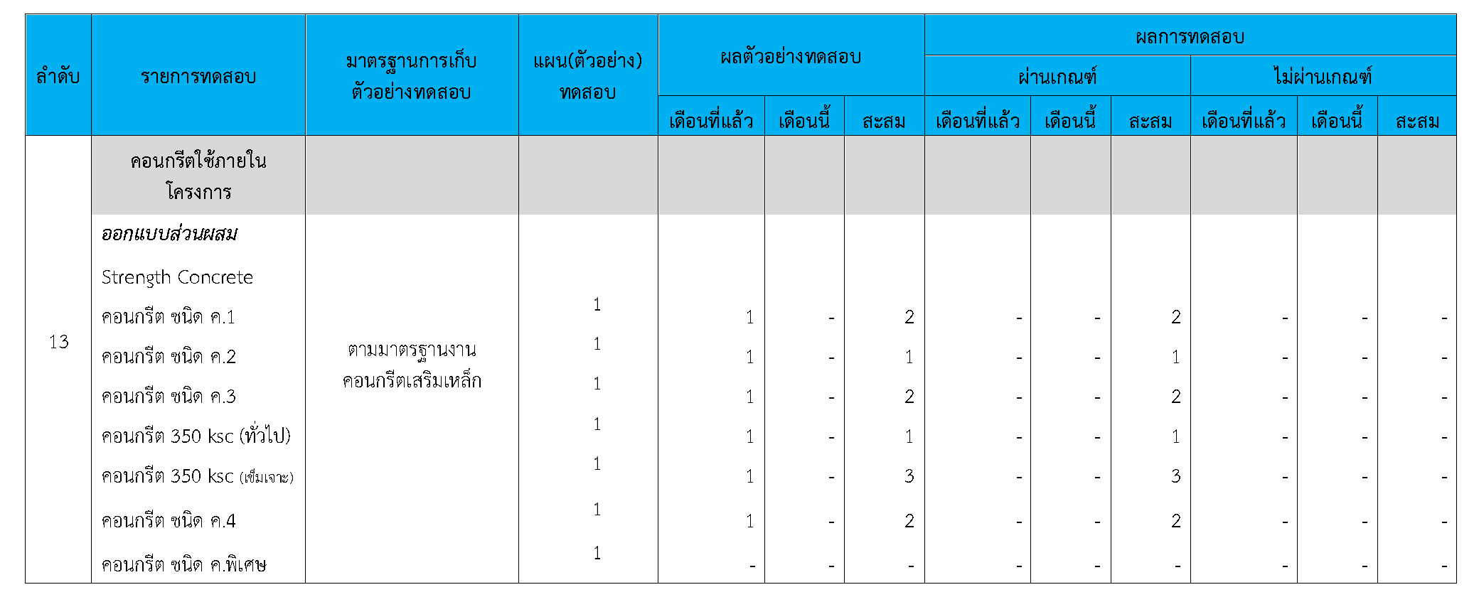 ในระหว่างวันที่ 1-31ตุลาคม 2563 ผู้ว่าจ้างได้เสนอหนังสือขออนุมัติใช้วัสดุถึงที่ปรึกษา โดยที่ปรึกษาได้ตรวจสอบวัสดุดังกล่าวมีผลทดสอบดังตาราง