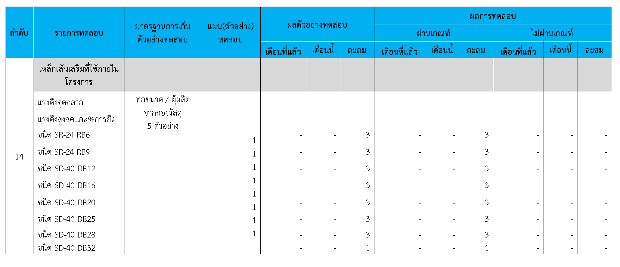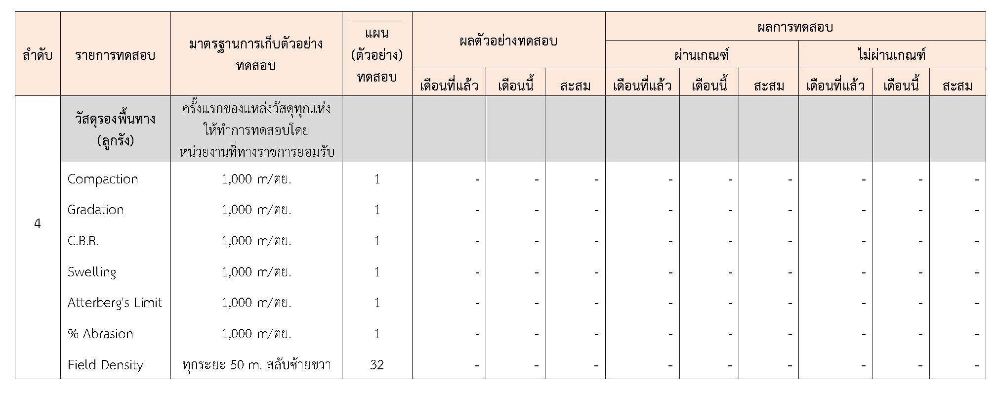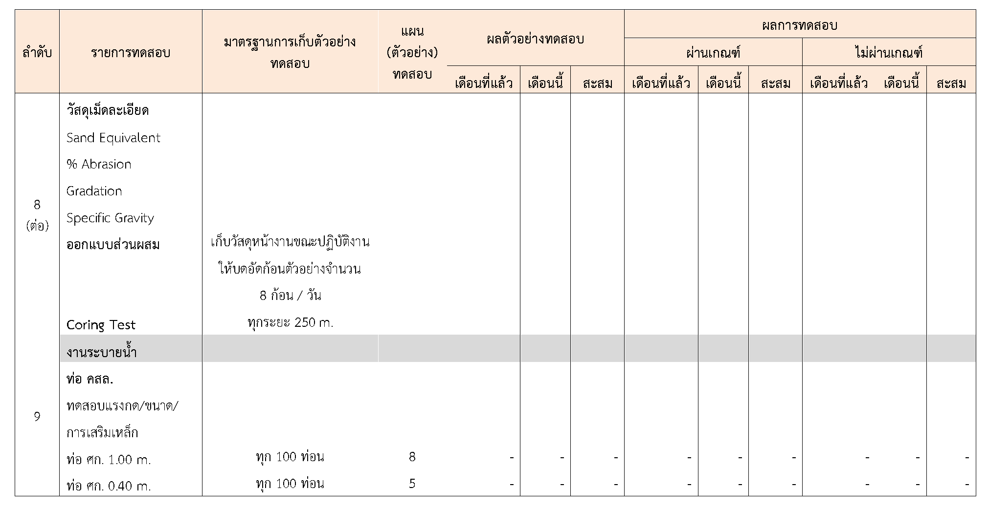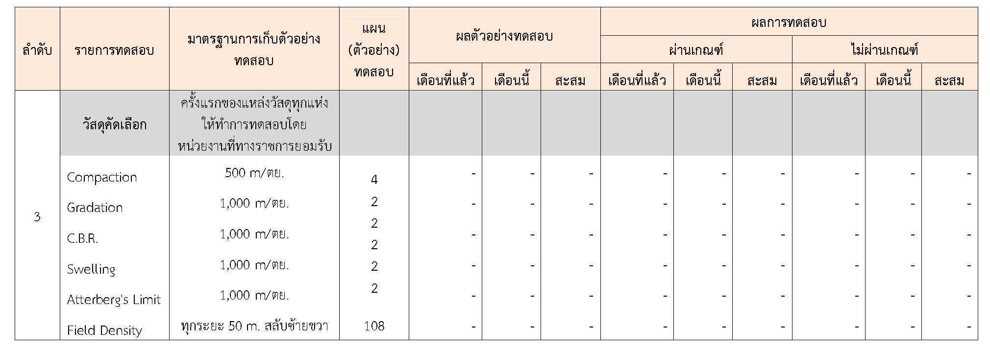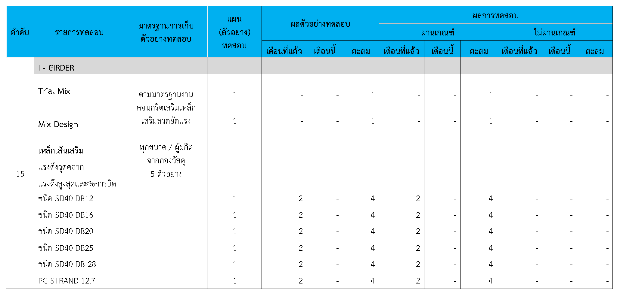 ในระหว่างวันที่ 1-31ตุลาคม 2563 ผู้ว่าจ้างได้เสนอหนังสือขออนุมัติใช้วัสดุถึงที่ปรึกษา โดยที่ปรึกษาได้ตรวจสอบวัสดุดังกล่าวมีผลทดสอบดังตาราง