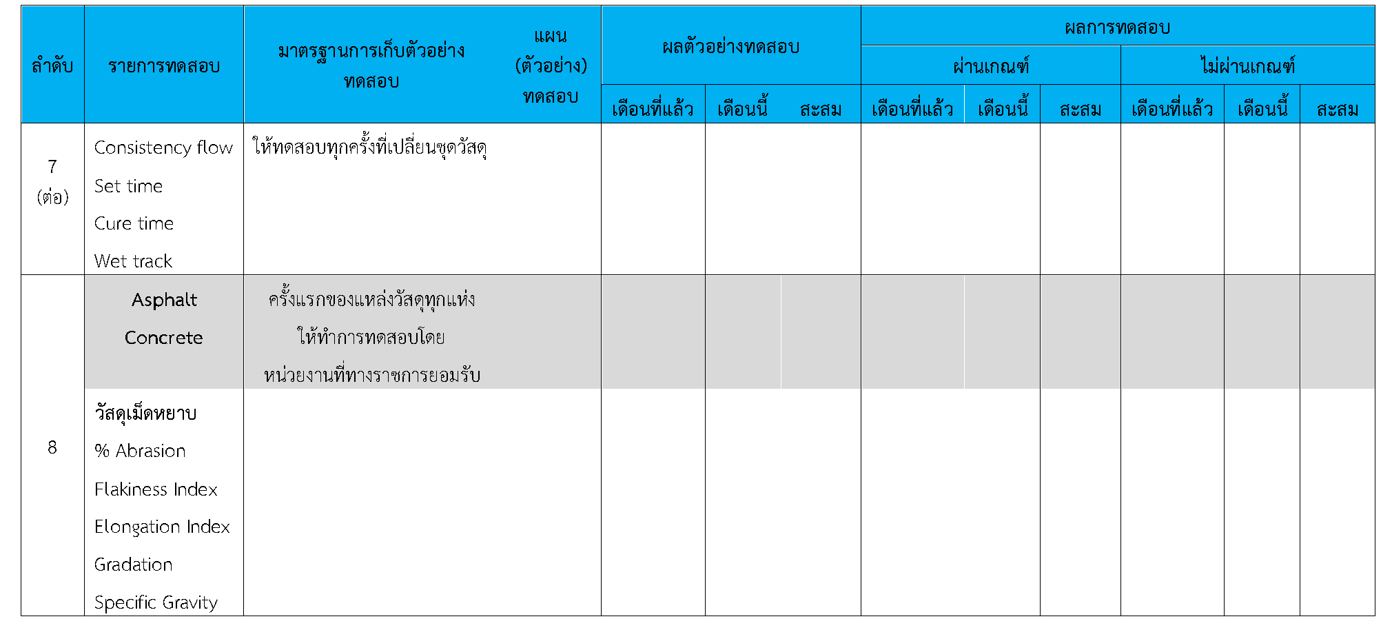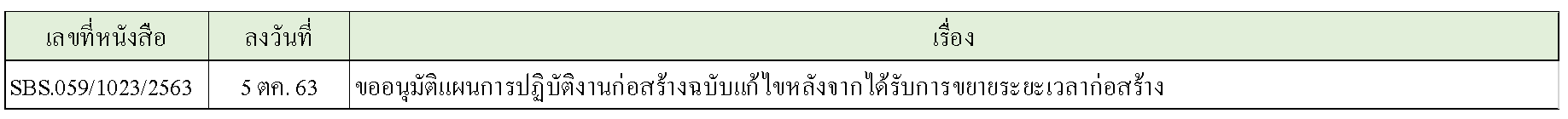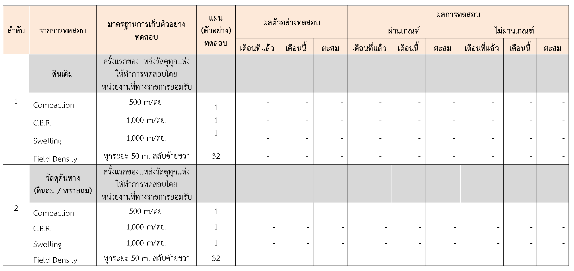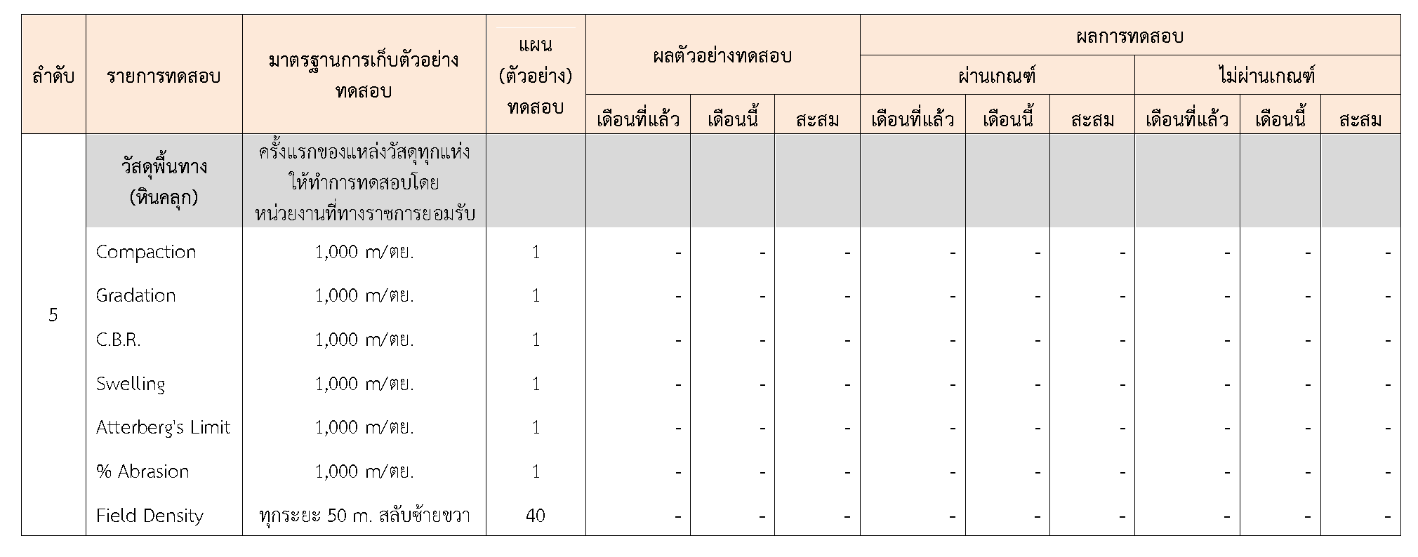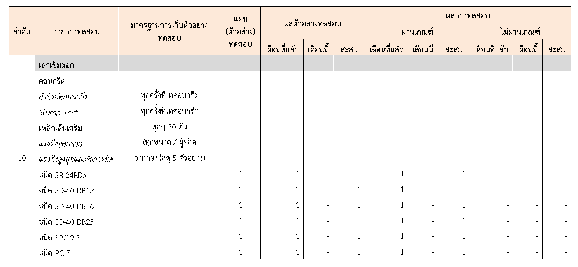 ในระหว่างวันที่ 1-31ตุลาคม 2563 ผู้ว่าจ้างได้เสนอหนังสือขออนุมัติใช้วัสดุถึงที่ปรึกษา โดยที่ปรึกษาได้ตรวจสอบวัสดุดังกล่าวมีผลทดสอบดังตาราง