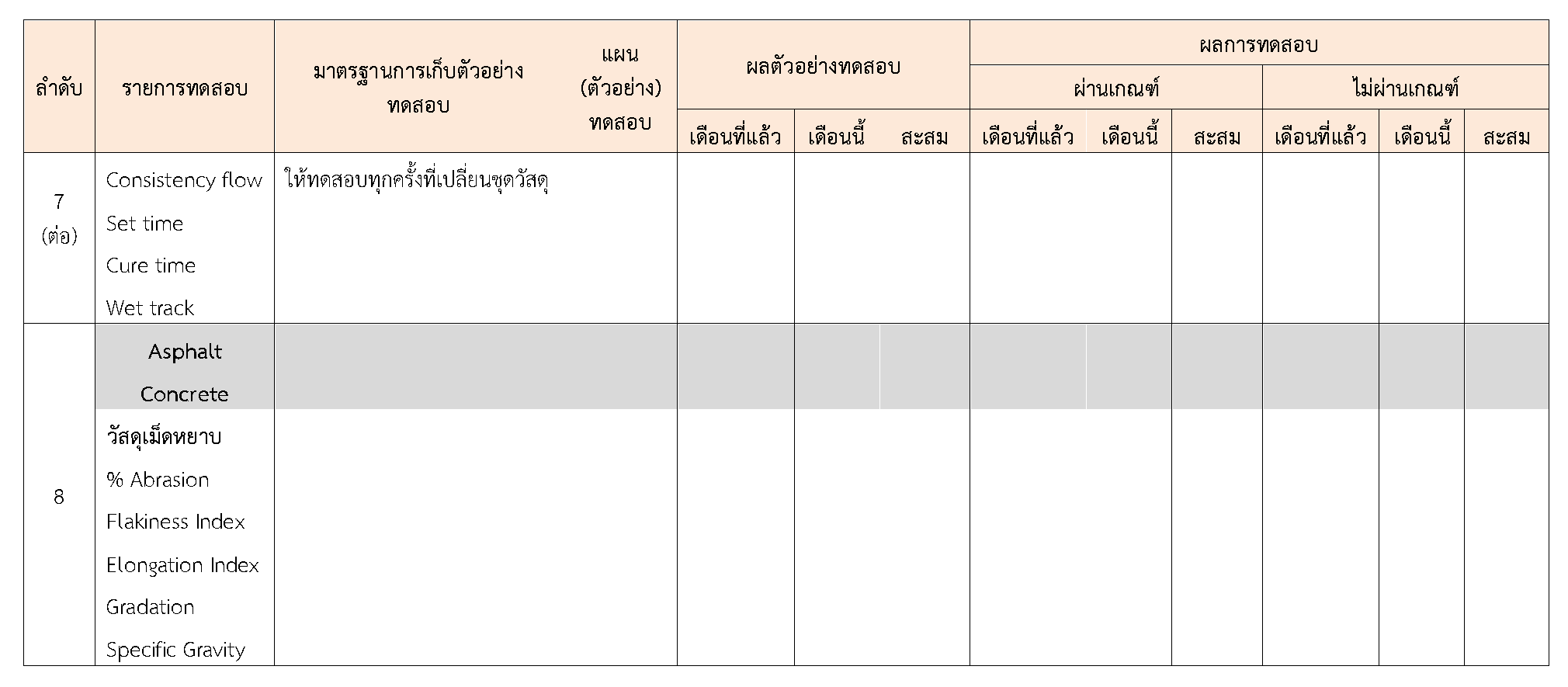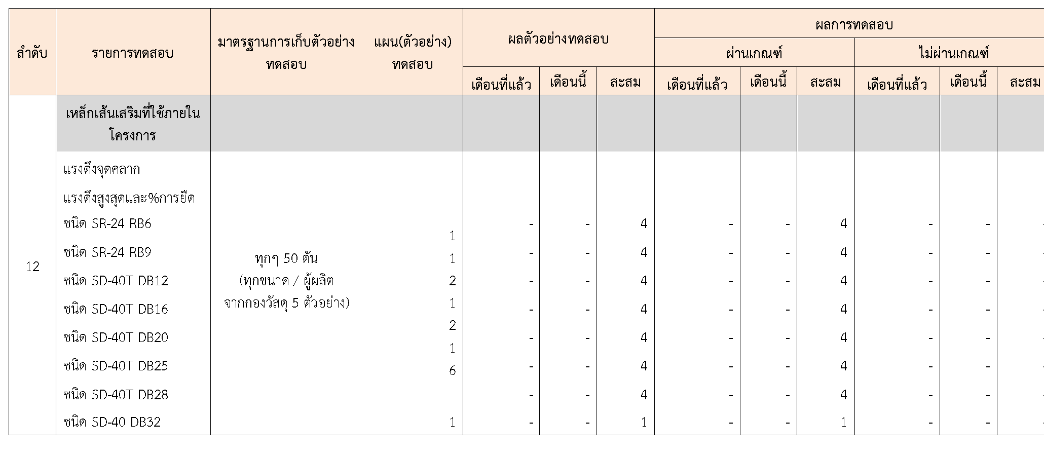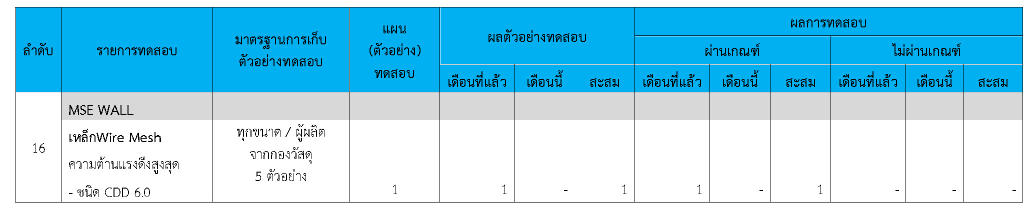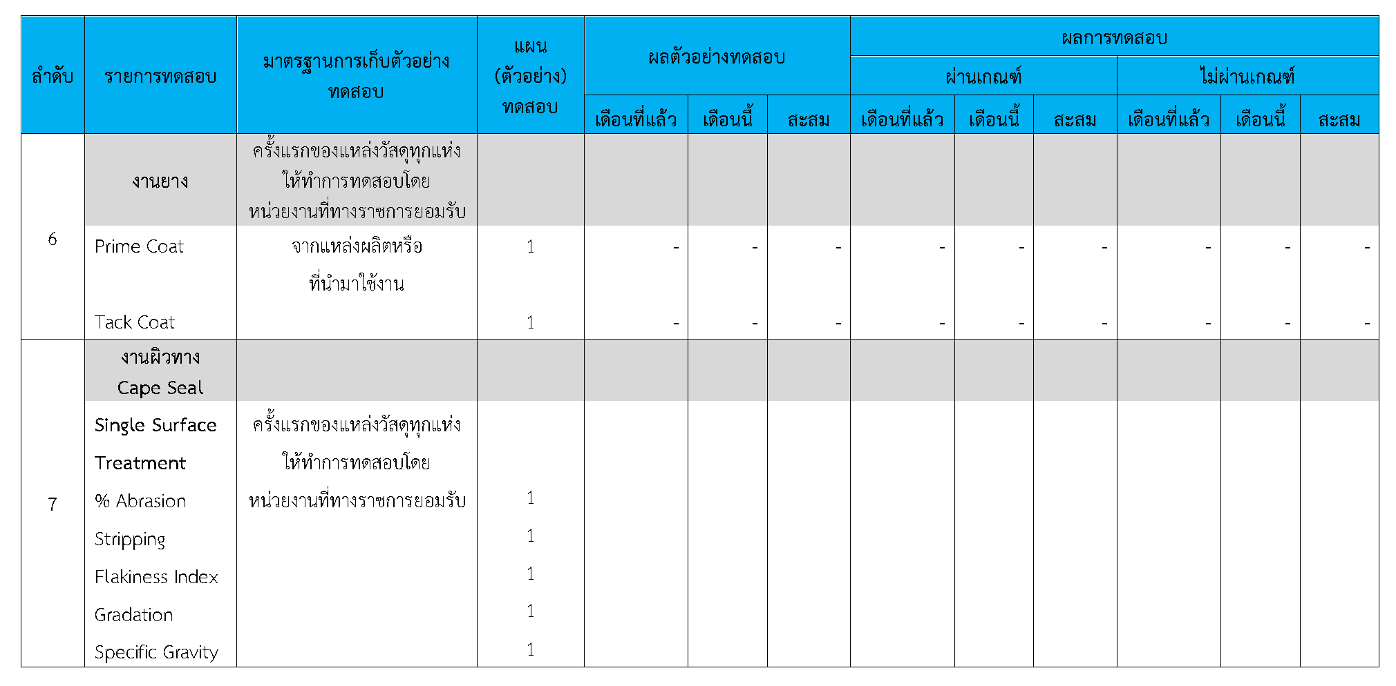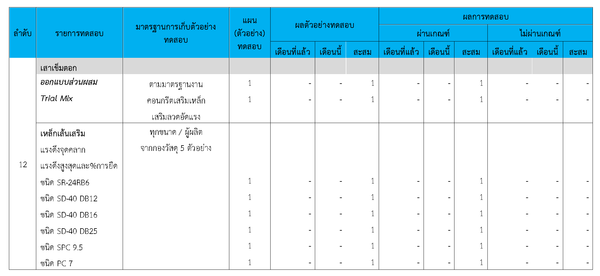 ในระหว่างวันที่ 1-31ตุลาคม 2563 ผู้ว่าจ้างได้เสนอหนังสือขออนุมัติใช้วัสดุถึงที่ปรึกษา โดยที่ปรึกษาได้ตรวจสอบวัสดุดังกล่าวมีผลทดสอบดังตาราง