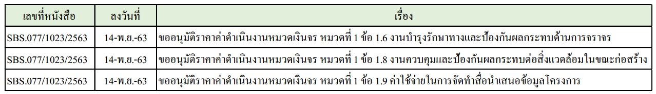 ในการดำเนินงานควบคุมงานก่อสร้าง ได้มีการจัดส่งเอกสารหนังสือต่างๆ ระหว่างกรมทางหลวงชนบท ที่ปรึกษา และผู้รับจ้างดังนี้