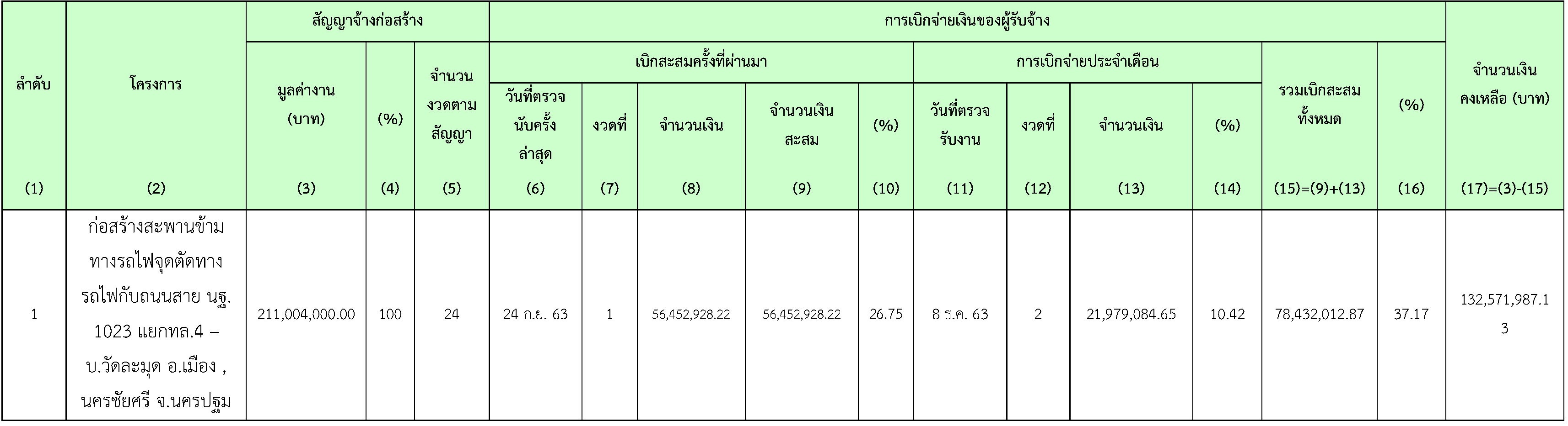รวมผลงาน ค่าใช้จ่ายเกี่ยวกับสาธารณูปโภคและการรถไฟแห่งประเทศไทยคิดเป็น 4.040% ของโครงการฯ