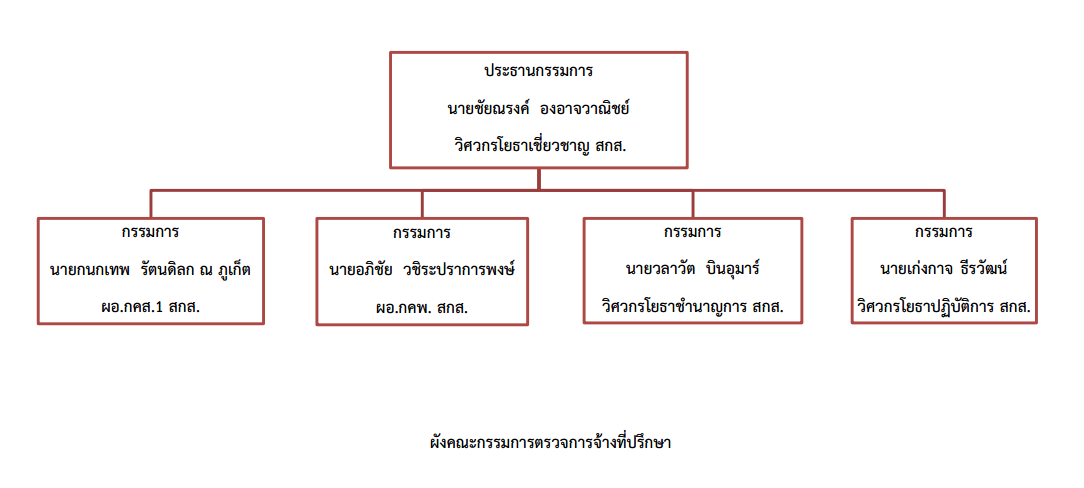 1.  นายชัยณรงค์          องอาจวาณิชย์        วิศวกรโยธาเชี่ยวชาญ สกส.         ประธานกรรมการ
