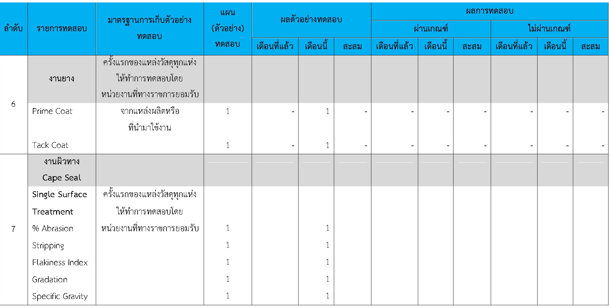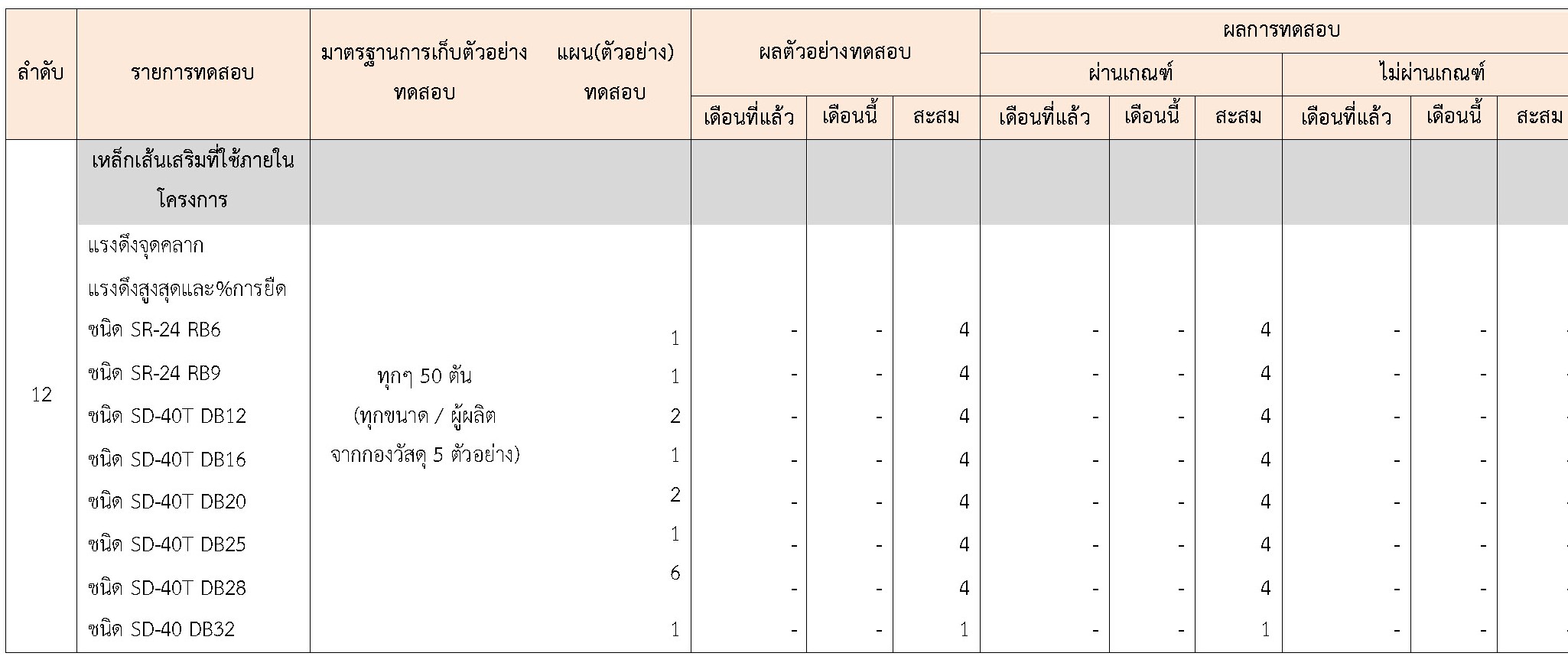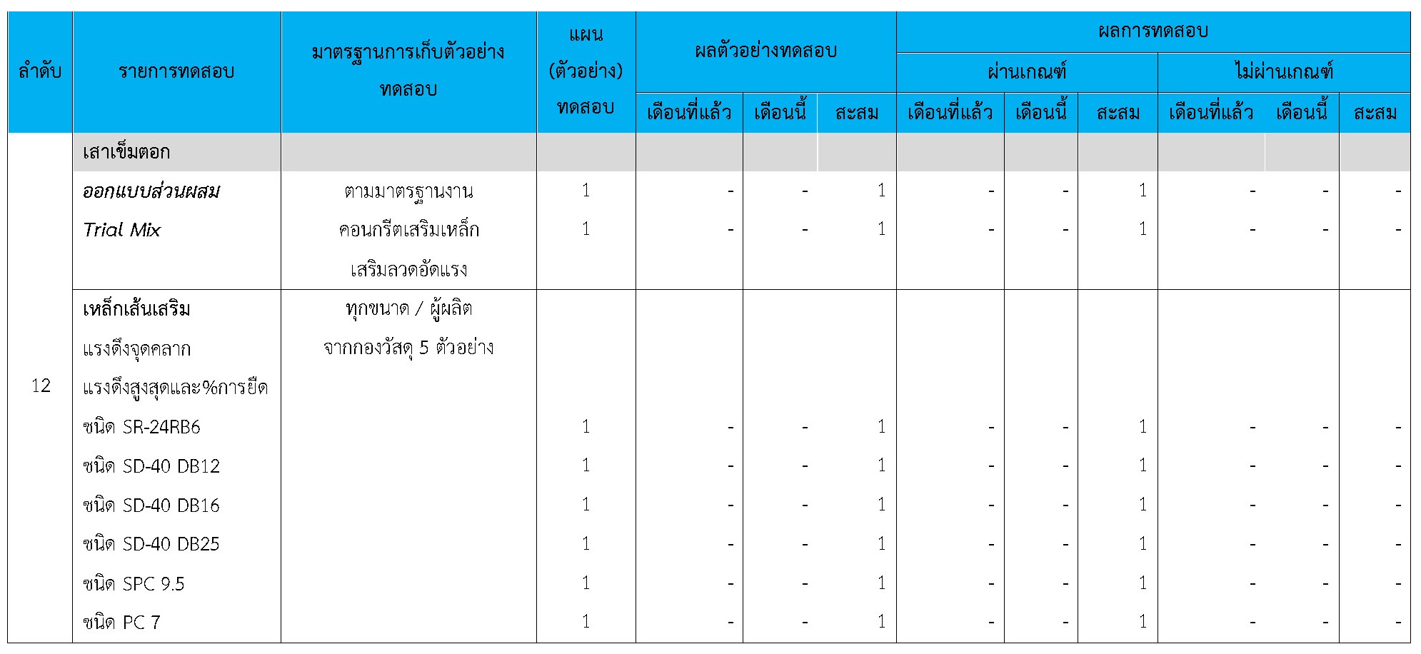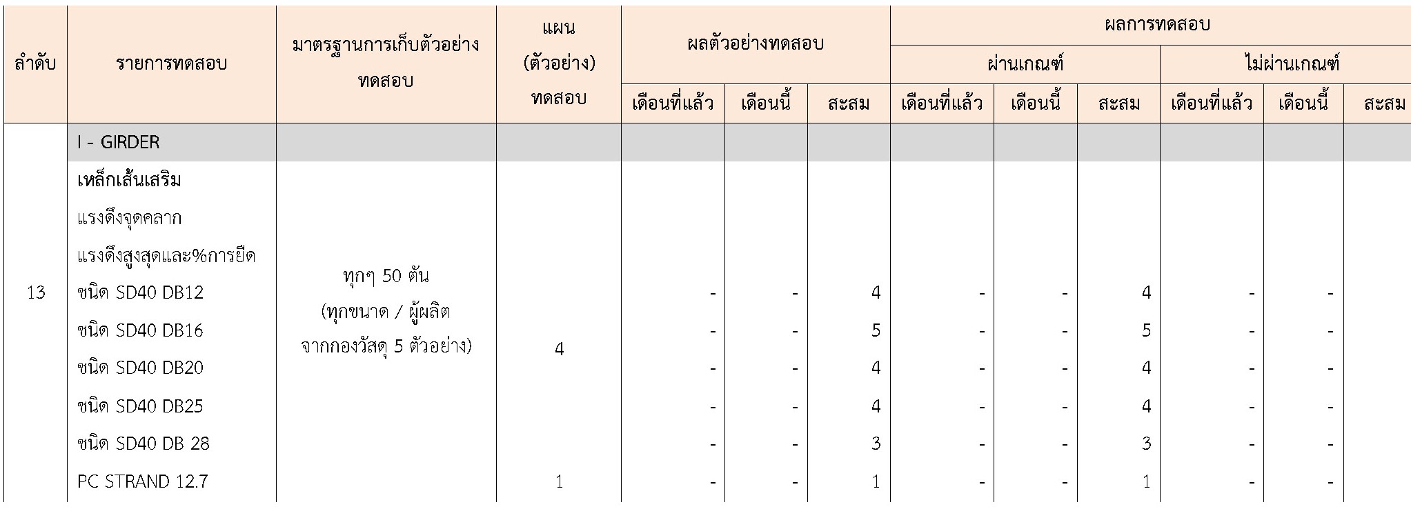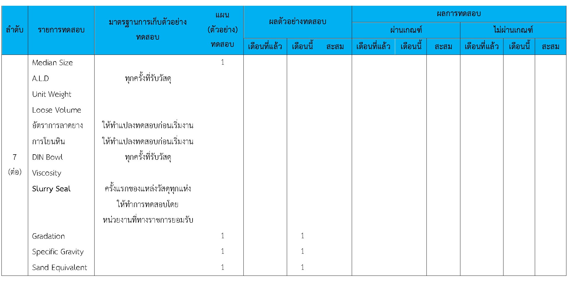 ในระหว่างวันที่ 1-30 เมษายน 2564ผู้ว่าจ้างได้เสนอหนังสือขออนุมัติใช้วัสดุถึงที่ปรึกษา โดยที่ปรึกษาได้ตรวจสอบวัสดุดังกล่าวมีผลทดสอบดังตาราง