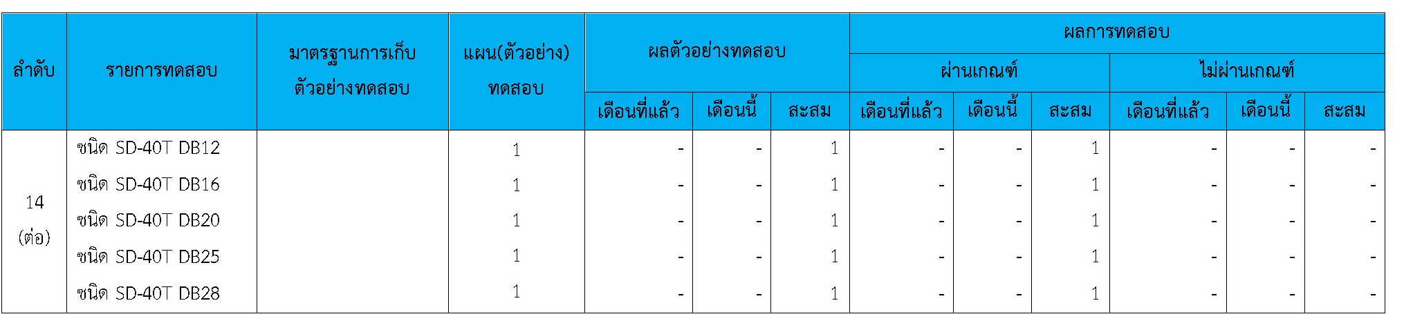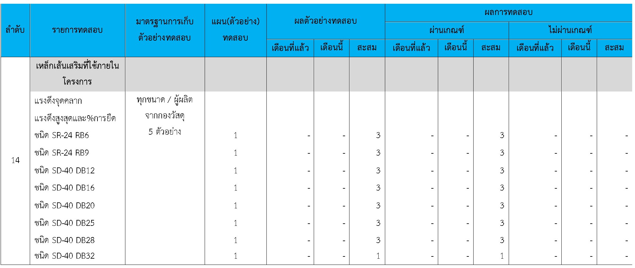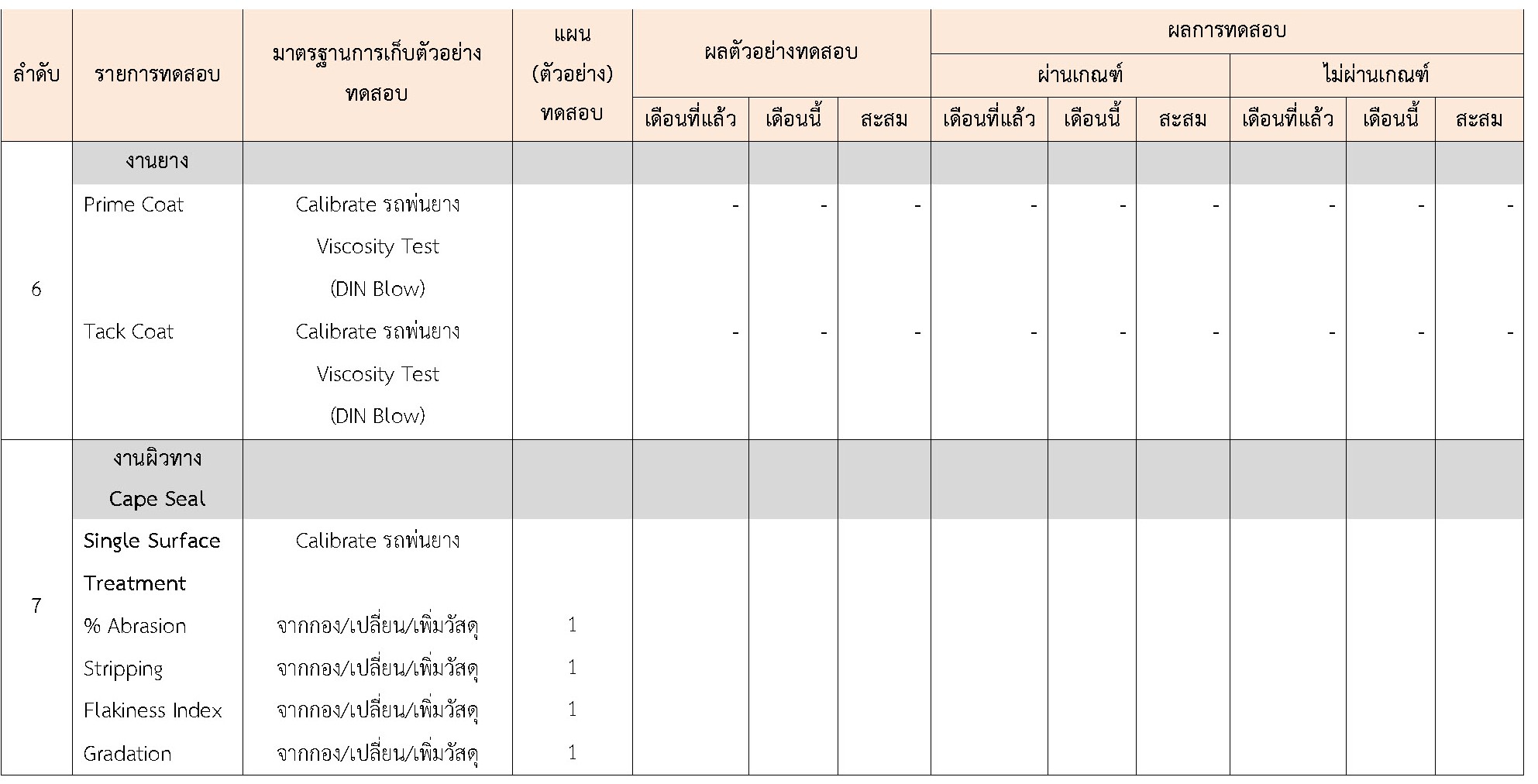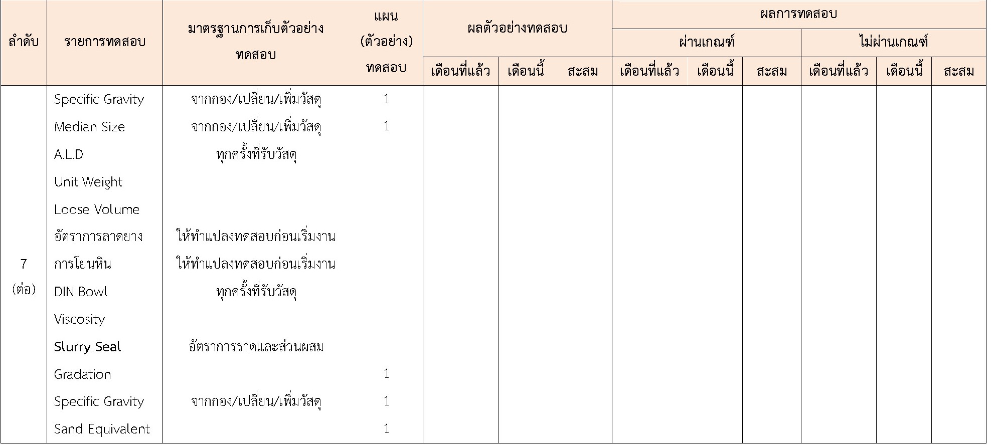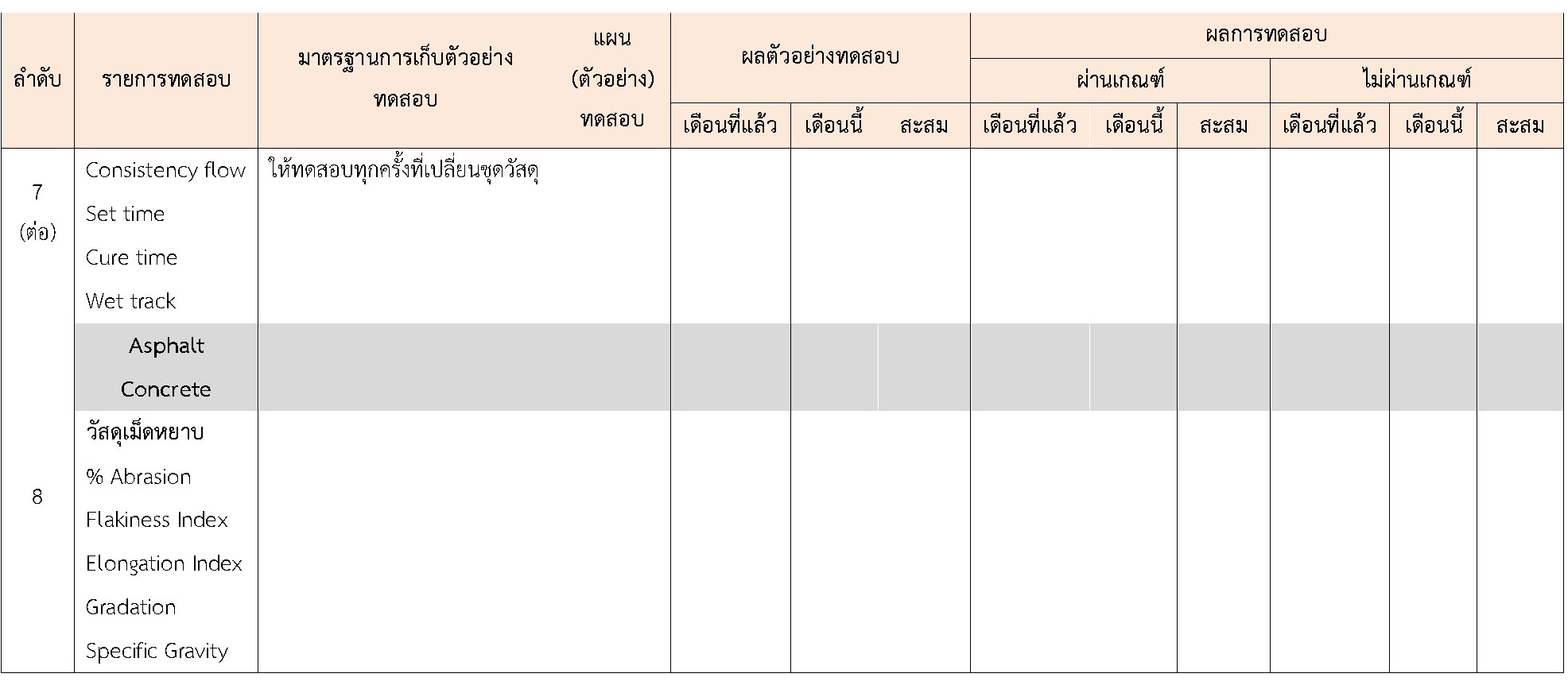 ในระหว่างวันที่ 1-30 เมษายน 2564ผู้ว่าจ้างได้เสนอหนังสือขออนุมัติใช้วัสดุถึงที่ปรึกษา โดยที่ปรึกษาได้ตรวจสอบวัสดุดังกล่าวมีผลทดสอบดังตาราง