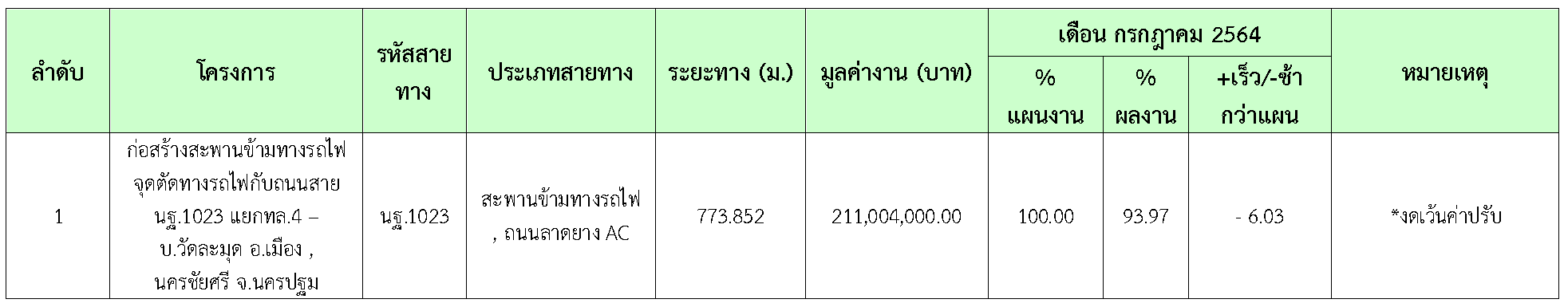 ความก้าวหน้าประจำเดือน กรกฎาคม 2564 เท่ากับ 0.23 % ผลงานสะสม เท่ากับ
