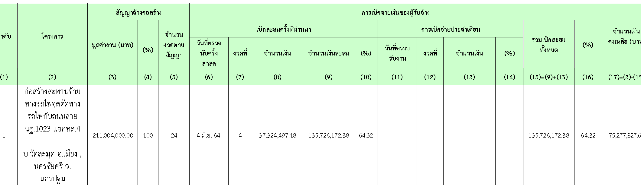 ตารางที่ 2.3-1 สรุปการเบิกจ่ายเงินของผู้รับจ้าง