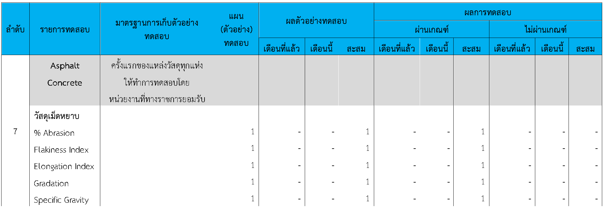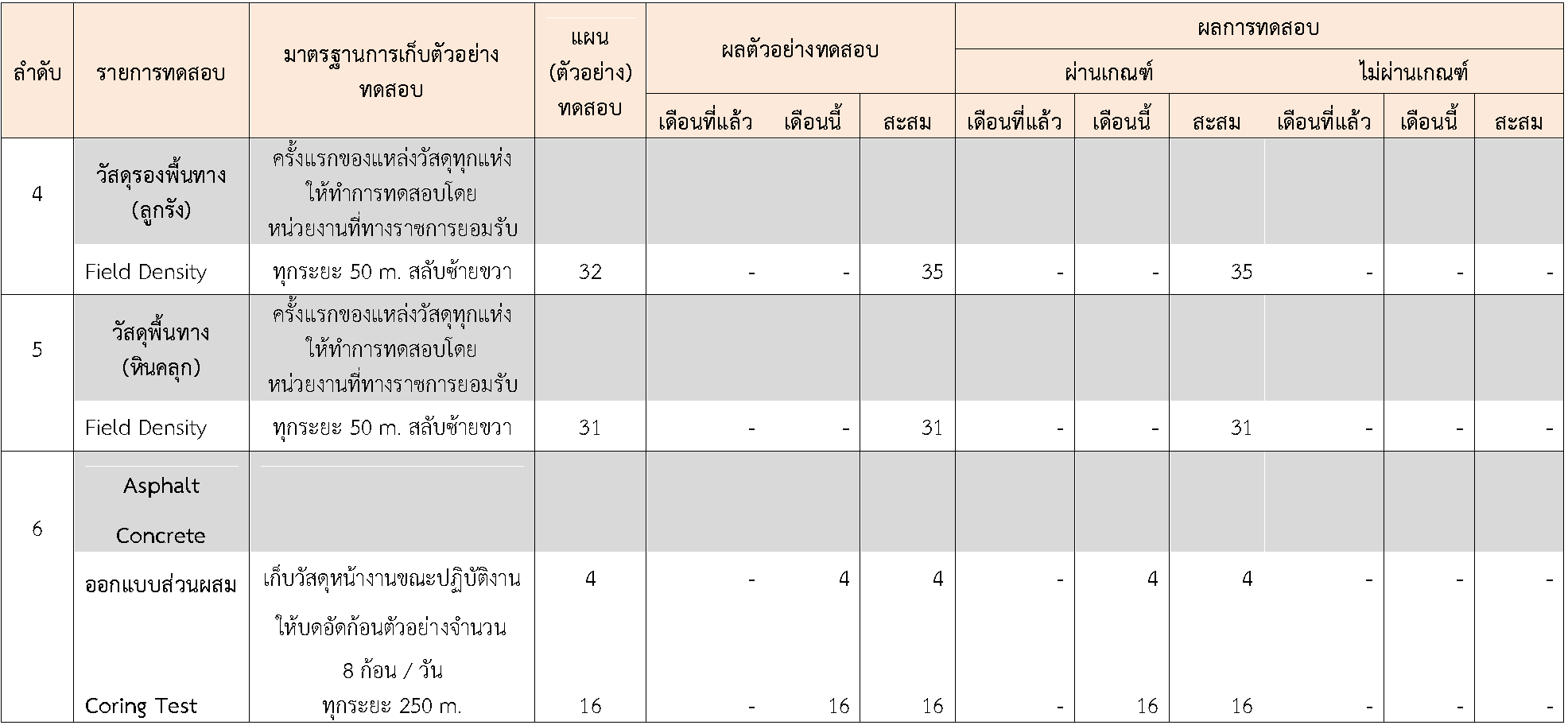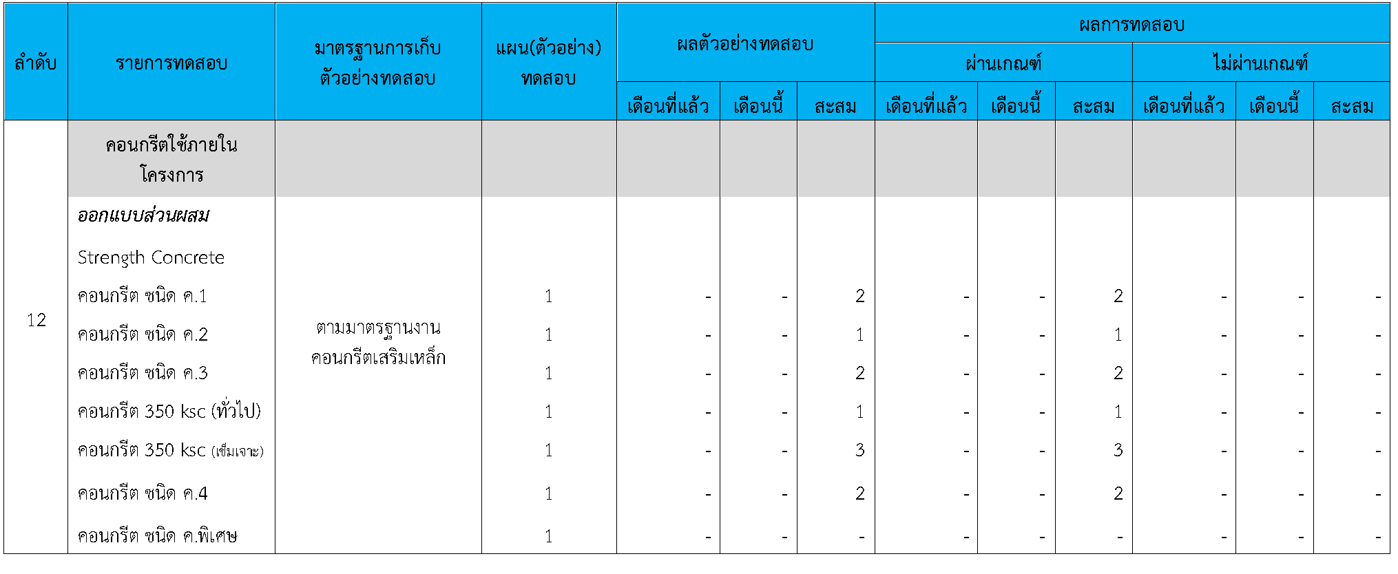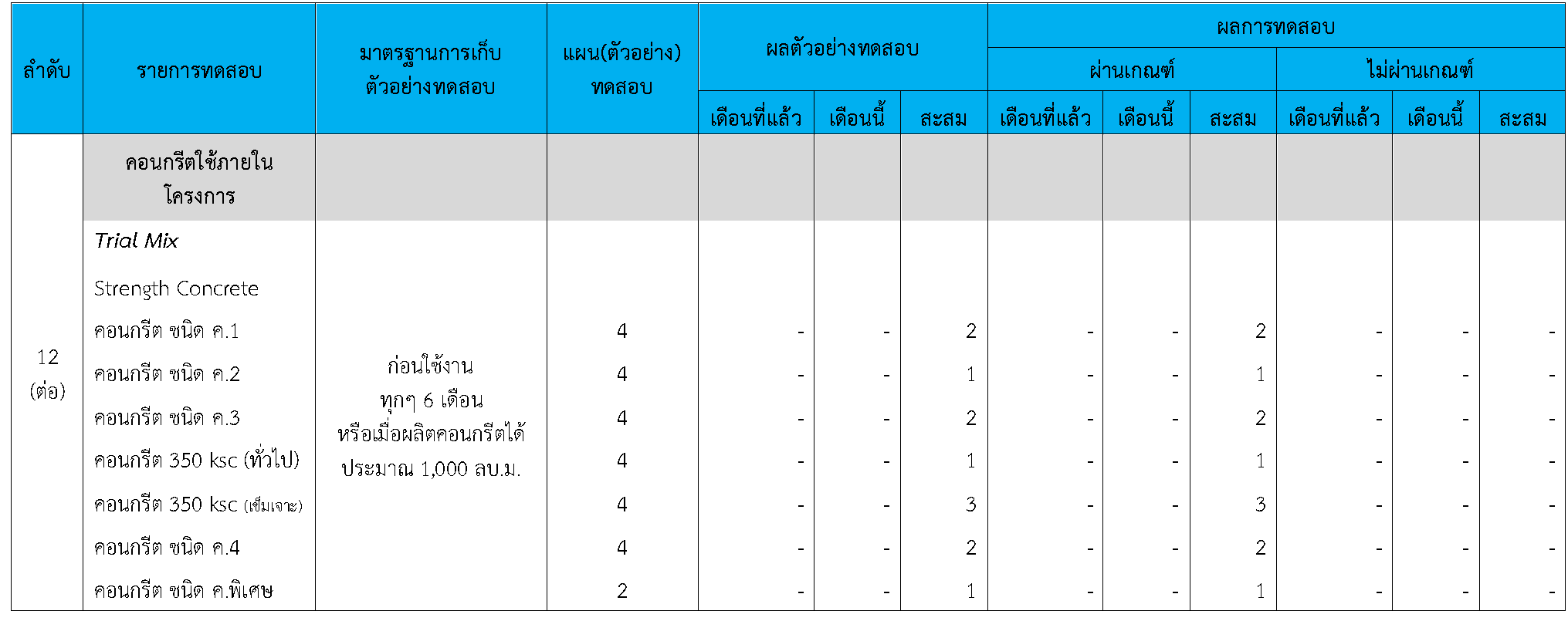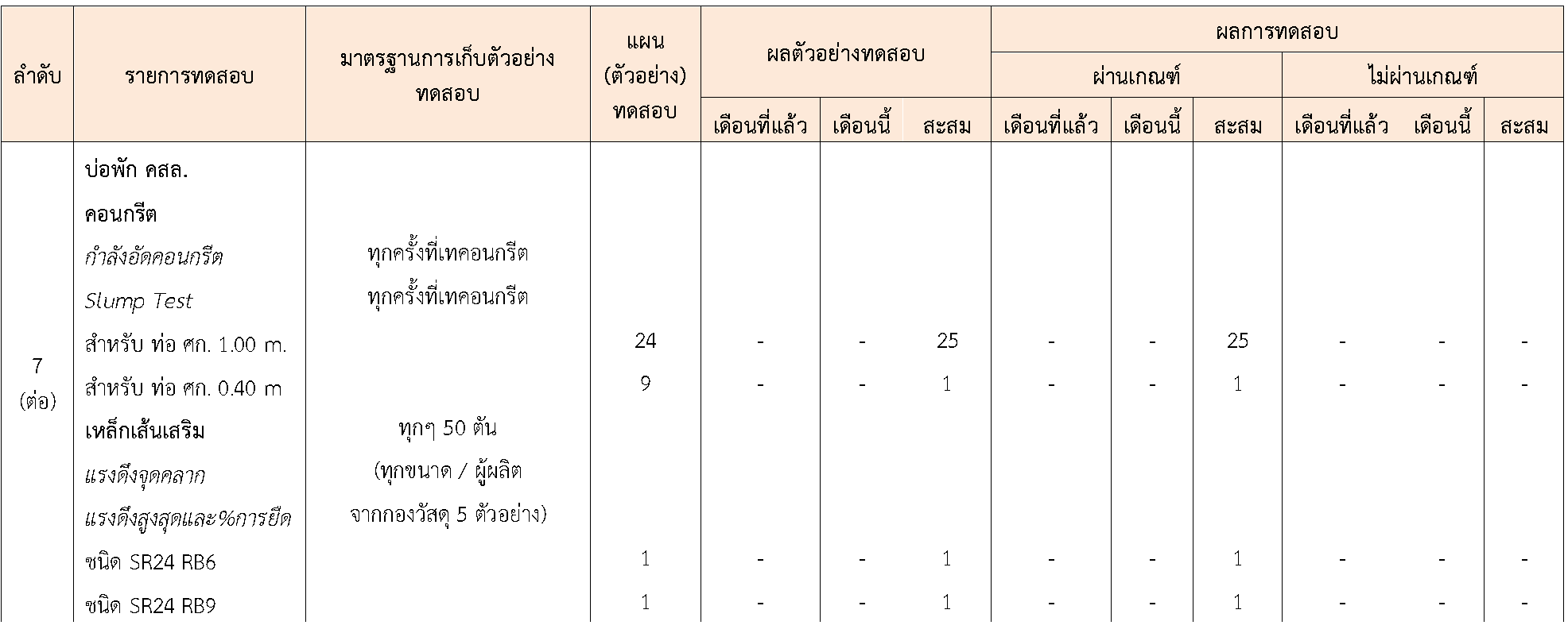 ในระหว่างวันที่ 1-31สิงหาคม 2564ผู้ว่าจ้างได้เสนอหนังสือขออนุมัติใช้วัสดุถึงที่ปรึกษา โดยที่ปรึกษาได้ตรวจสอบวัสดุดังกล่าวมีผลทดสอบดังตาราง