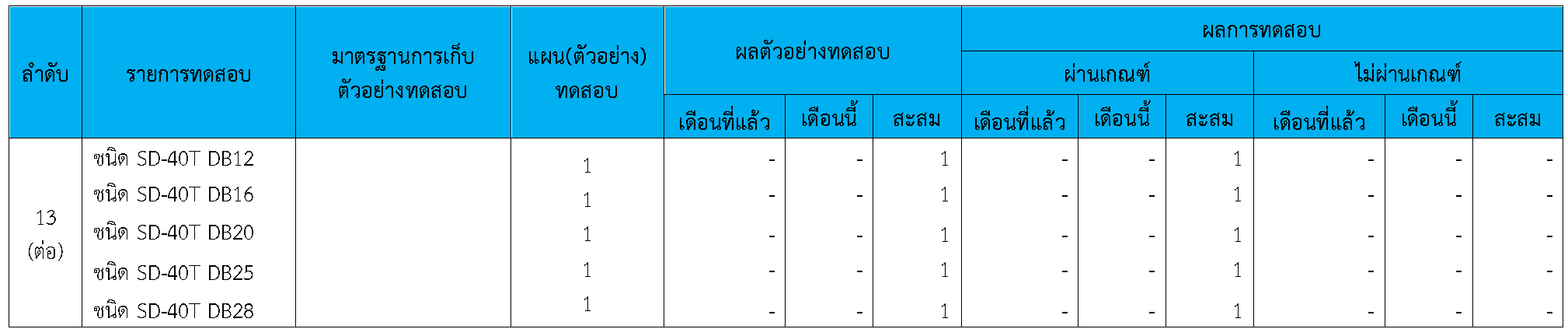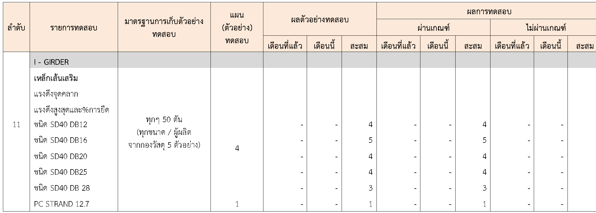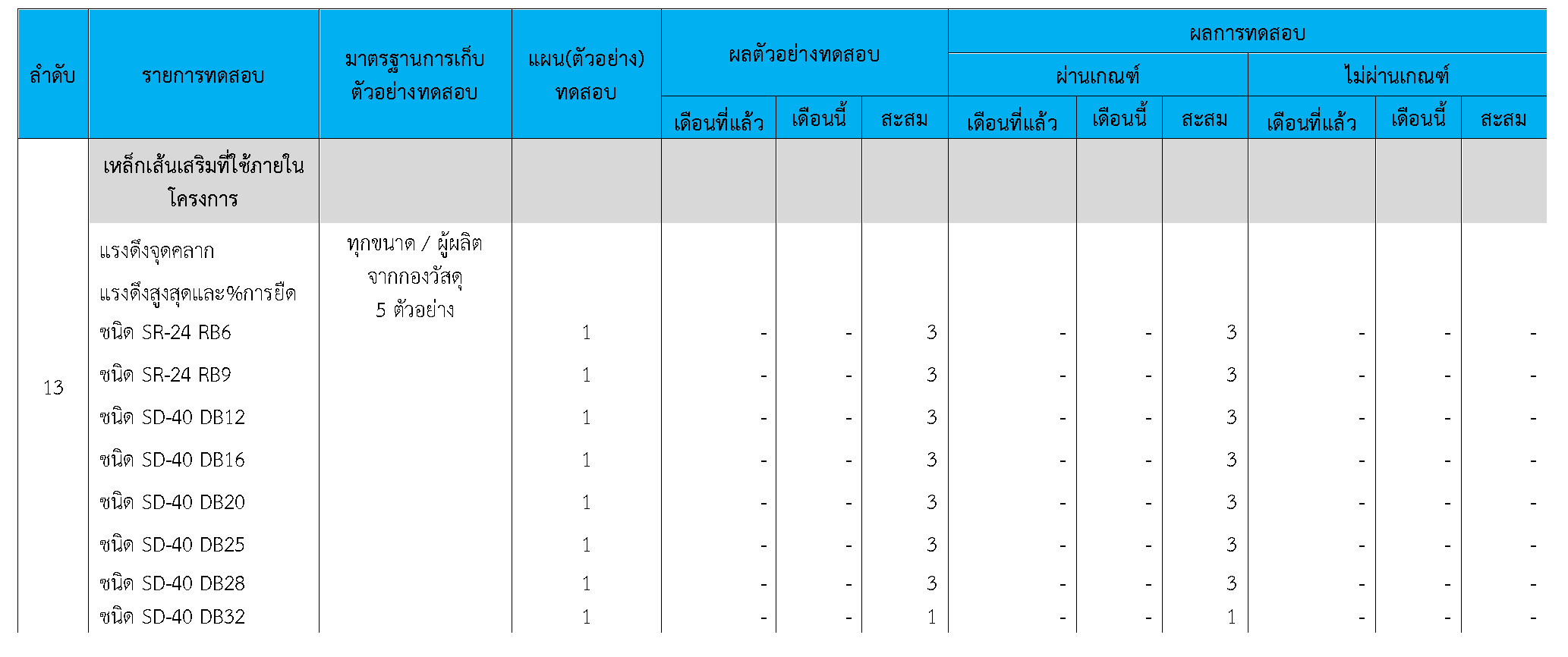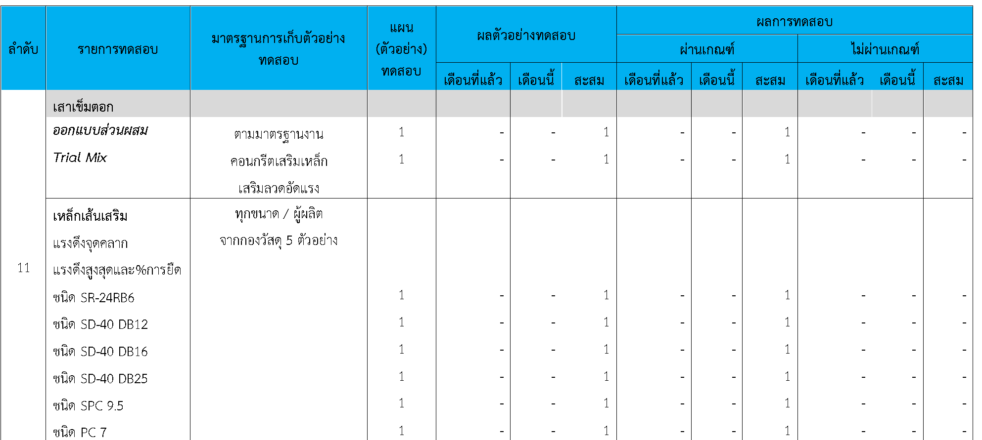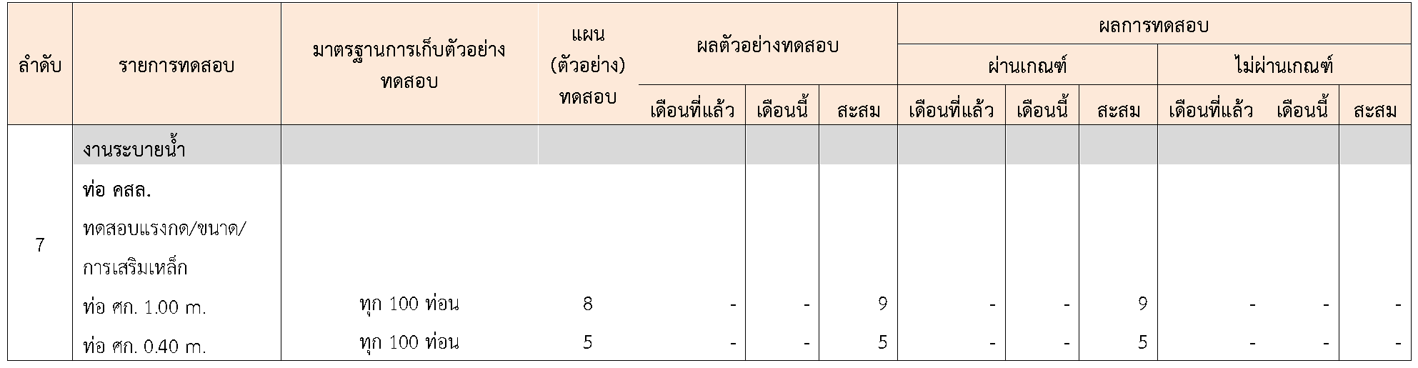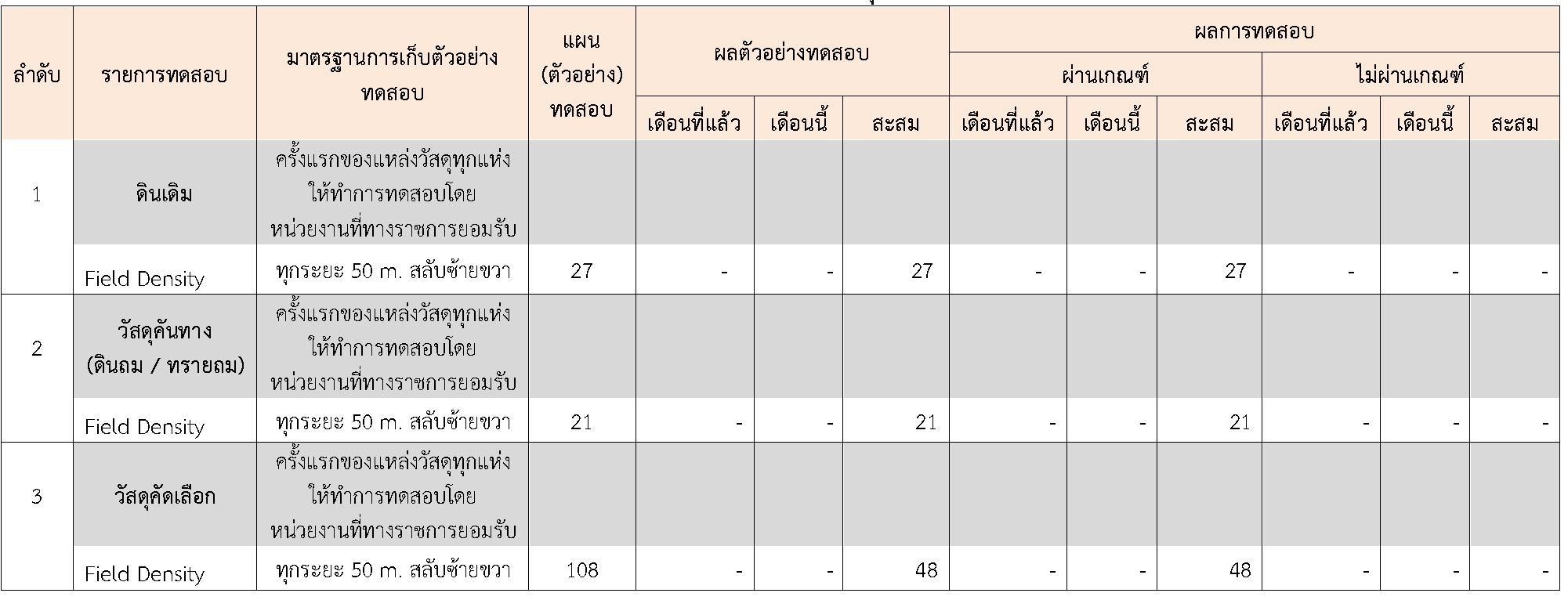 ในระหว่างวันที่ 1-31สิงหาคม 2564ผู้ว่าจ้างได้เสนอหนังสือขออนุมัติใช้วัสดุถึงที่ปรึกษา โดยที่ปรึกษาได้ตรวจสอบวัสดุดังกล่าวมีผลทดสอบดังตาราง