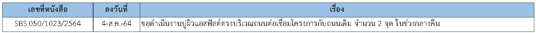 ในการดำเนินงานควบคุมงานก่อสร้าง ได้มีการจัดส่งเอกสารหนังสือต่างๆ ระหว่างกรมทางหลวงชนบท ที่ปรึกษา และผู้รับจ้างดังนี้