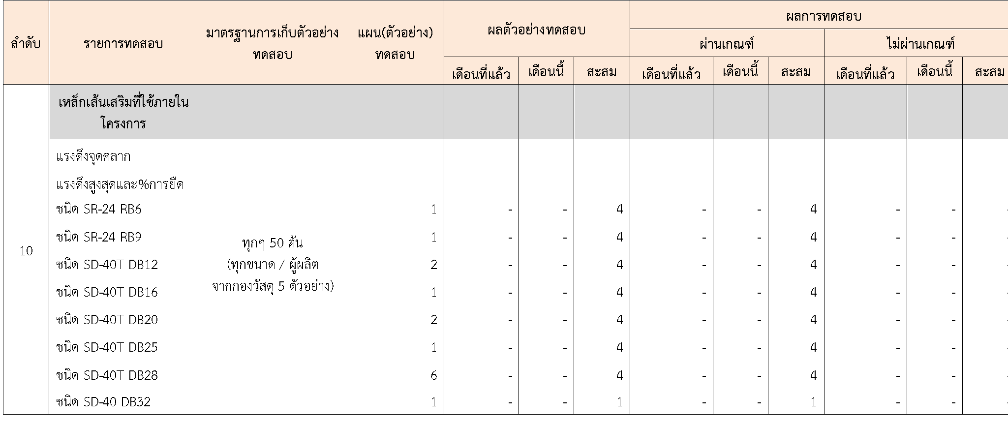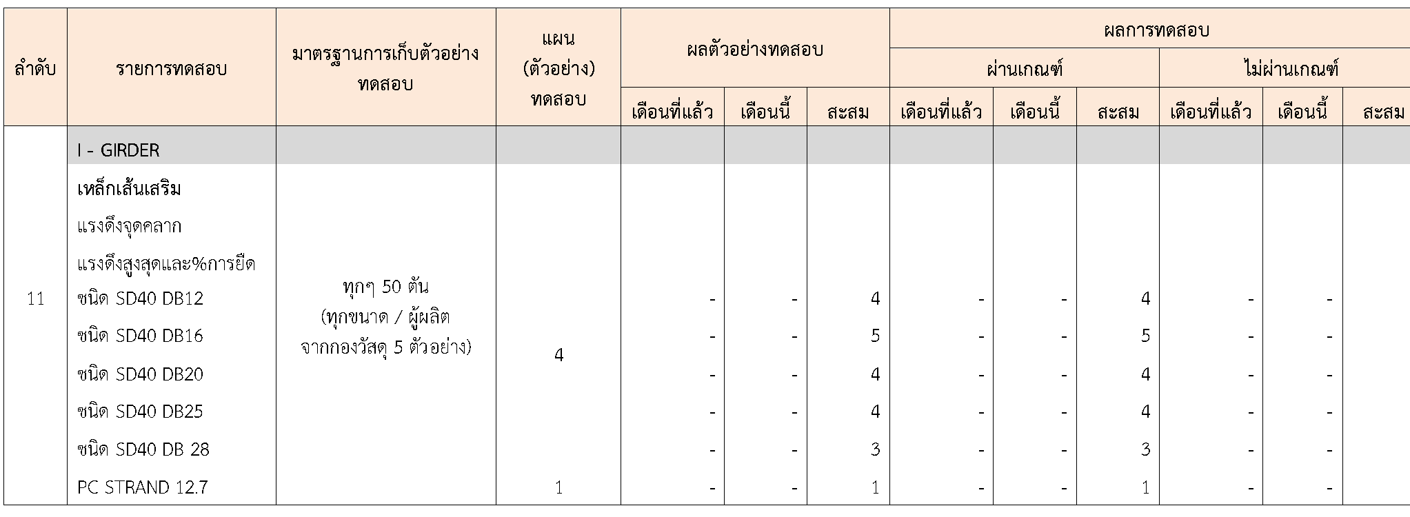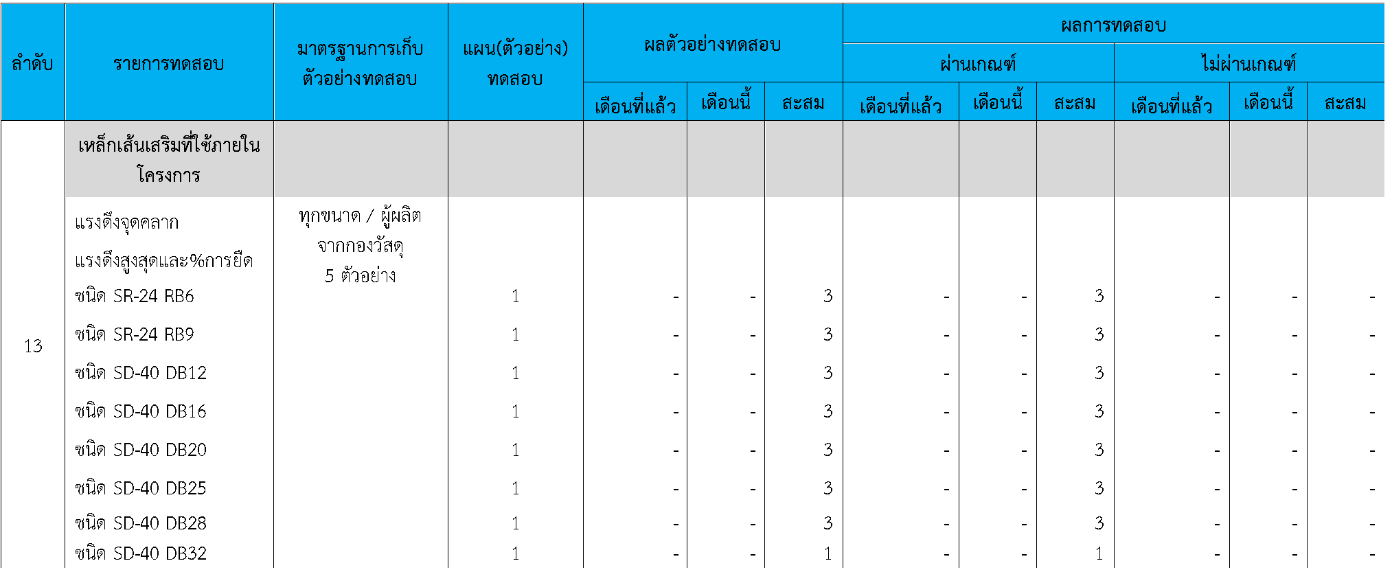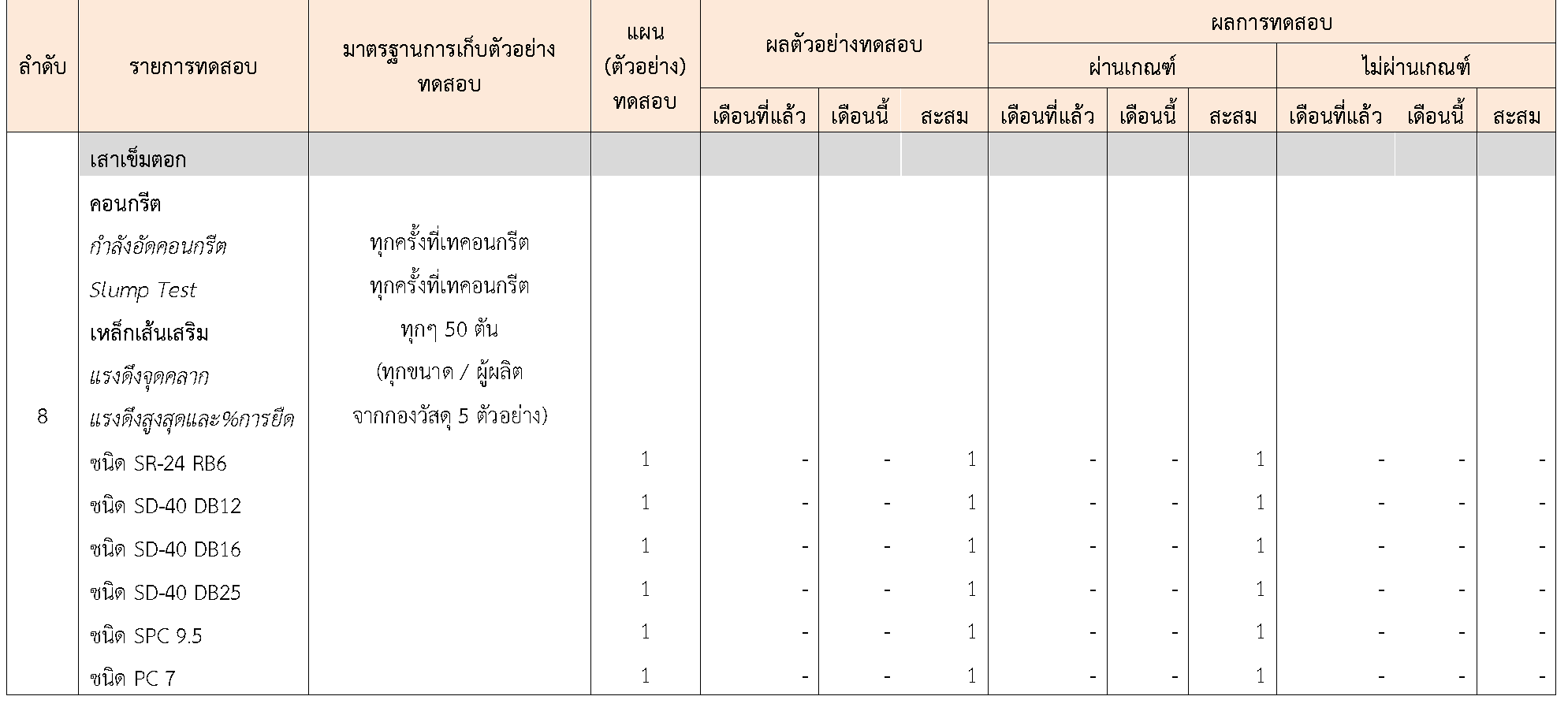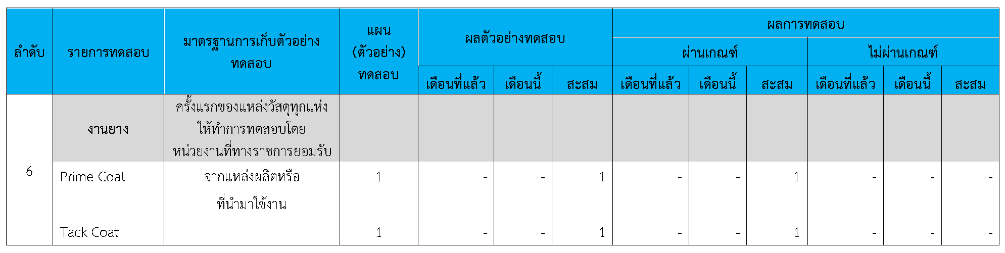 ในระหว่างวันที่ 1-30 กันยายน 2564 ผู้ว่าจ้างได้เสนอหนังสือขออนุมัติใช้วัสดุถึงที่ปรึกษา โดยที่ปรึกษาได้ตรวจสอบวัสดุดังกล่าวมีผลทดสอบดังตาราง