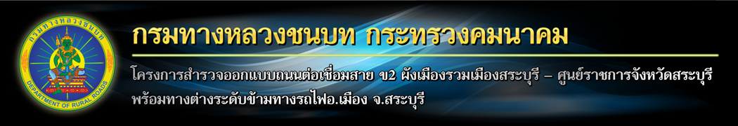 โครงการสำรวจออกแบบถนนต่อเชื่อมสาย ข2 ผังเมืองรวมเมืองสระบุรี – ศูนย์ราชการจังหวัดสระบุรี พร้อมทางต่างระดับข้ามทางรถไฟอ.เมือง จ.สระบุรี