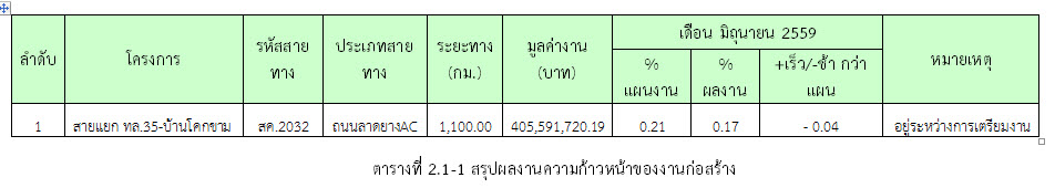 ในเดือน มิถุนายน 2559 ยังไม่มีความก้าวหน้าของงานก่อสร้างที่สามารถตรวจรับงานได้ จึงไม่มีการตรวจรับงานใดๆ ดังสรุปในตารางที่ 2.3-1