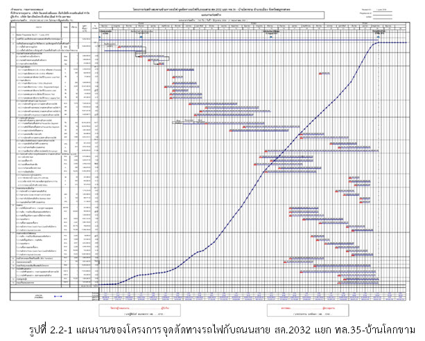 เนื่องจากเป็นช่วงเริ่มต้นของโครงการ ผู้รับจ้างยังไม่มีความก้าวหน้าของงานในสนาม แต่ได้จัดทำแผนงานของกิจกรรมก่อสร้างต่างๆ ในกรอบเวลาของสัญญา ให้ทางที่ปรึกษาพิจารณา ดังรูปที่ 2.2-1