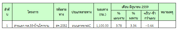 ความก้าวหน้าในช่วงเดือน มิถุนายน 2559 (3.78%) ผลงานความก้าวหน้าแสดงไว้ในตารางที่ 3.1-1 ดังนี้