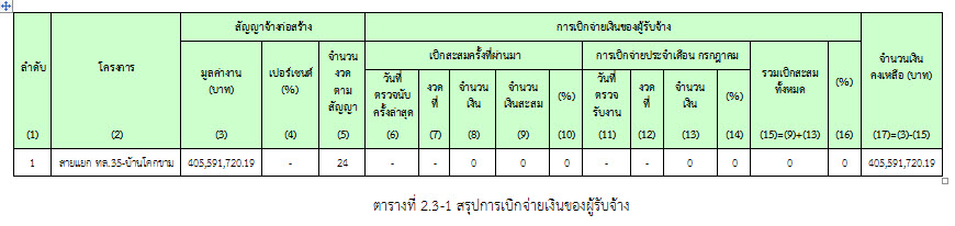 ตารางที่ 2.3-1 สรุปการเบิกจ่ายเงินของผู้รับจ้าง