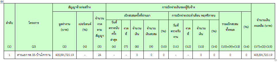 ตารางที่ 2.3-1 สรุปการเบิกจ่ายเงินของผู้รับจ้าง
