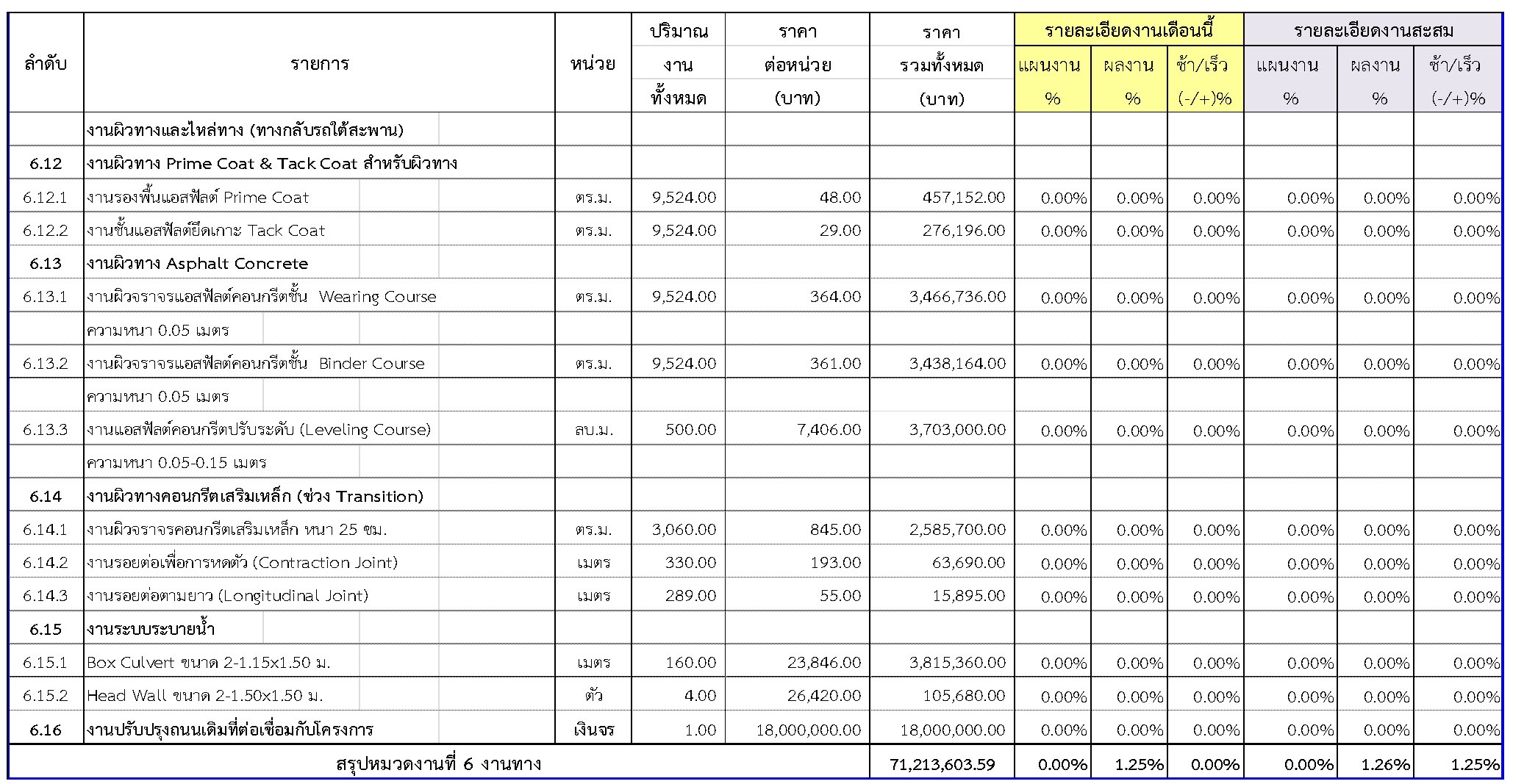 2.2 ความก้าวหน้าของงานก่อสร้างแยกตามรายการ
