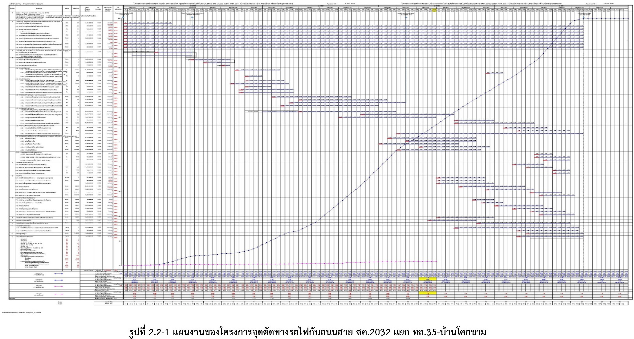 เนื่องจากในช่วงเดือนที่ 16ของโครงการ ผู้รับจ้างกำลังเคลียร์สิ่งปลูกสร้างหน้างานในสนาม และได้จัดทำแผนงานของกิจกรรมก่อสร้างต่างๆ ในกรอบเวลาของสัญญา ให้ทางที่ปรึกษาพิจารณา ดังรูปที่ 2.2-1