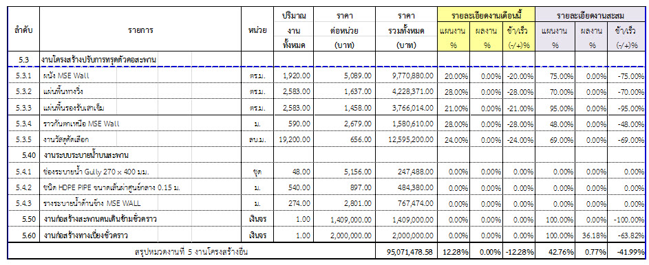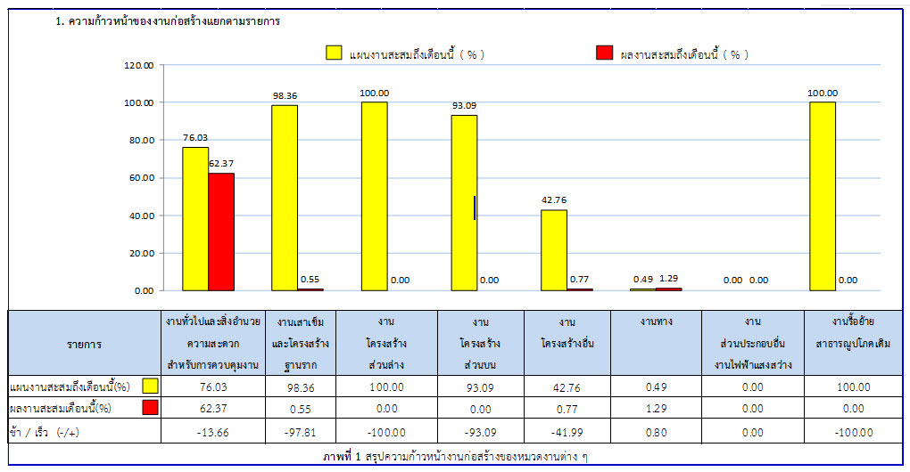 ตารางที่ 2.1-1 สรุปผลงานความก้าวหน้าของงานก่อสร้าง