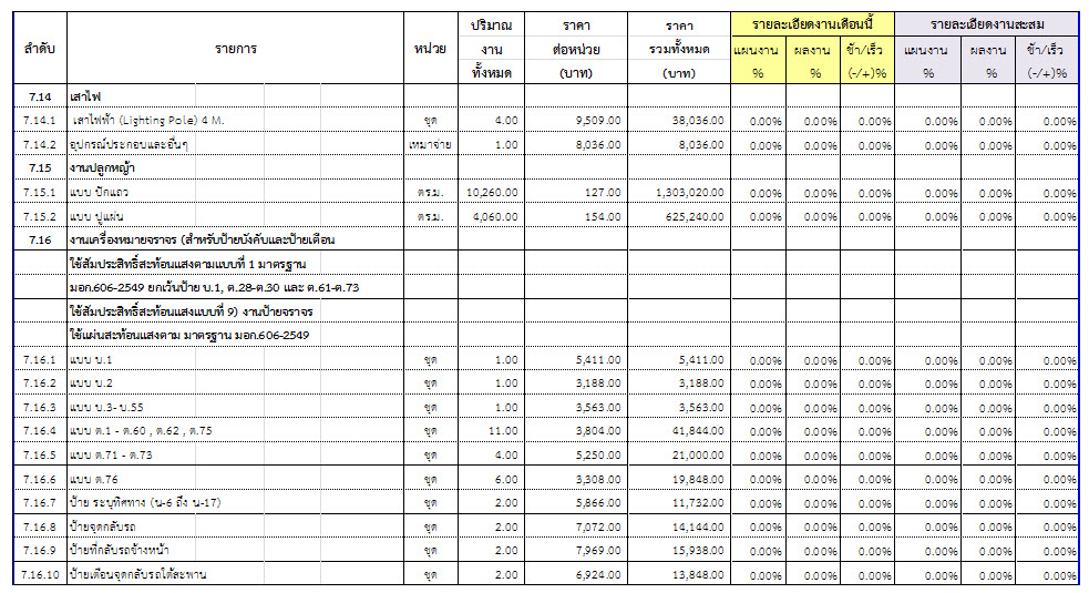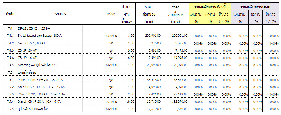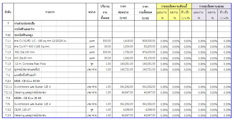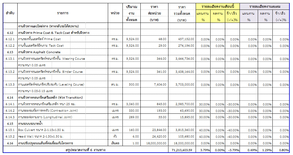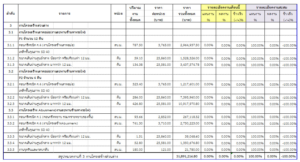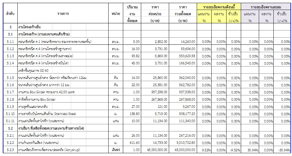 2.2 ความก้าวหน้าของงานก่อสร้างแยกตามรายการ