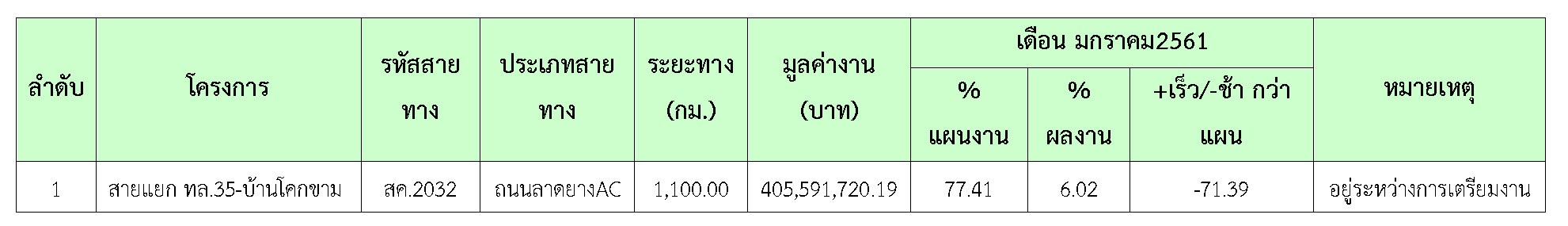 ความก้าวหน้าของเดือนมกราคม 2561ของการปฏิบัติงาน (6.02%)แยกเป็น ดังต่อไปนี้