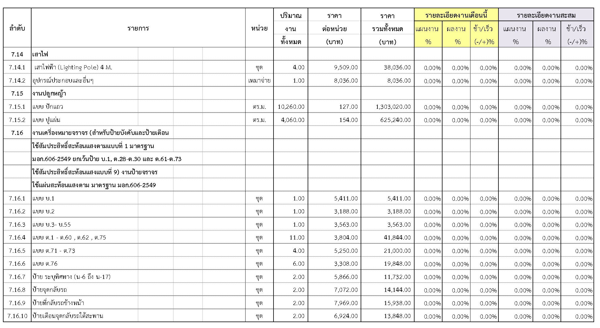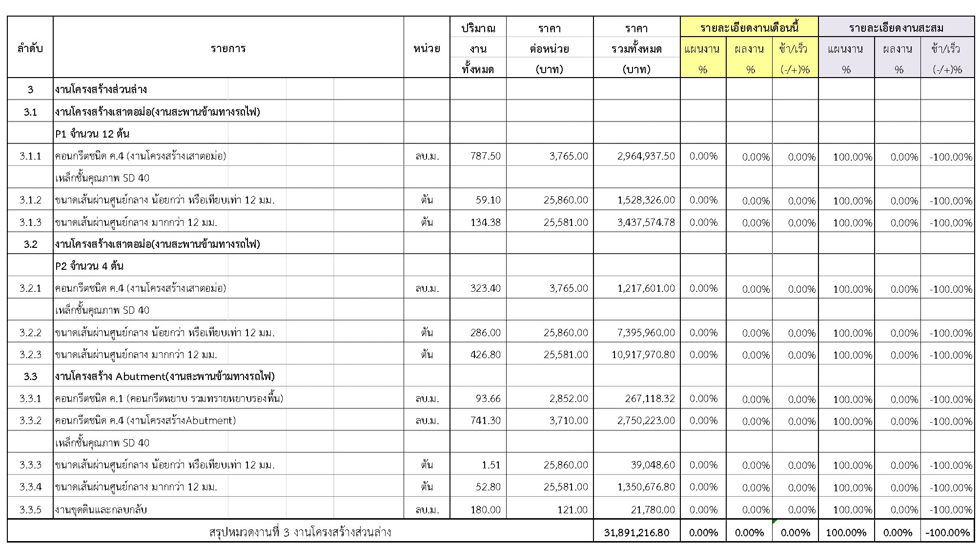 2.2 ความก้าวหน้าของงานก่อสร้างแยกตามรายการ