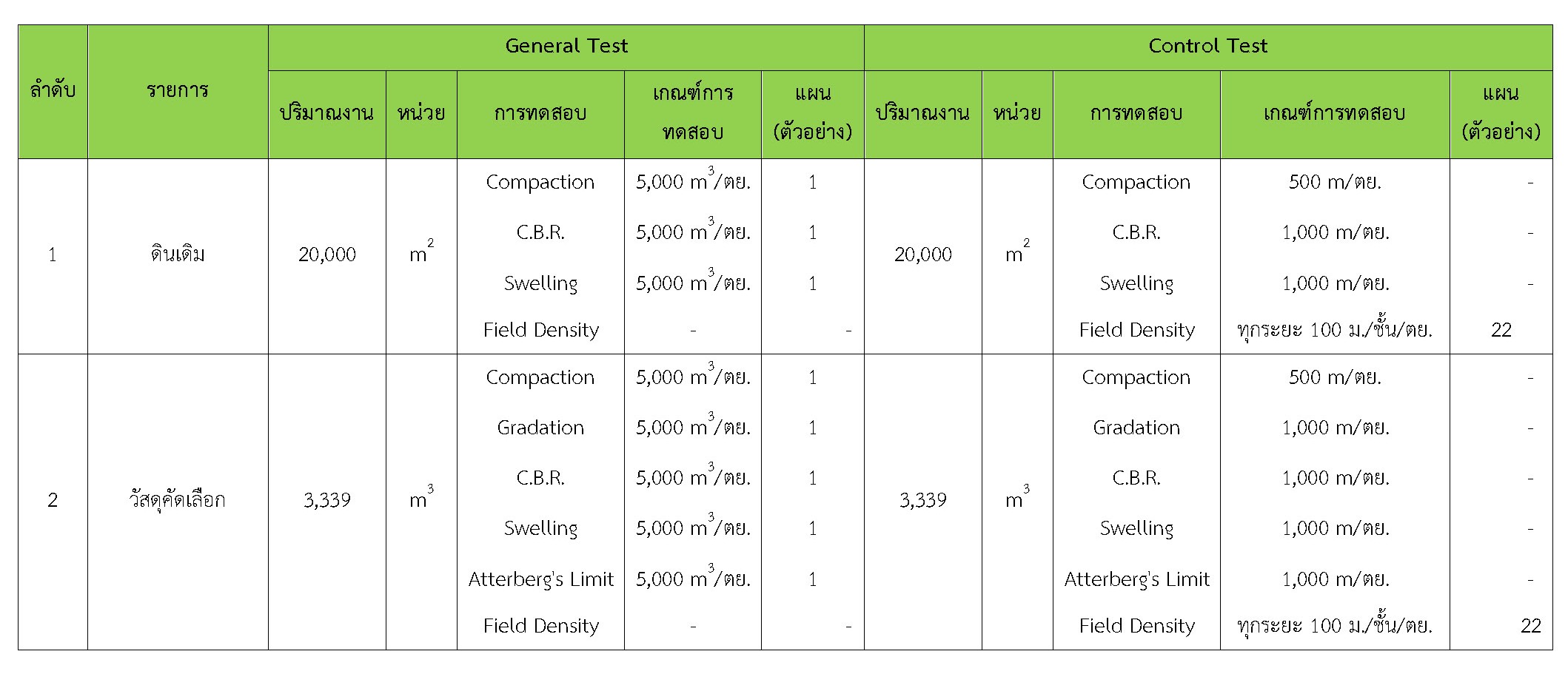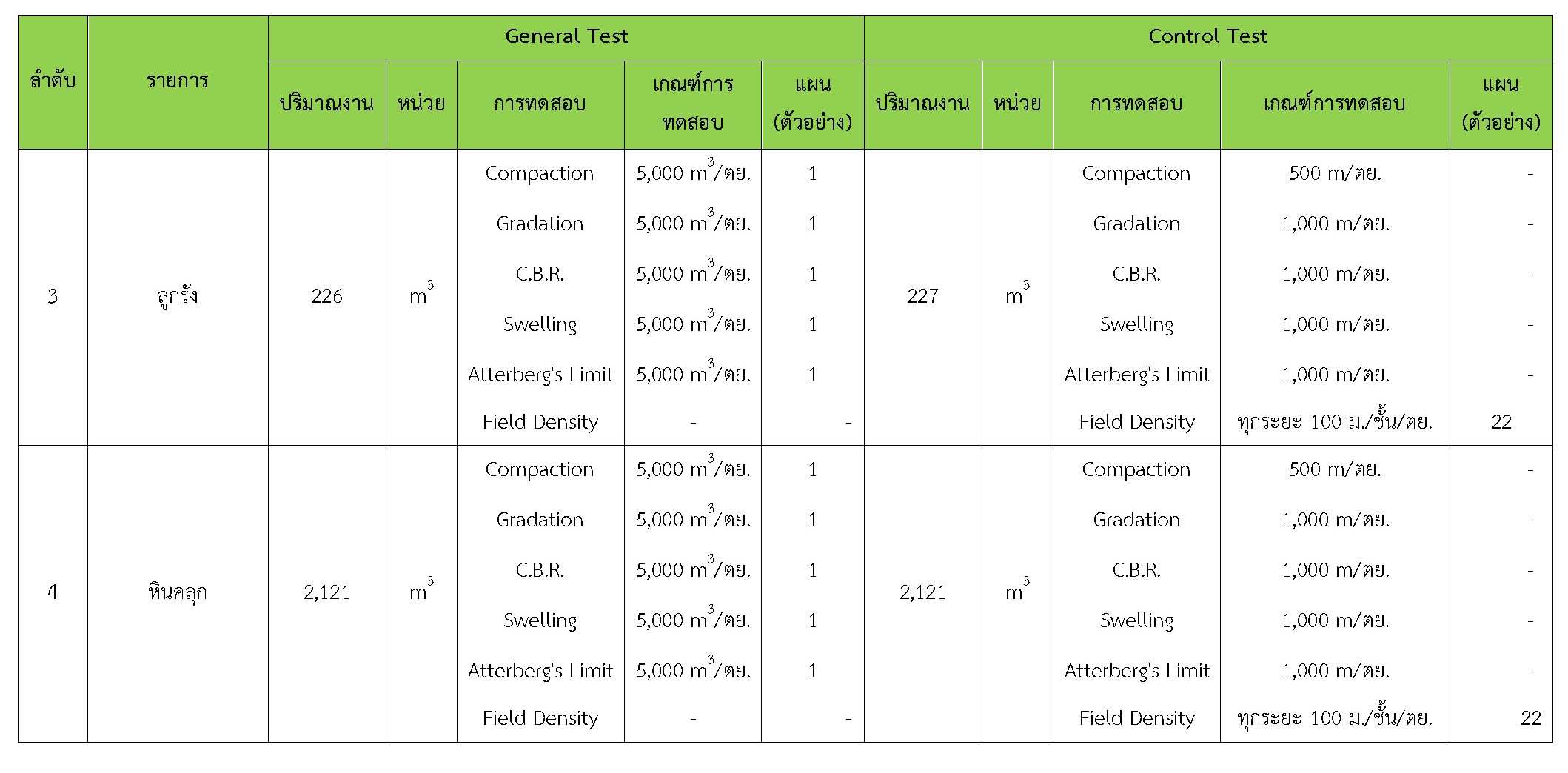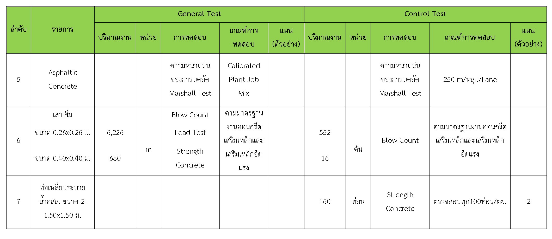 ในระหว่างวันที่ 1-28กุมภาพันธ์2561ผู้ว่าจ้างได้เสนอหนังสือขออนุมัติใช้วัสดุถึงที่ปรึกษา โดยที่ปรึกษาได้ตรวจสอบวัสดุดังกล่าวมีผลทดสอบดังตาราง
