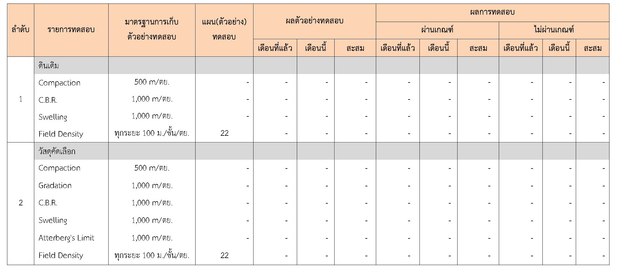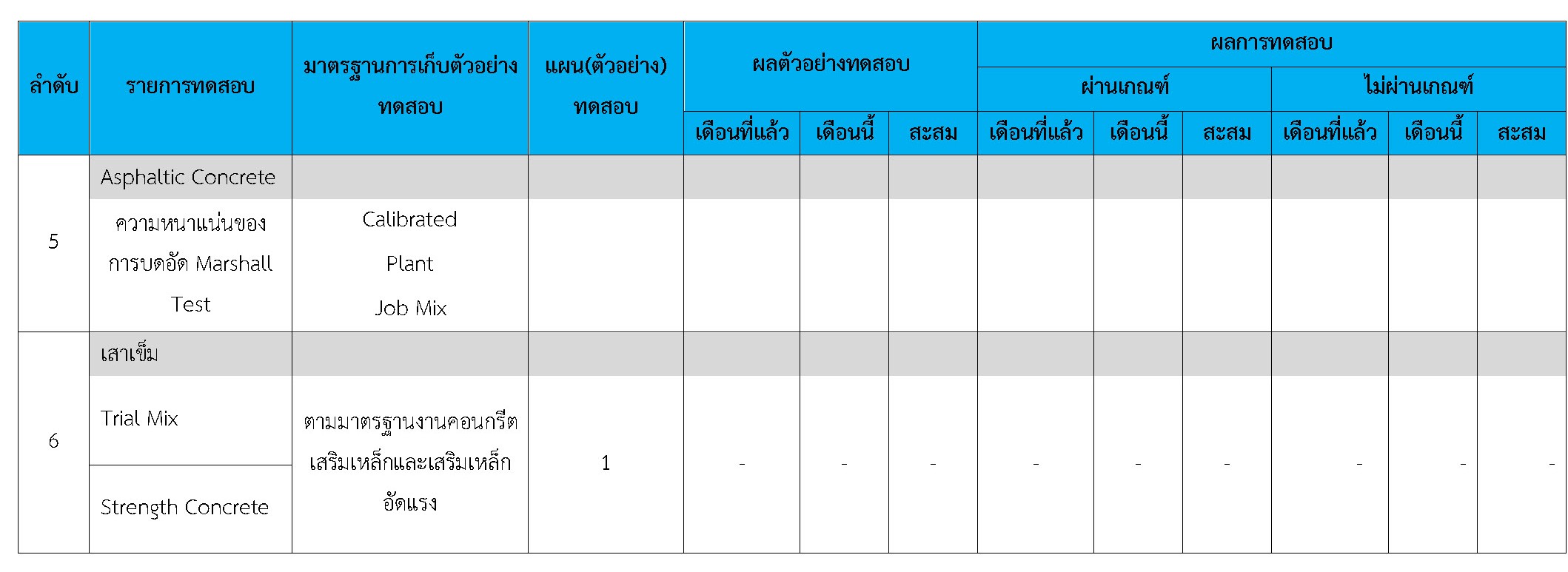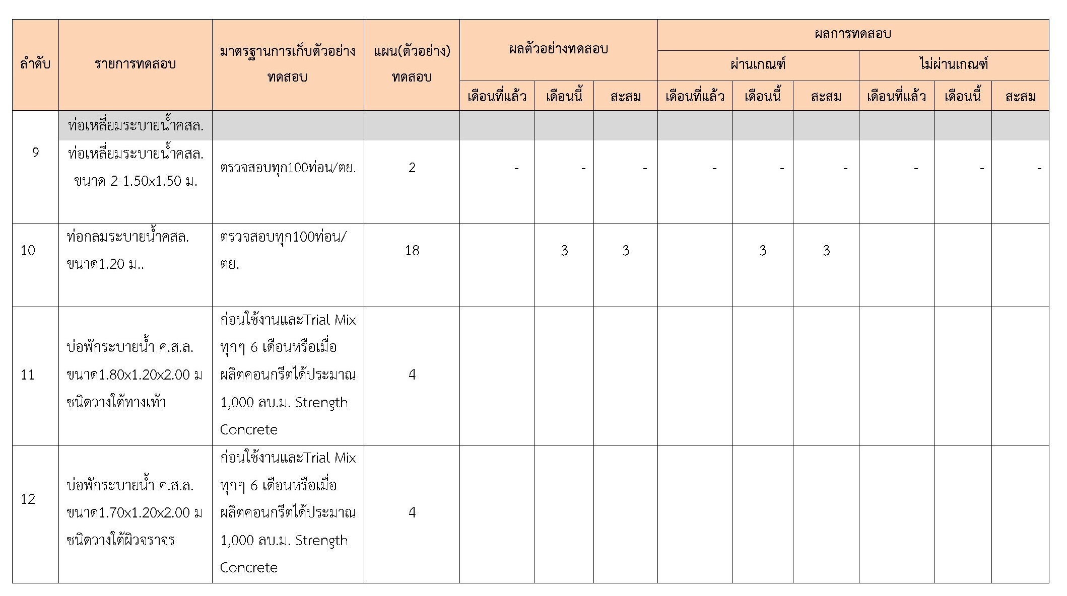 ในระหว่างวันที่ 1-28กุมภาพันธ์2561ผู้ว่าจ้างได้เสนอหนังสือขออนุมัติใช้วัสดุถึงที่ปรึกษา โดยที่ปรึกษาได้ตรวจสอบวัสดุดังกล่าวมีผลทดสอบดังตาราง