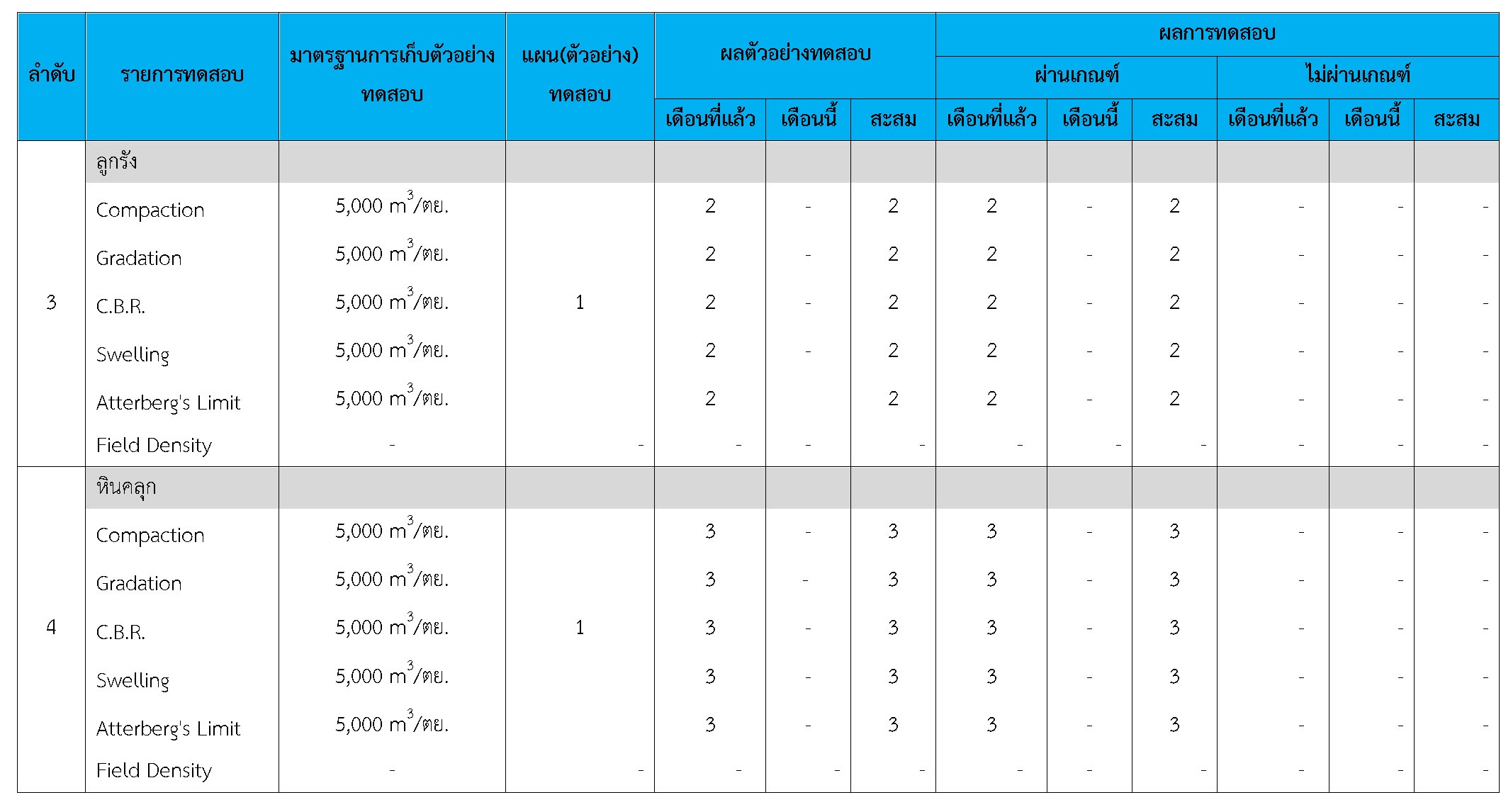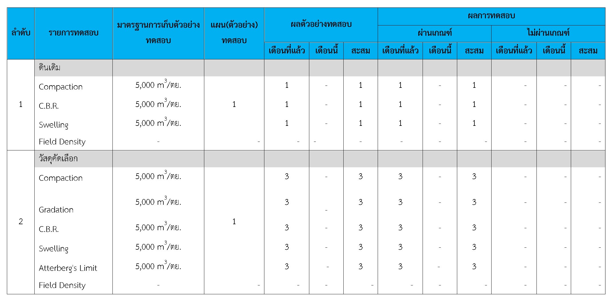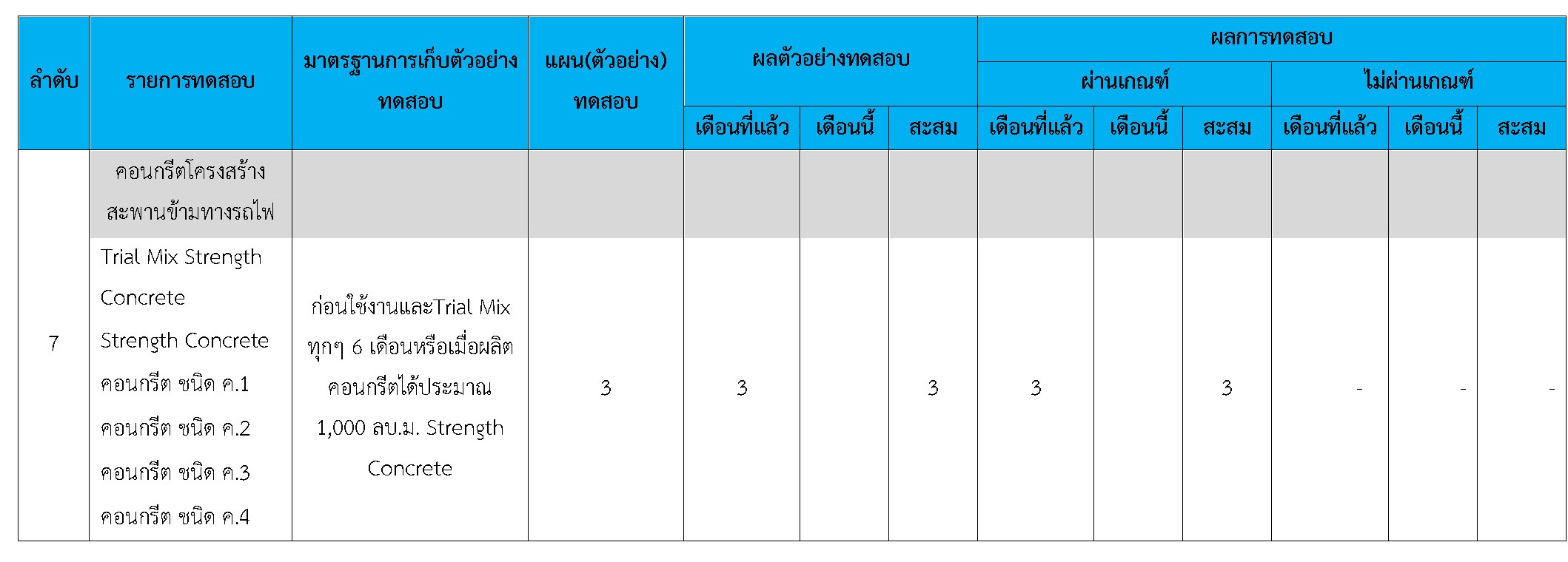 ในระหว่างวันที่ 1-28 กุมภาพันธ์ 2561ผู้ว่าจ้างได้เสนอหนังสือขออนุมัติใช้วัสดุถึงที่ปรึกษา โดยที่ปรึกษาได้ตรวจสอบวัสดุดังกล่าวมีผลทดสอบดังตาราง