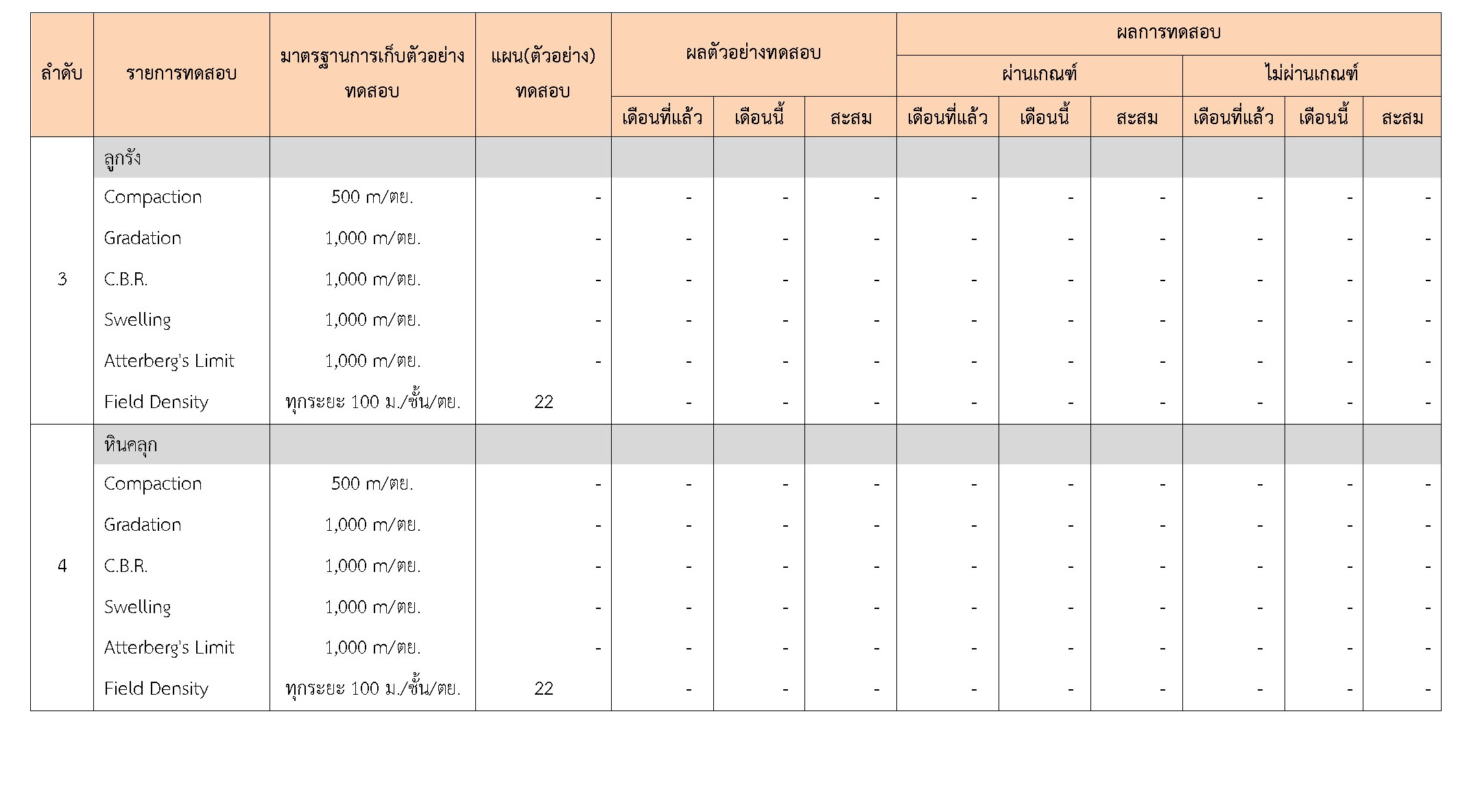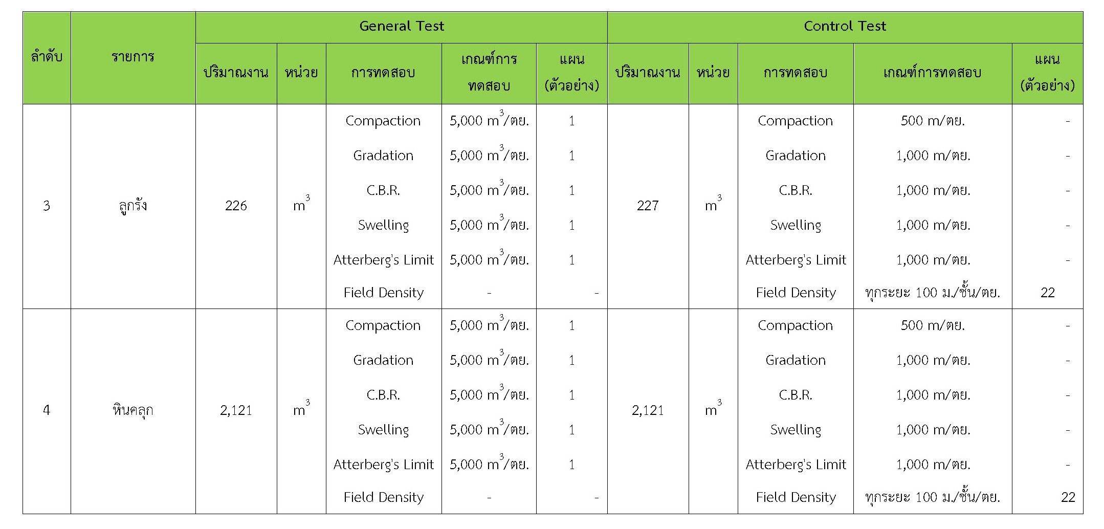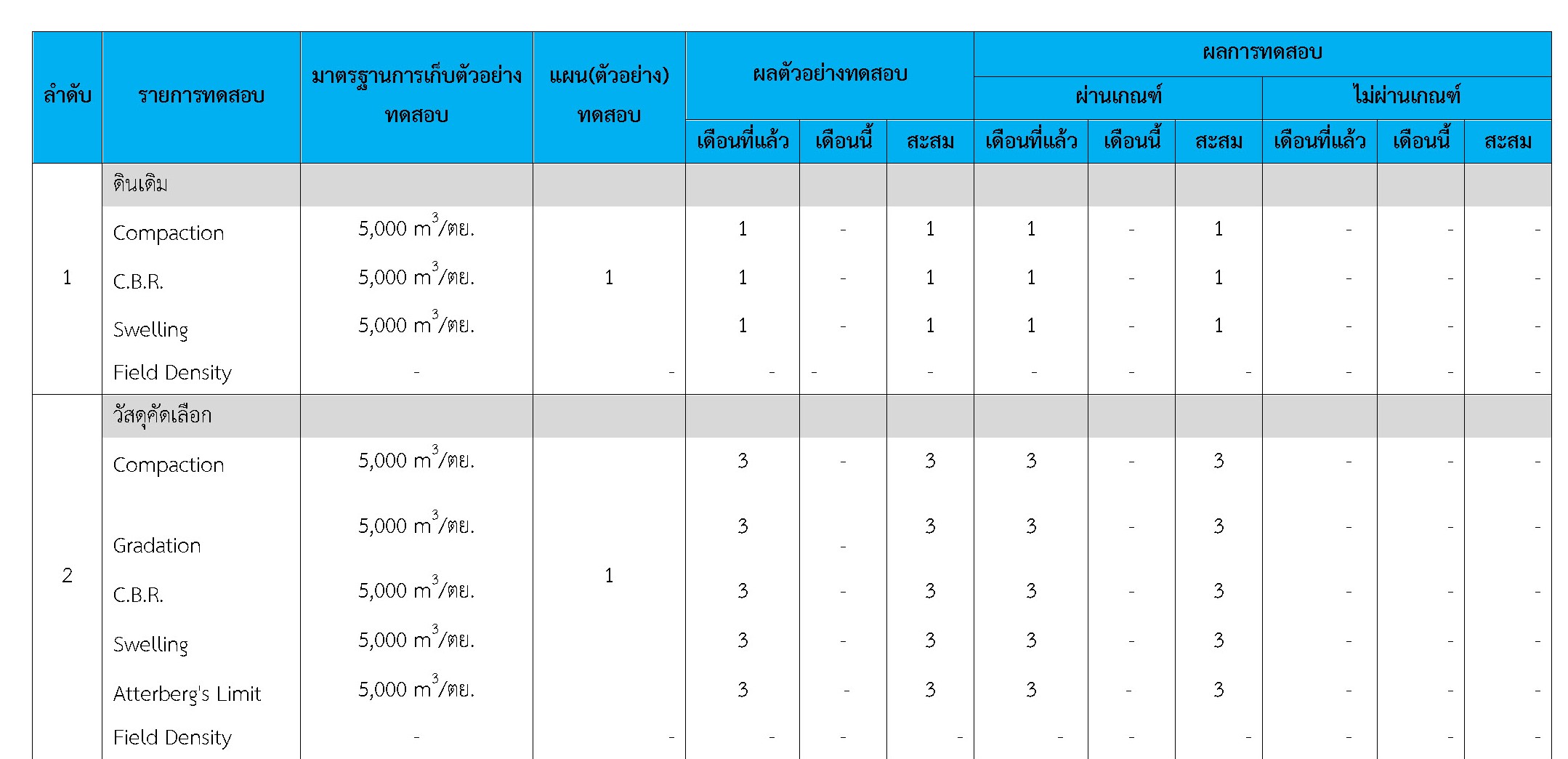 ในระหว่างวันที่ 1-31มีนาคม2561ผู้ว่าจ้างได้เสนอหนังสือขออนุมัติใช้วัสดุถึงที่ปรึกษา โดยที่ปรึกษาได้ตรวจสอบวัสดุดังกล่าวมีผลทดสอบดังตาราง