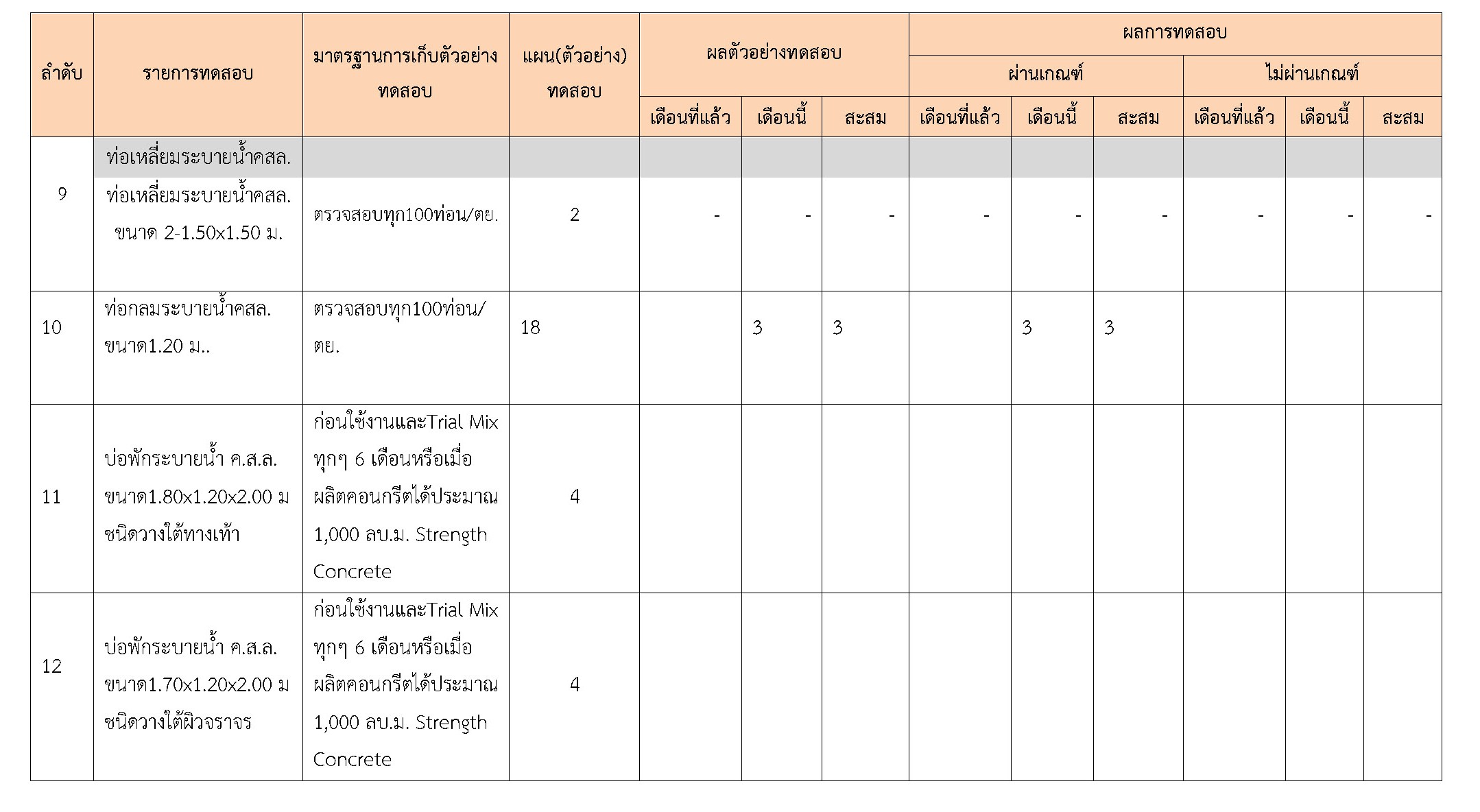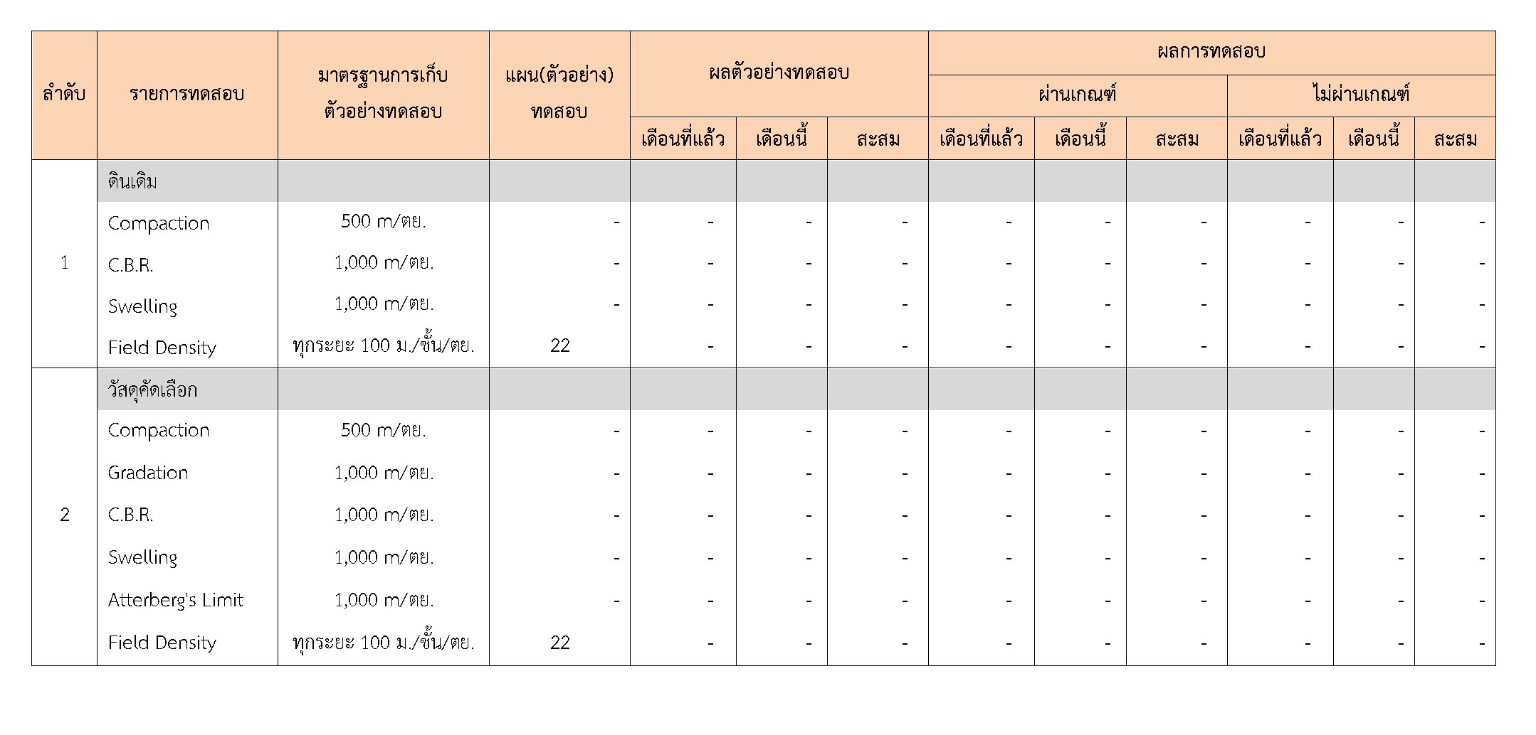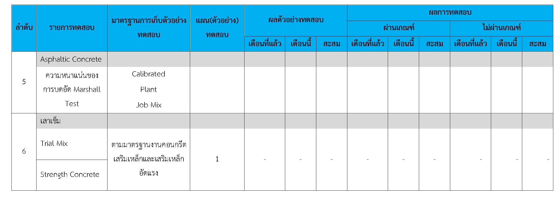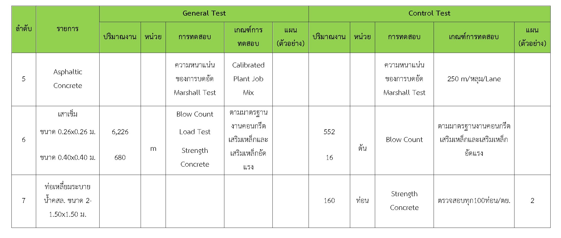 ในระหว่างวันที่ 1-31มีนาคม2561ผู้ว่าจ้างได้เสนอหนังสือขออนุมัติใช้วัสดุถึงที่ปรึกษา โดยที่ปรึกษาได้ตรวจสอบวัสดุดังกล่าวมีผลทดสอบดังตาราง