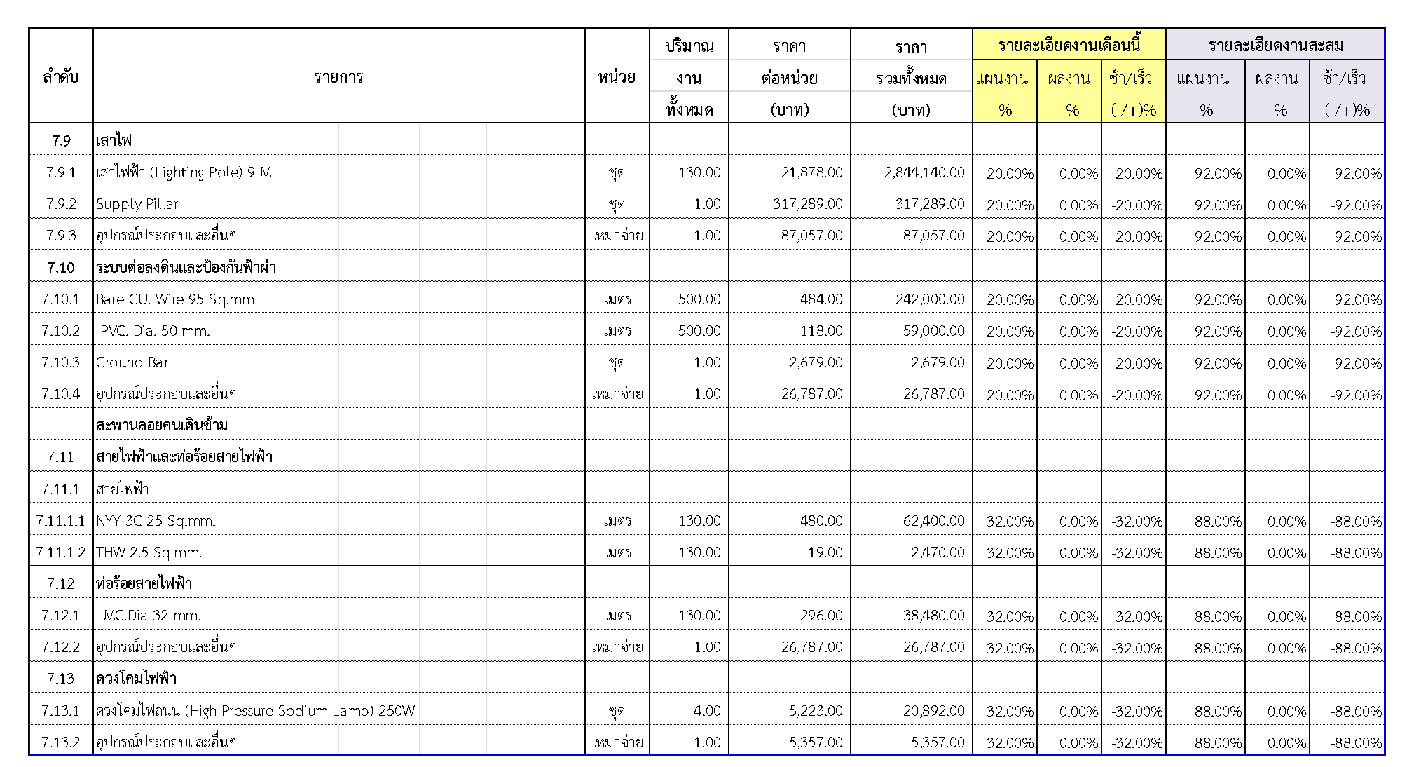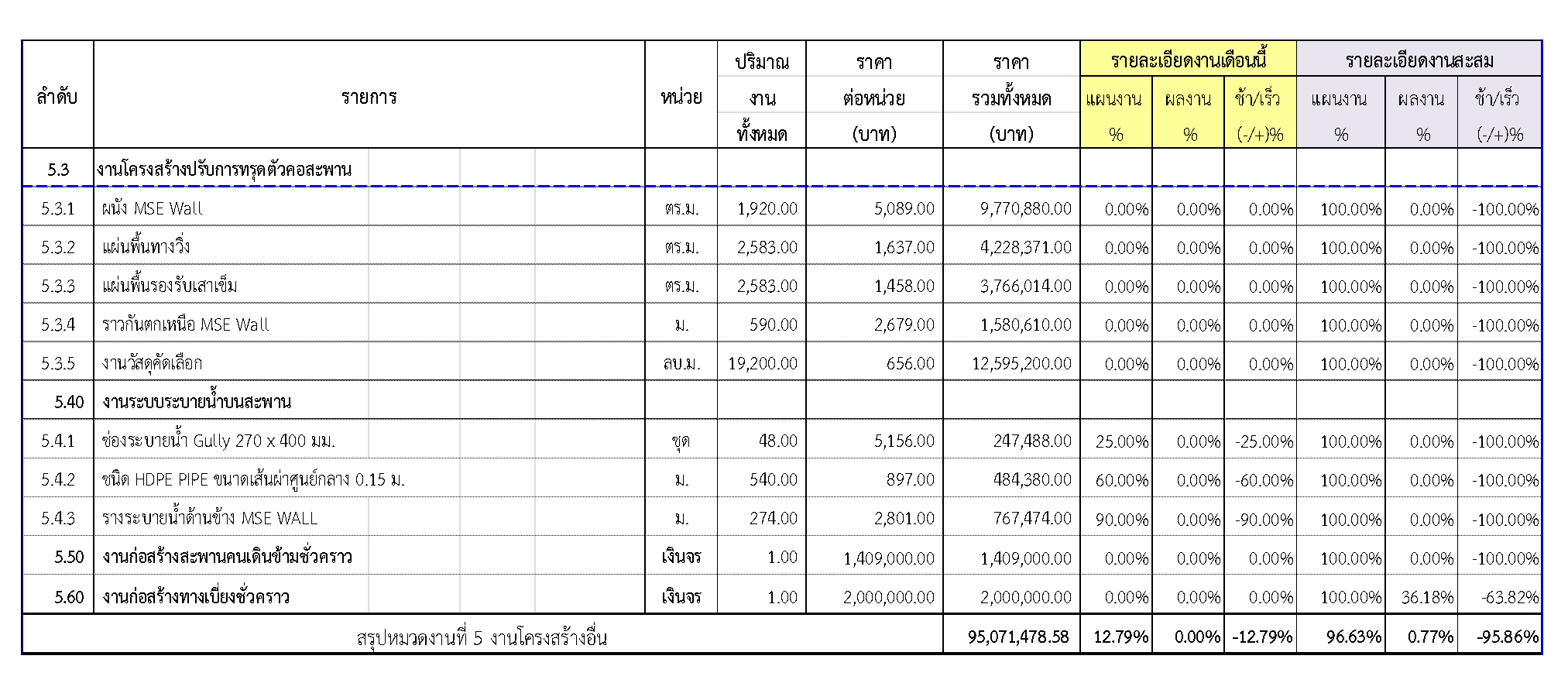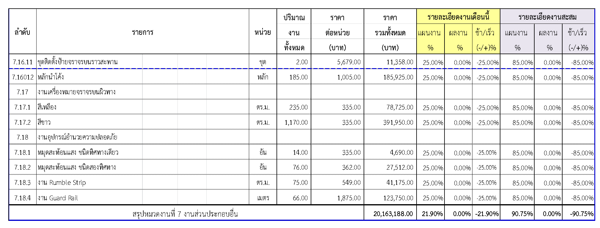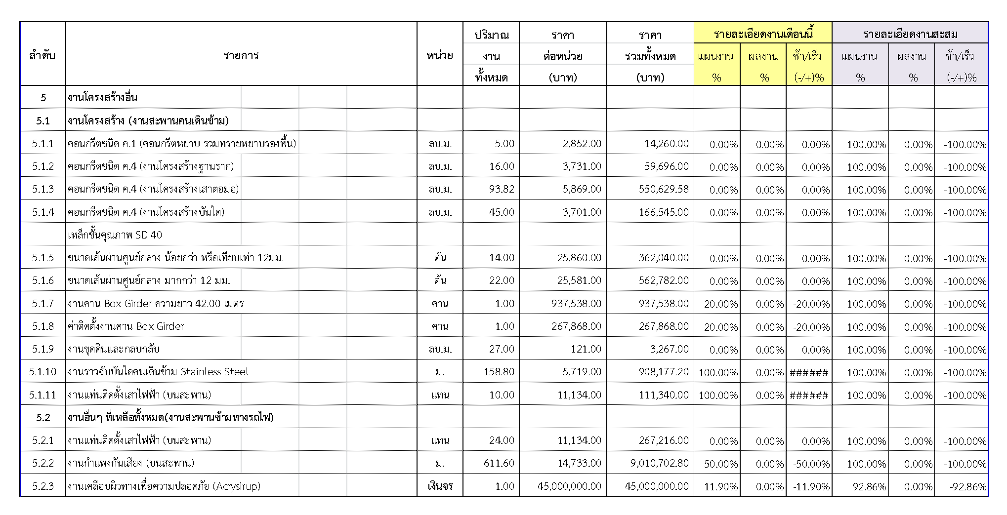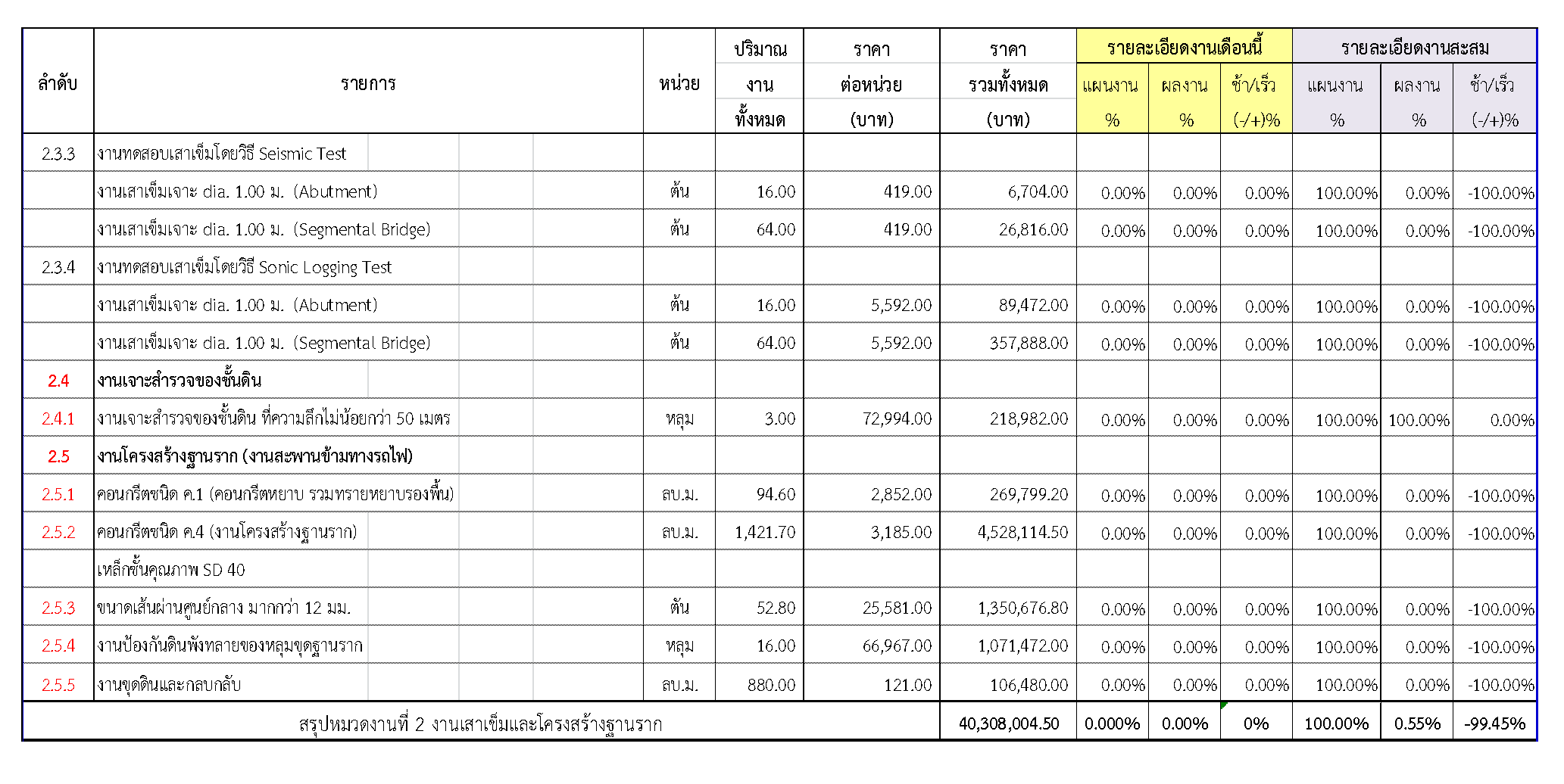 2.2 ความก้าวหน้าของงานก่อสร้างแยกตามรายการ
