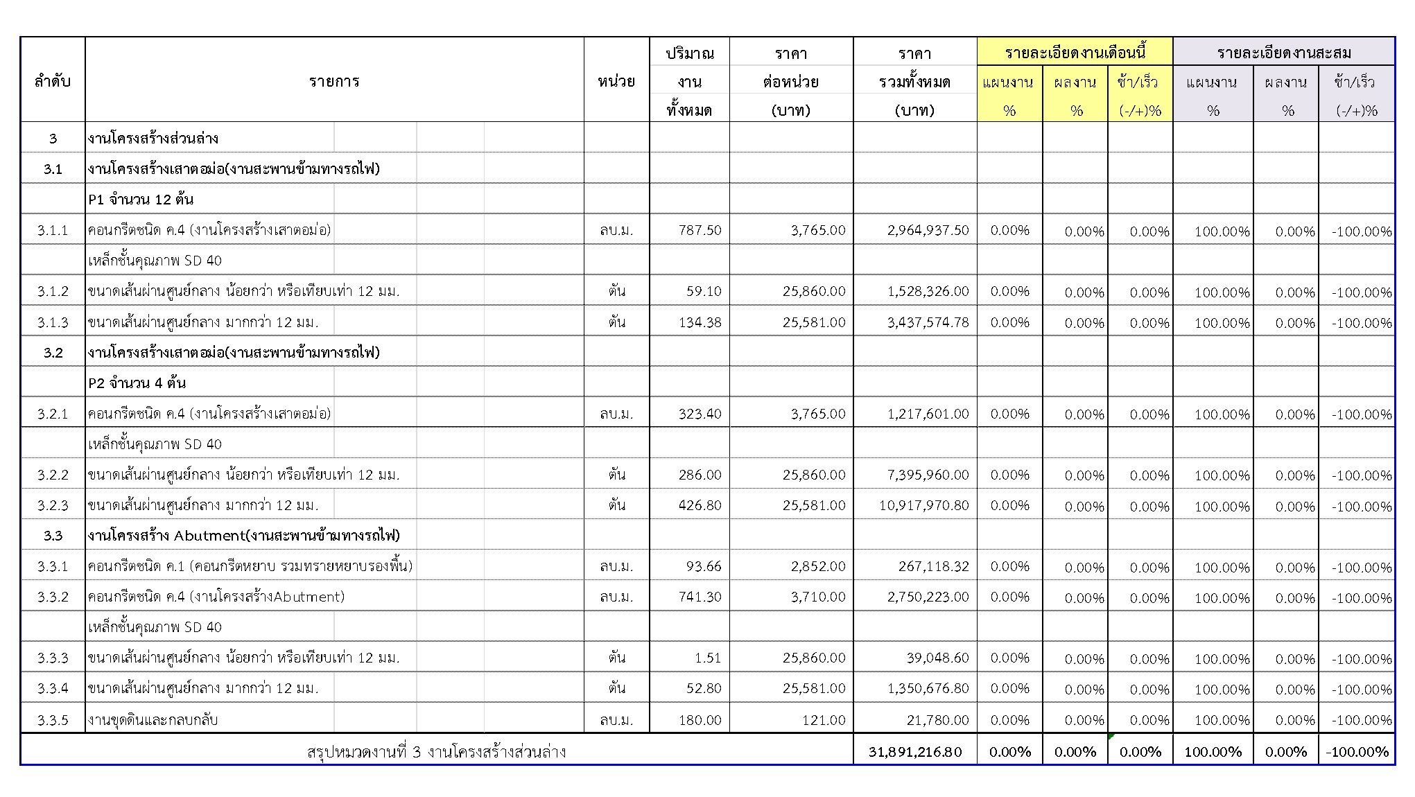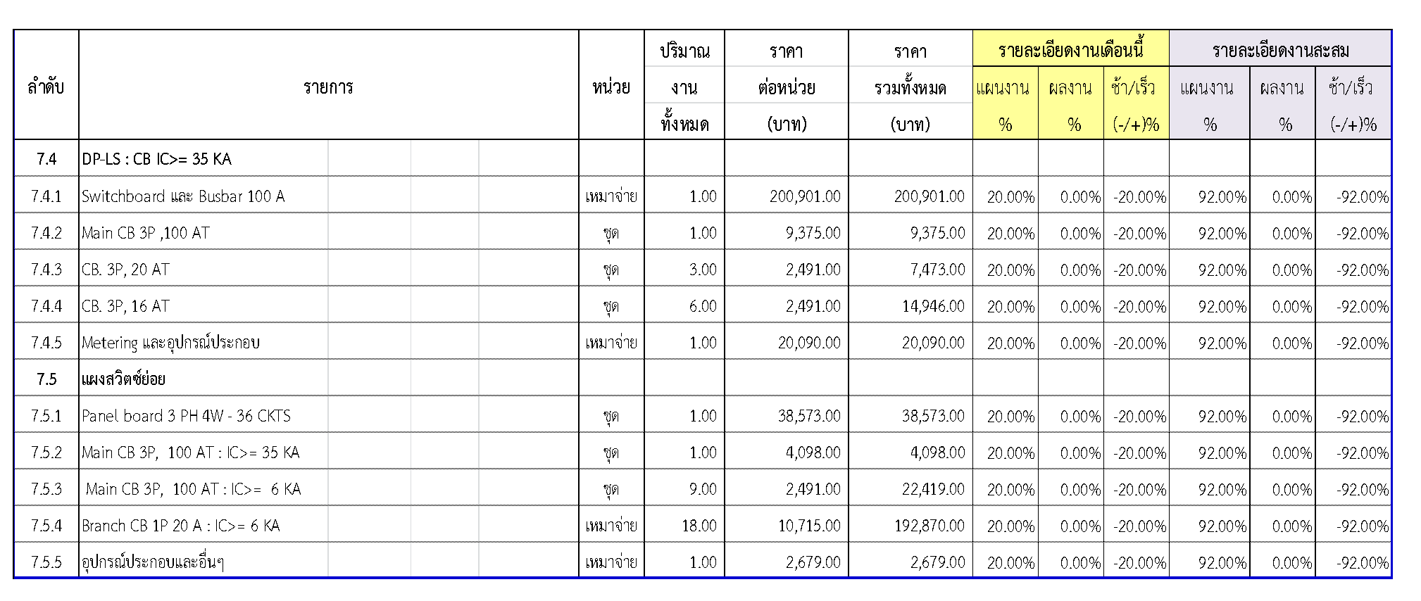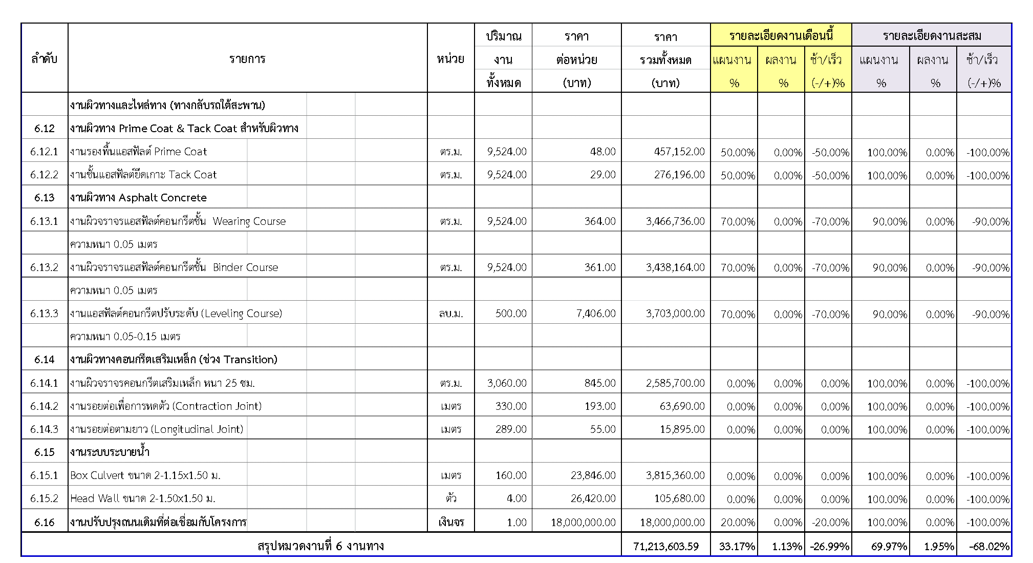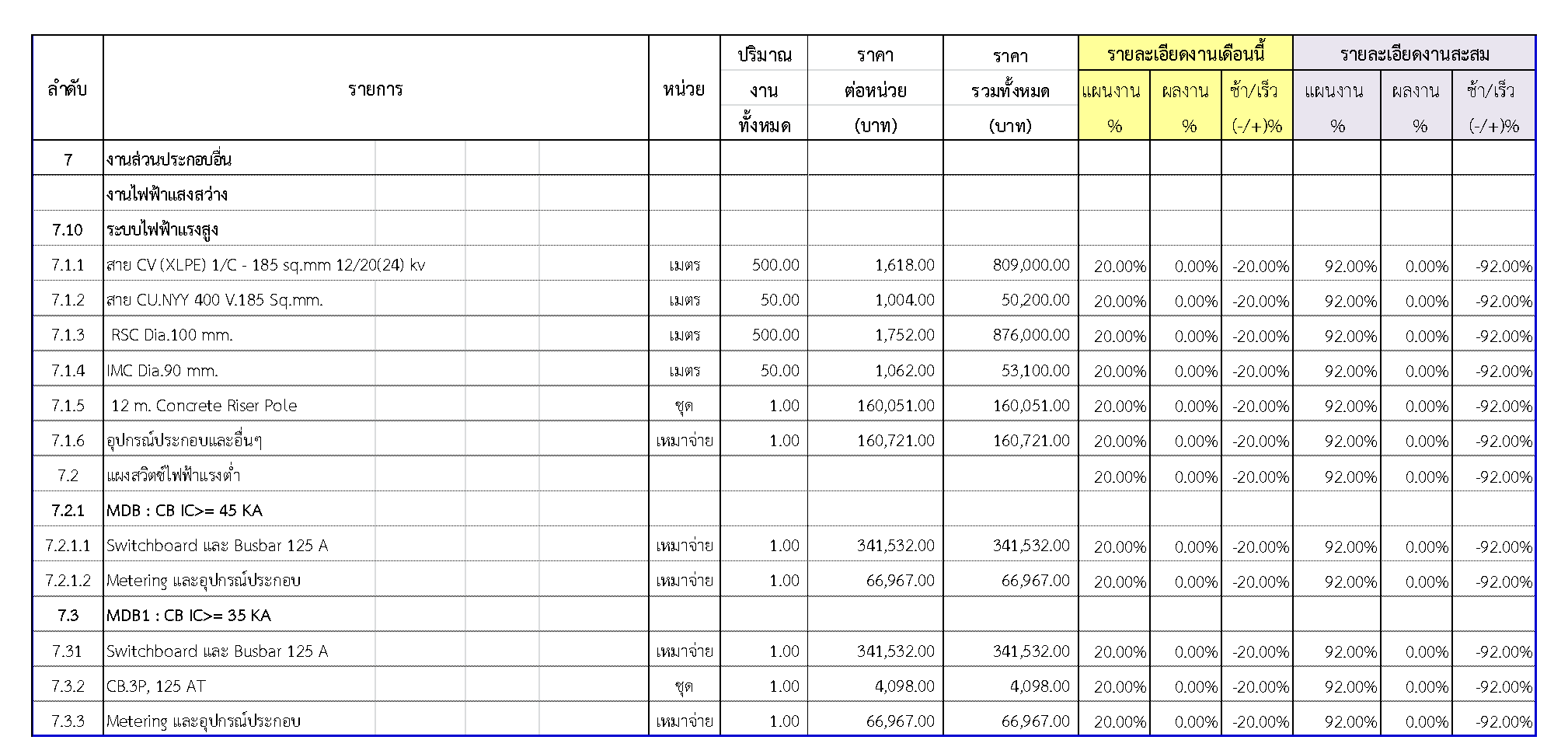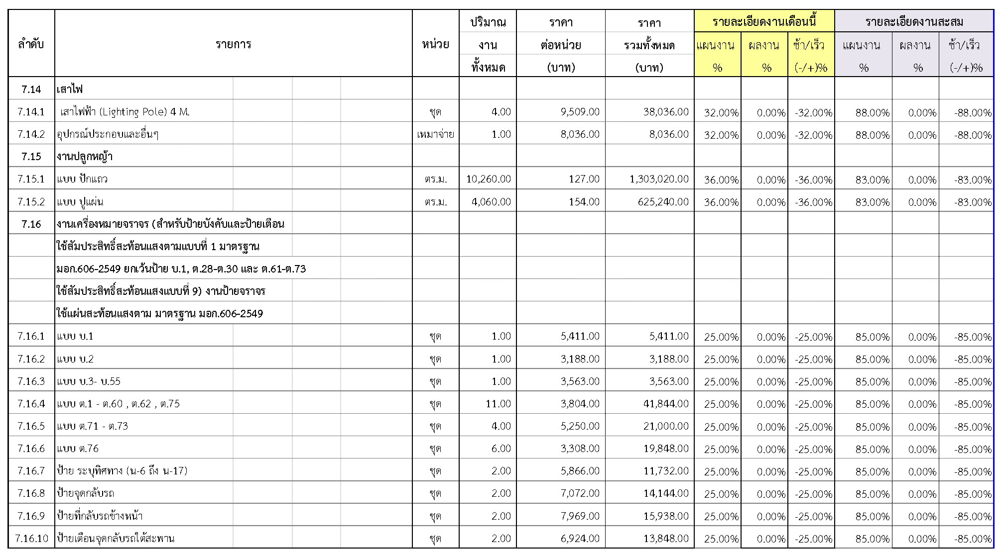 2.2 ความก้าวหน้าของงานก่อสร้างแยกตามรายการ