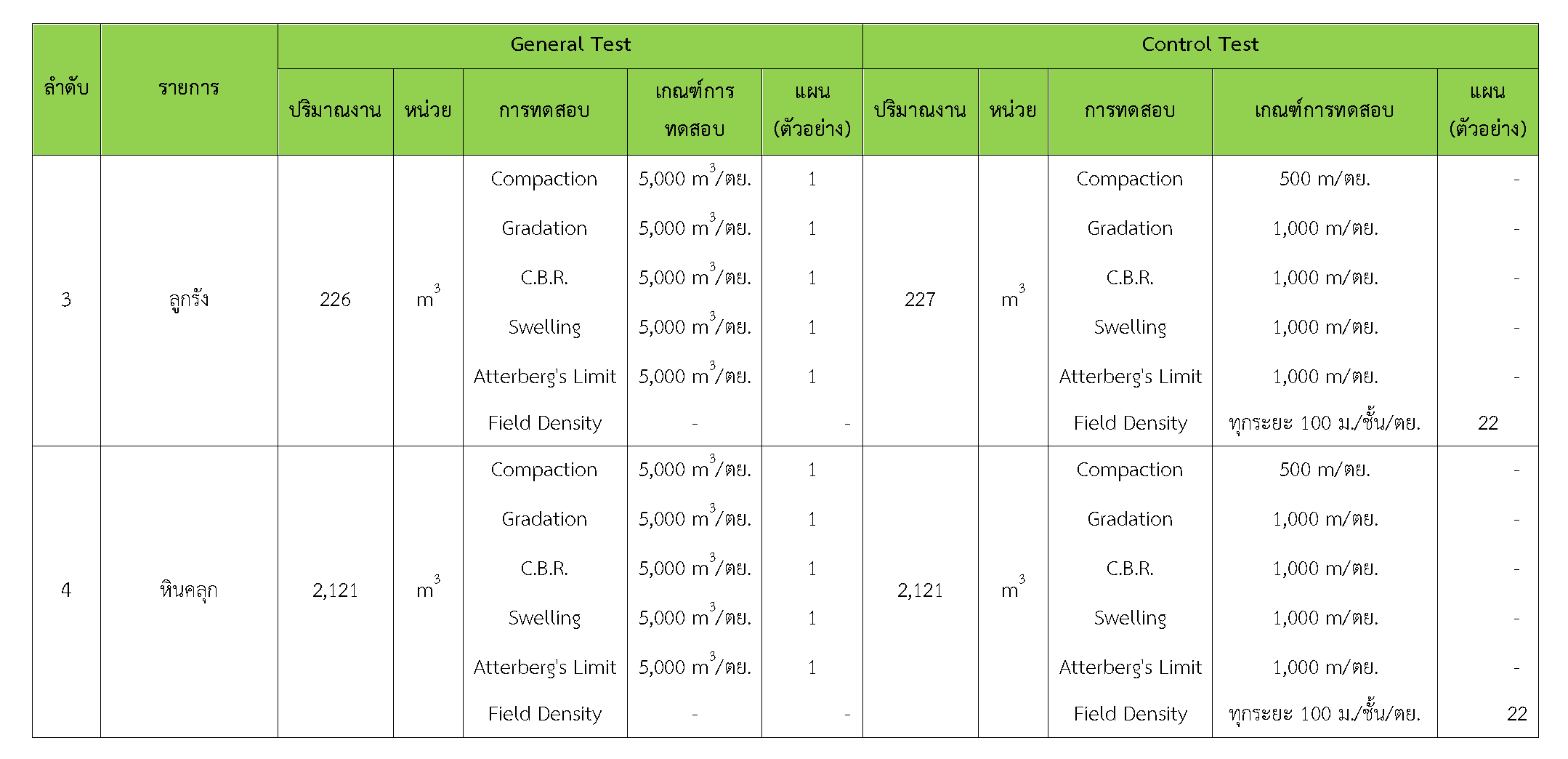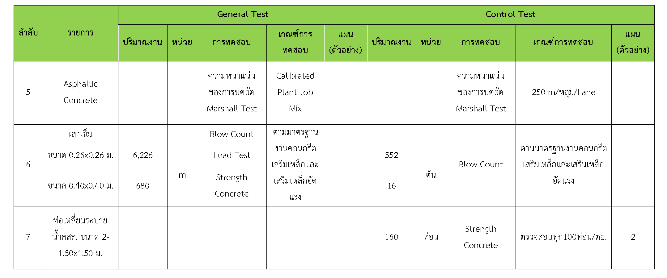 ในระหว่างวันที่ 1-30 เมษายน2561ผู้ว่าจ้างได้เสนอหนังสือขออนุมัติใช้วัสดุถึงที่ปรึกษา โดยที่ปรึกษาได้ตรวจสอบวัสดุดังกล่าวมีผลทดสอบดังตาราง
