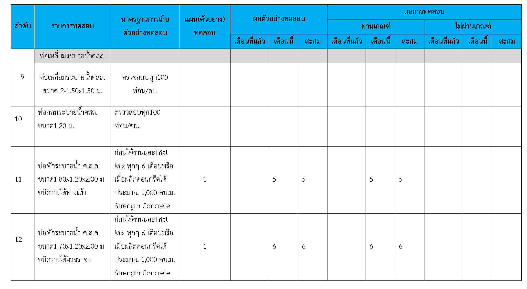 ในระหว่างวันที่ 1-30เมษายน2561ผู้ว่าจ้างได้เสนอหนังสือขออนุมัติใช้วัสดุถึงที่ปรึกษา โดยที่ปรึกษาได้ตรวจสอบวัสดุดังกล่าวมีผลทดสอบดังตาราง