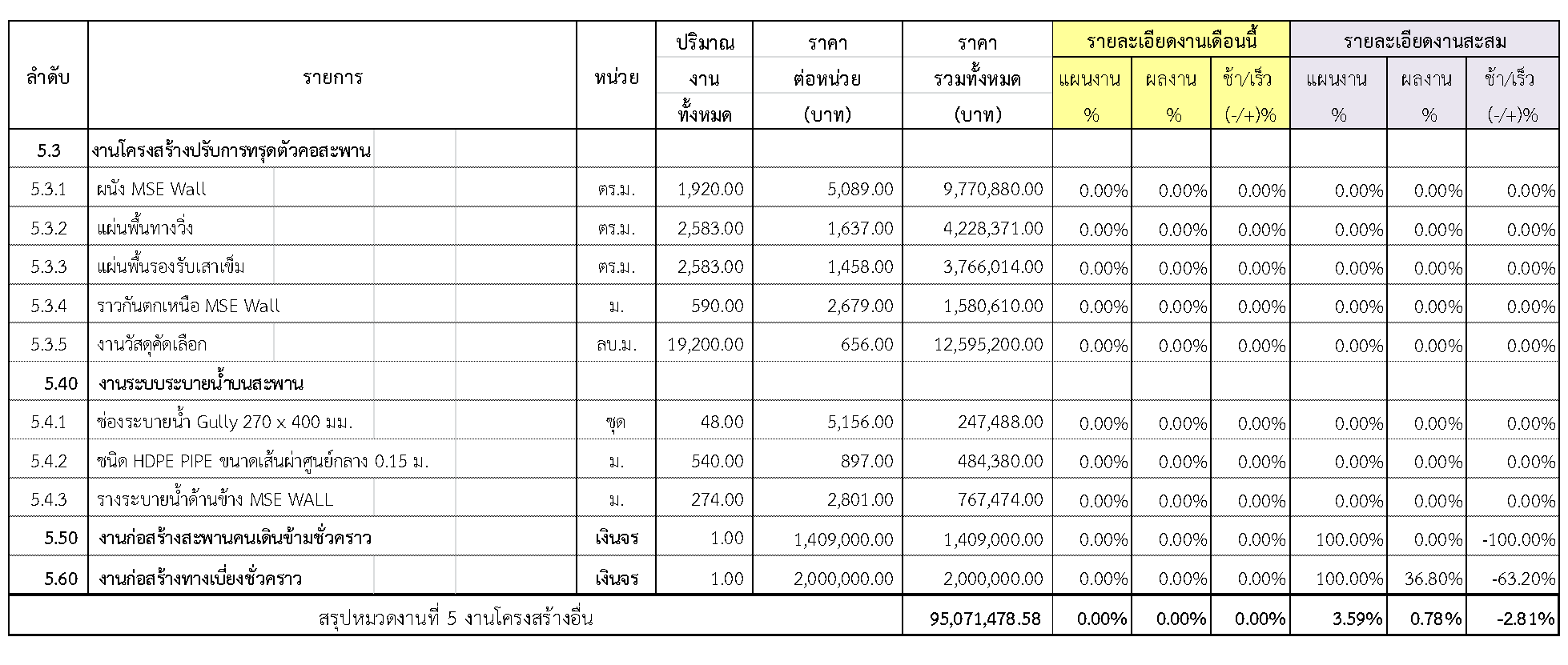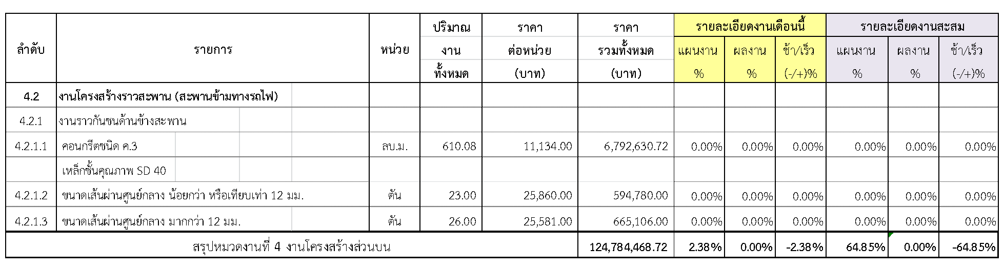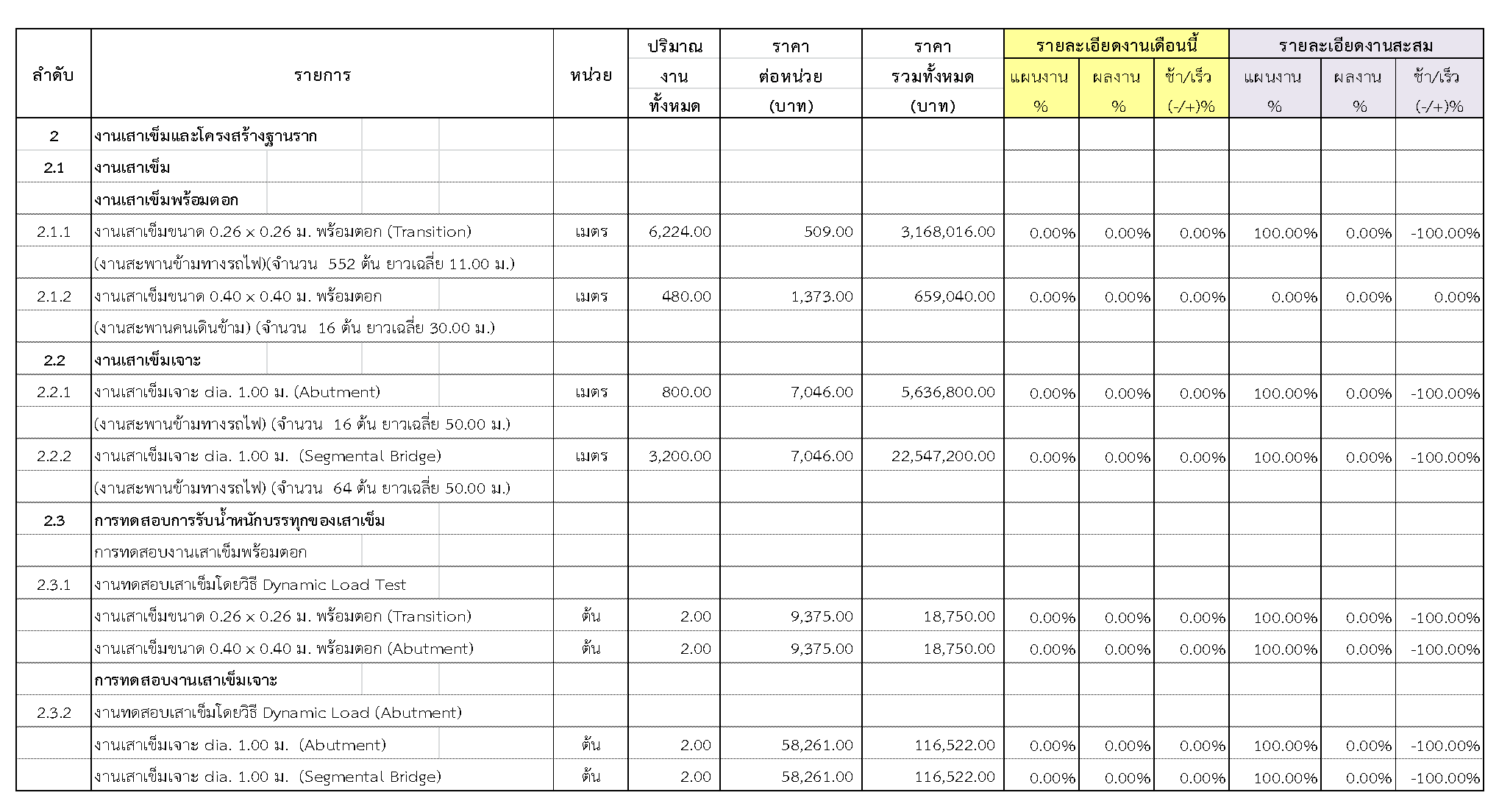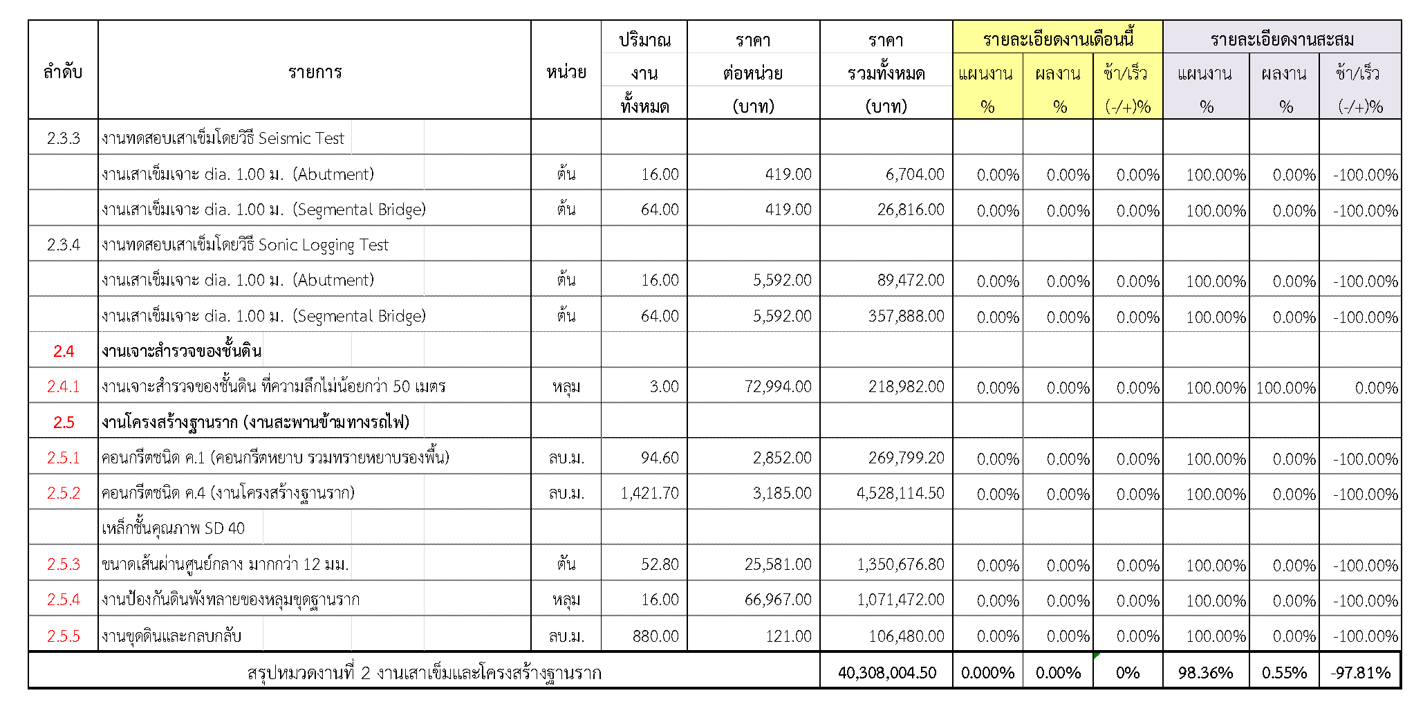 2.2 ความก้าวหน้าของงานก่อสร้างแยกตามรายการ