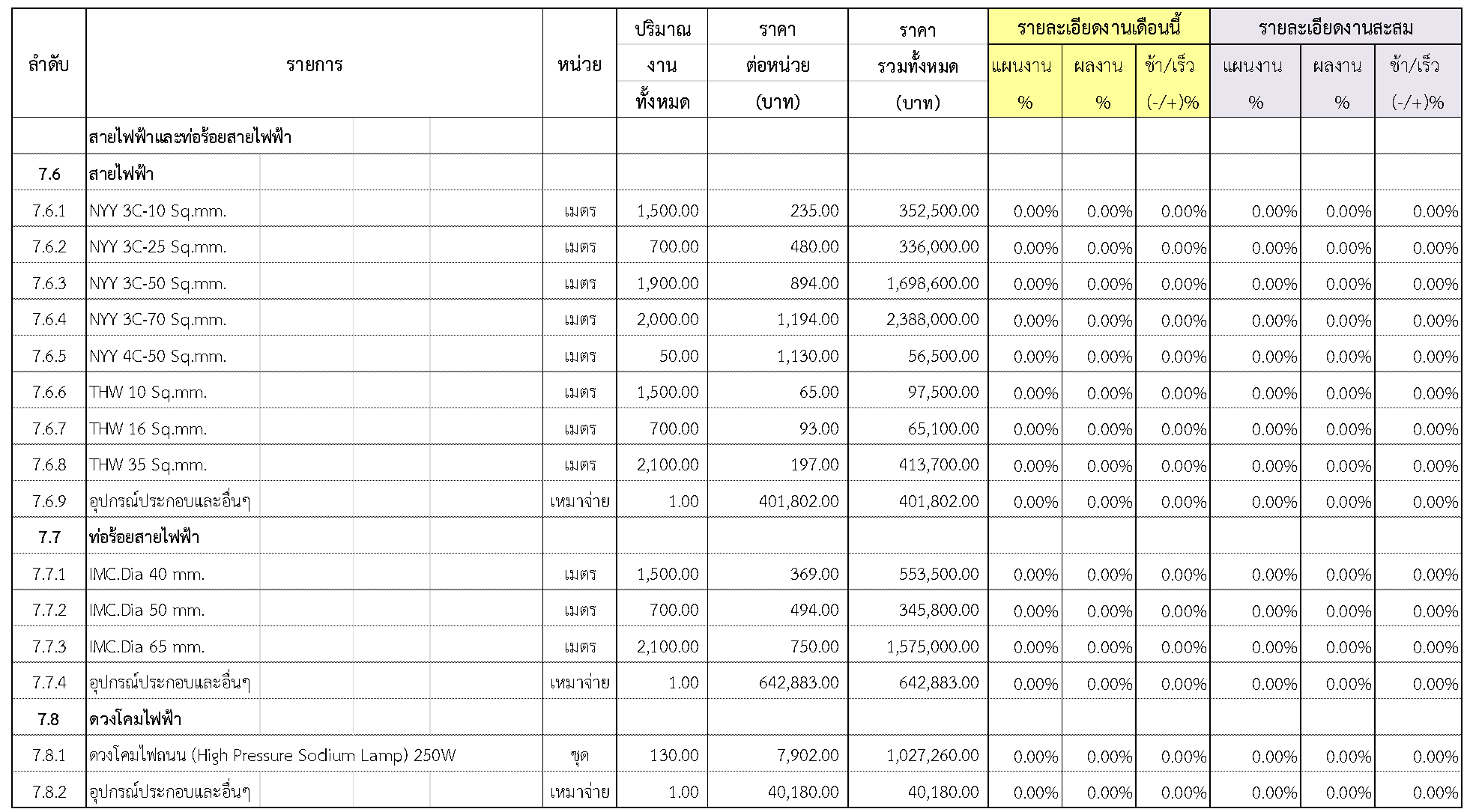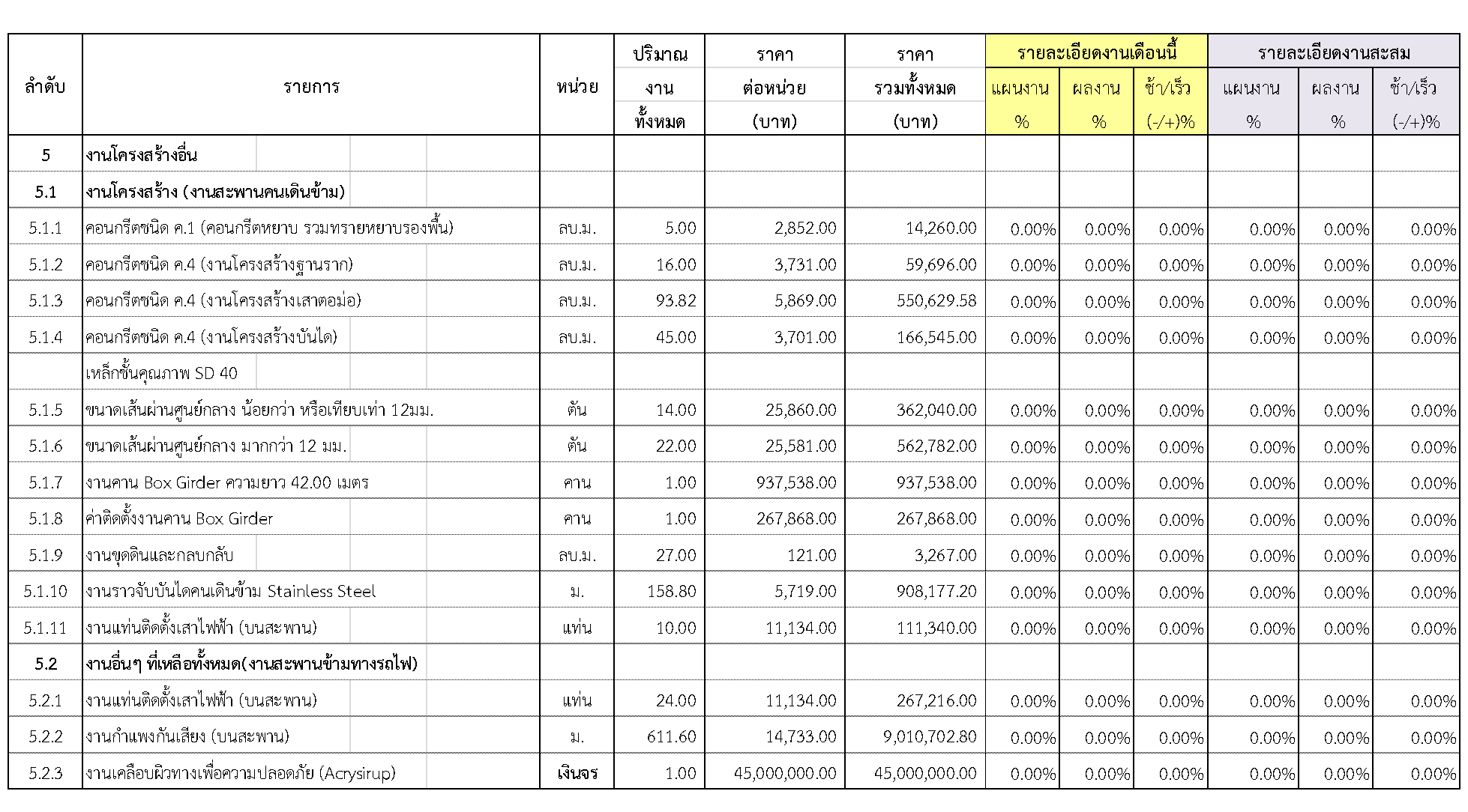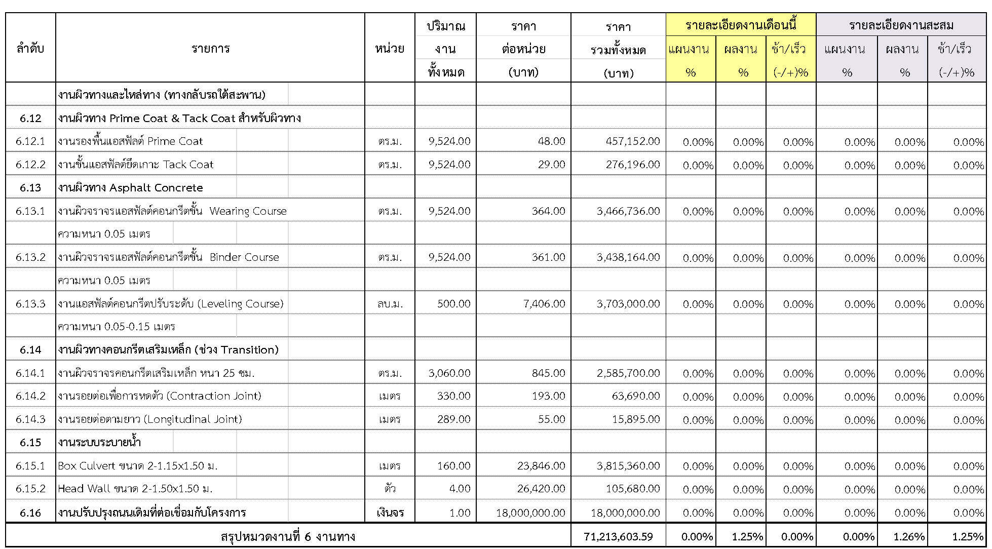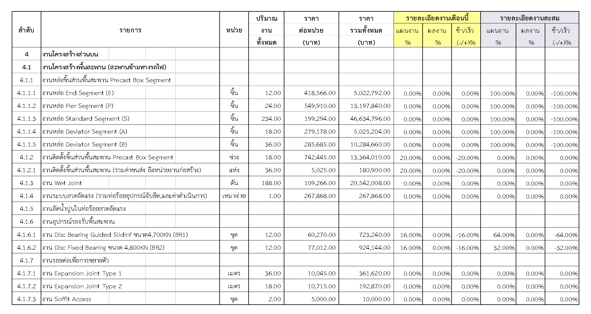2.2 ความก้าวหน้าของงานก่อสร้างแยกตามรายการ