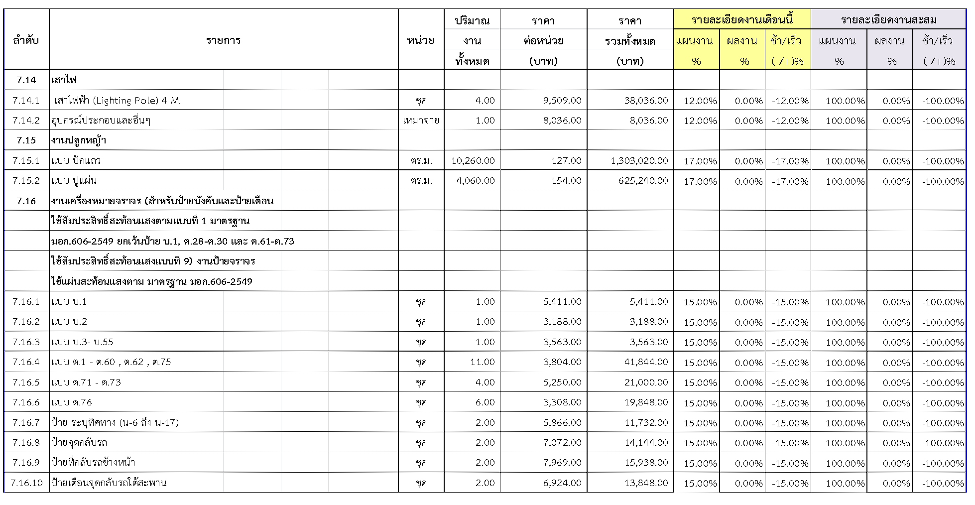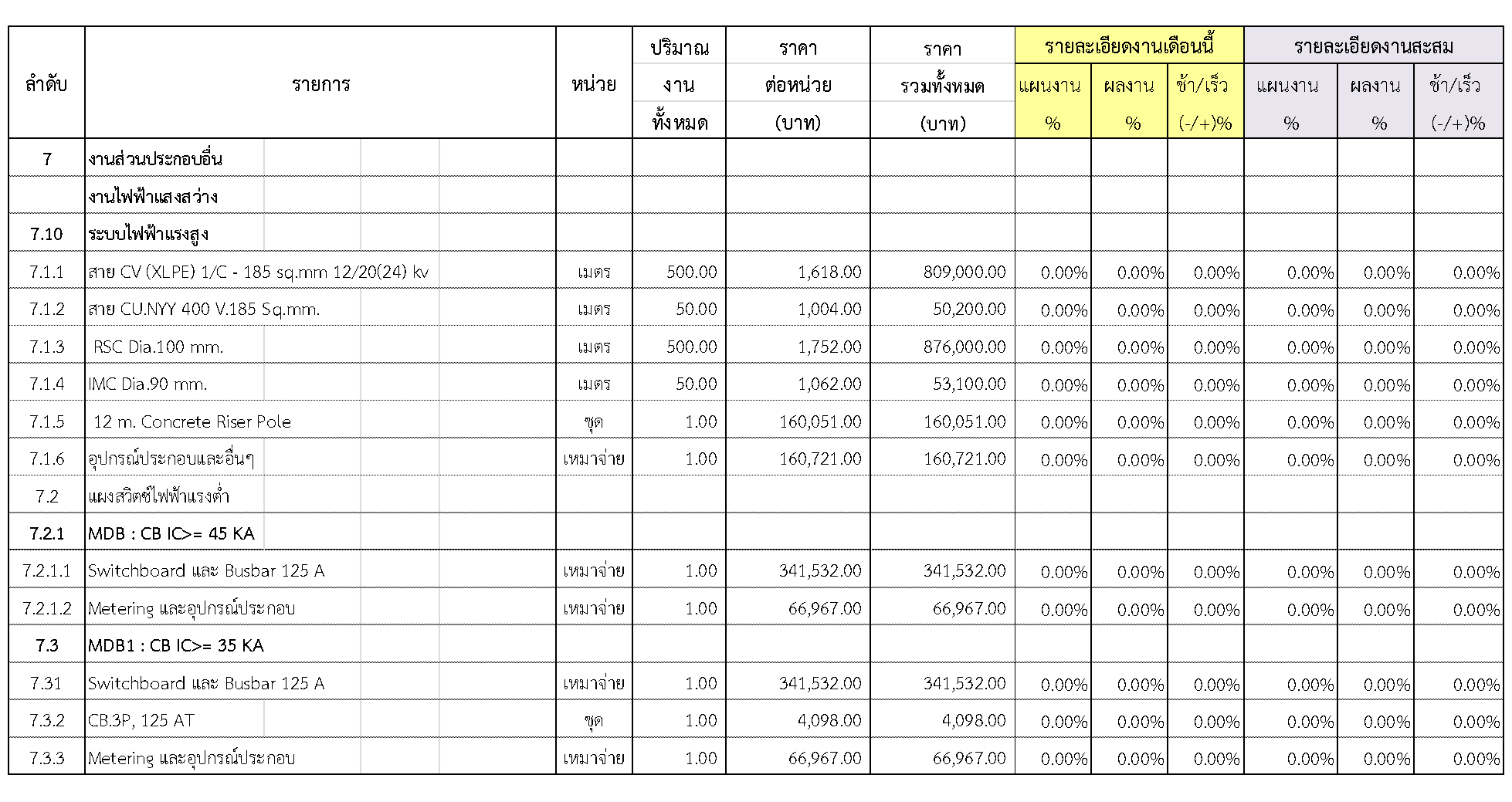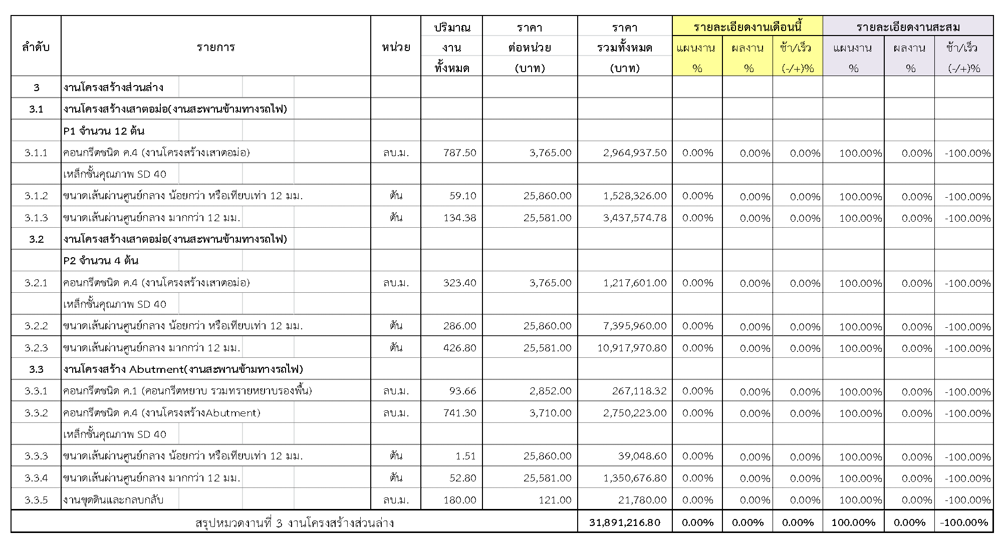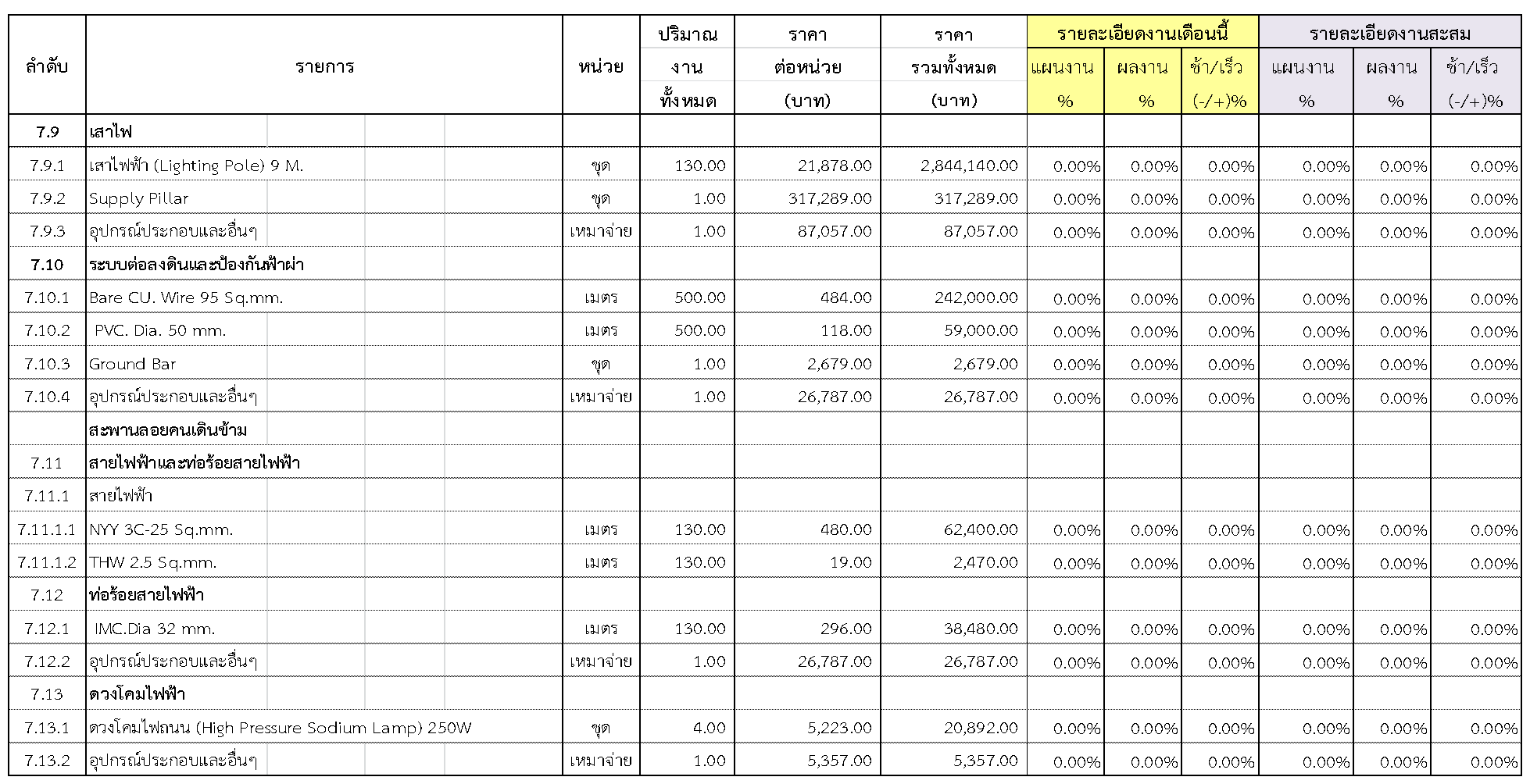 2.2 ความก้าวหน้าของงานก่อสร้างแยกตามรายการ
