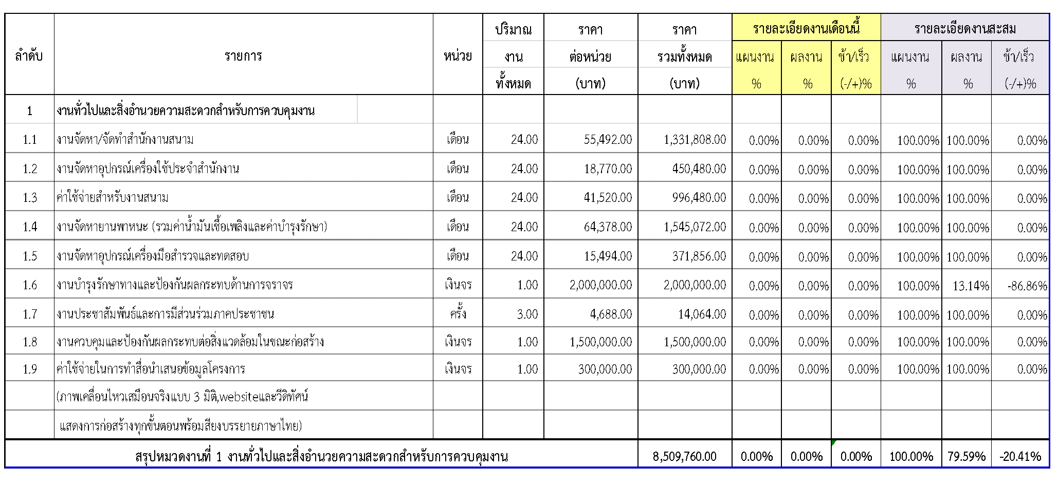 ตารางที่ 2.1-1 สรุปผลงานความก้าวหน้าของงานก่อสร้าง