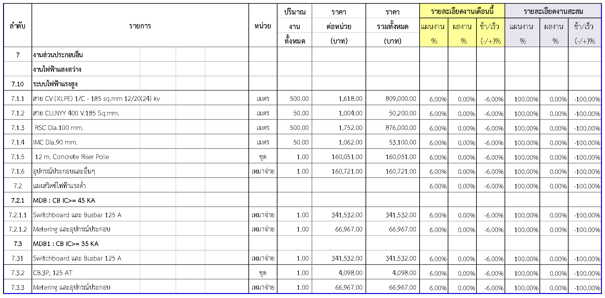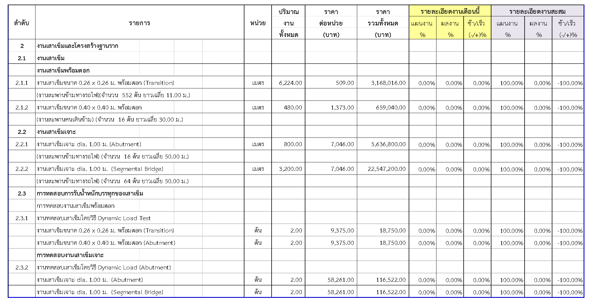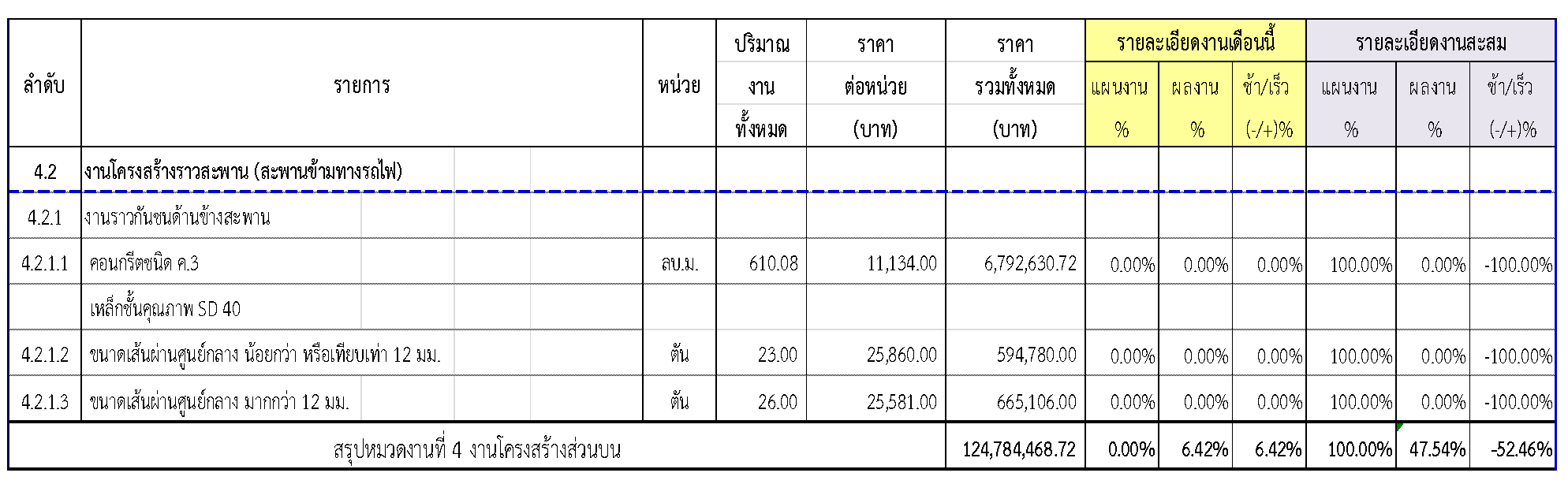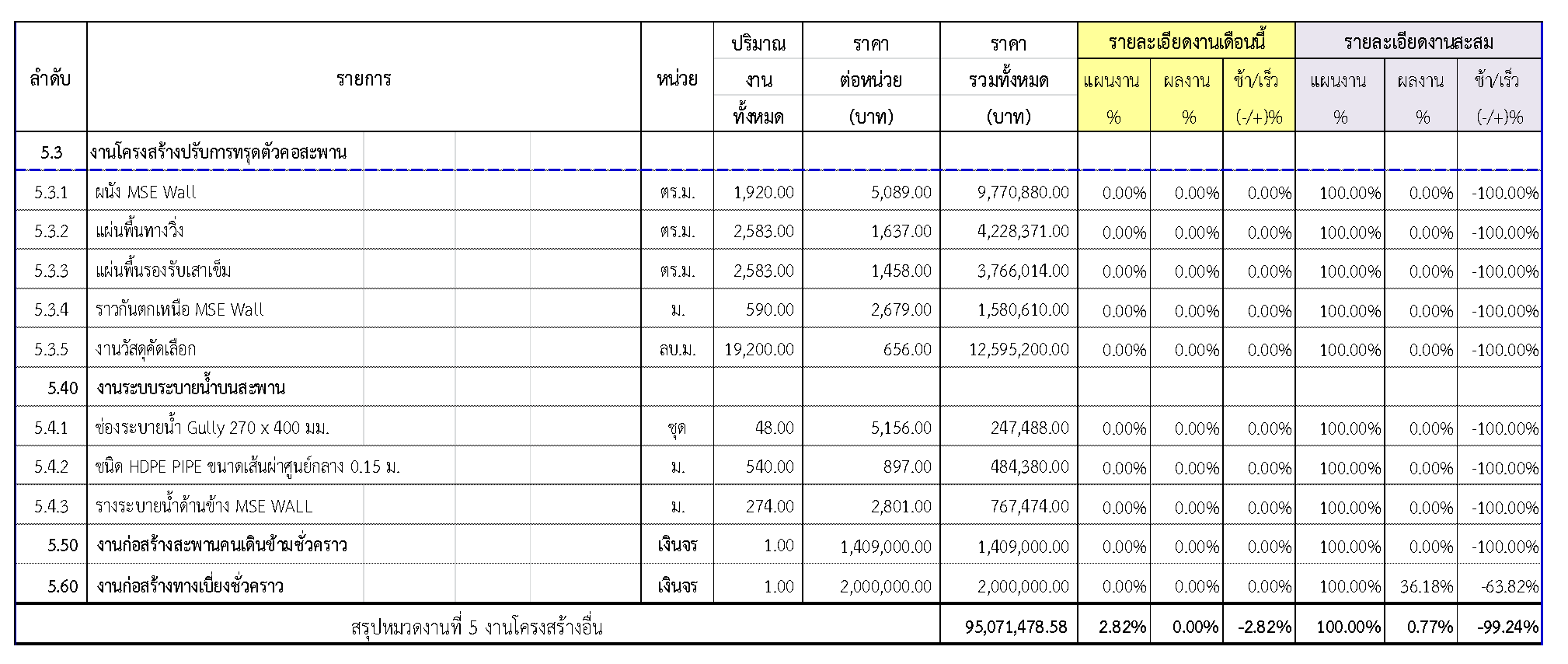 2.2 ความก้าวหน้าของงานก่อสร้างแยกตามรายการ